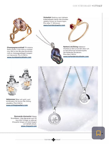 Kollektionen består av tre unika smycken: en cocktailring med diamanter och en varm, champagnerosa morganit i centrum, ett matchande örhänge samt en soiréering – alla med designinslag som för tankarna till havets vågor och Valeries signatursymbol: snäckan.