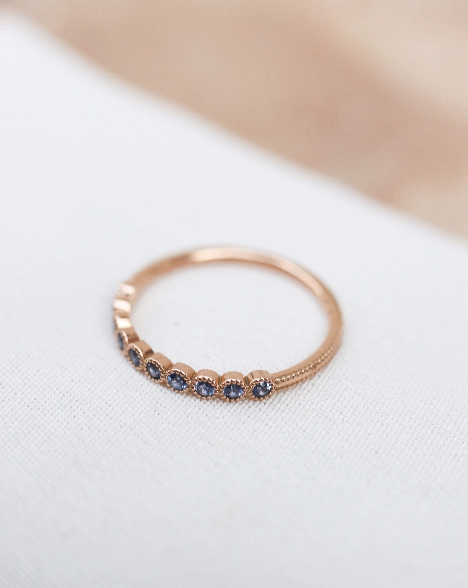 The classic eternity band (or infinity ring), is characterized by the fact that it is set with identical precious stones all the way around. As you will see below, I also like to mix the cuts and sizes of the gemstones in the same ring.