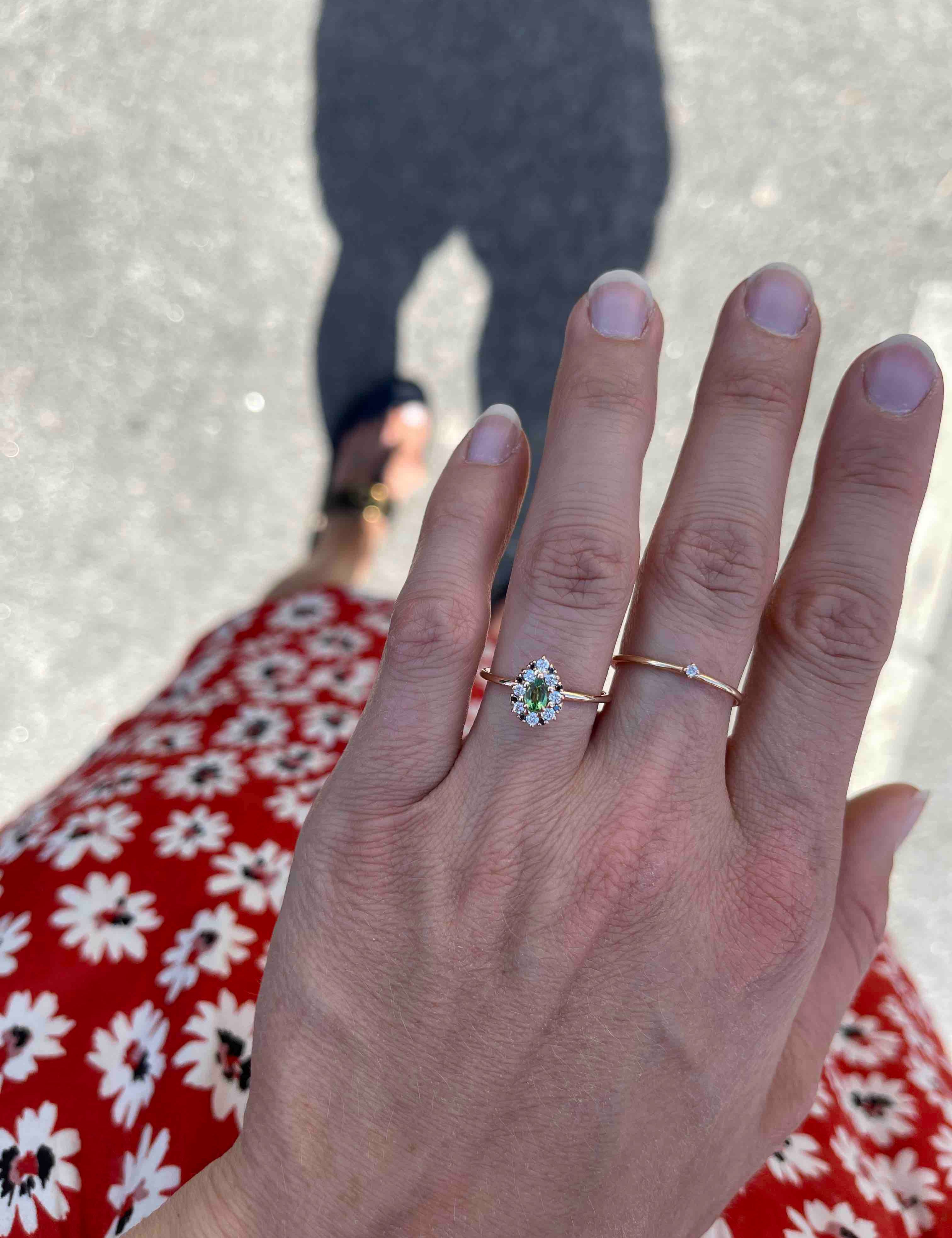 One-Of-A-Kind Mini Brilliant Diamond Cluster Ring with A Radiant-Cut Dark Green Tourmaline
