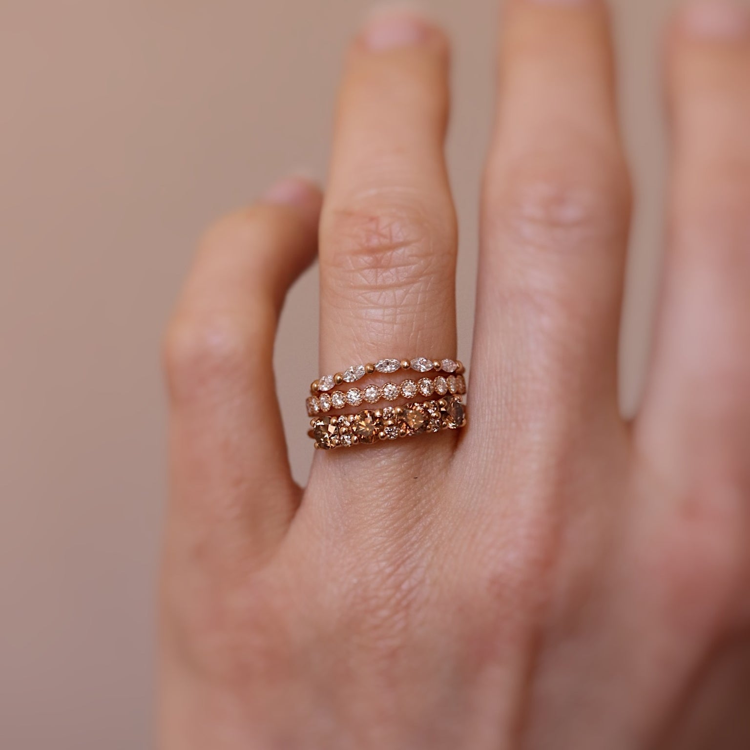 A classic goldie, a no-fuss eternity band, an edgy band with mixed diamond cuts and the tiniest brilliant diamond. What's not to love?