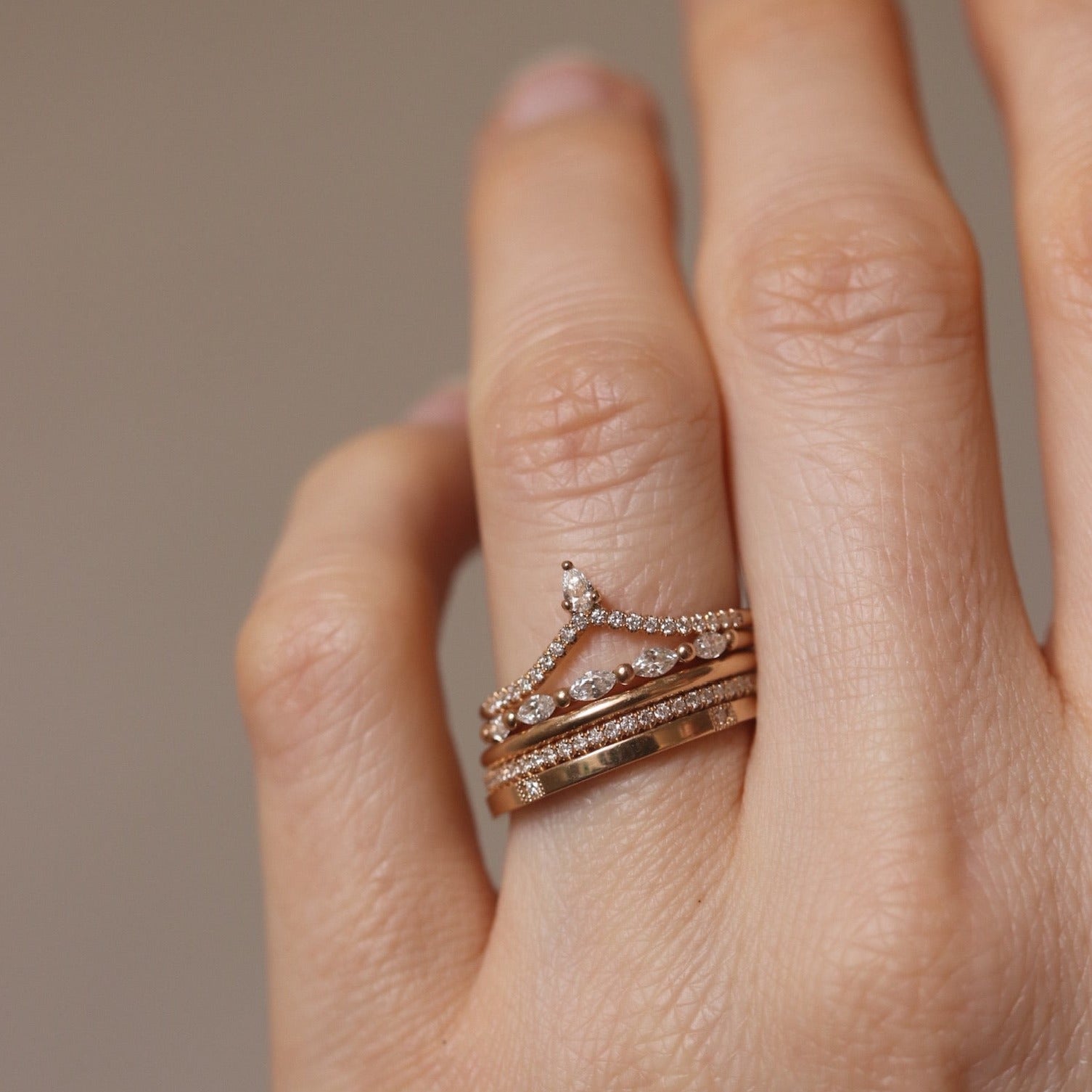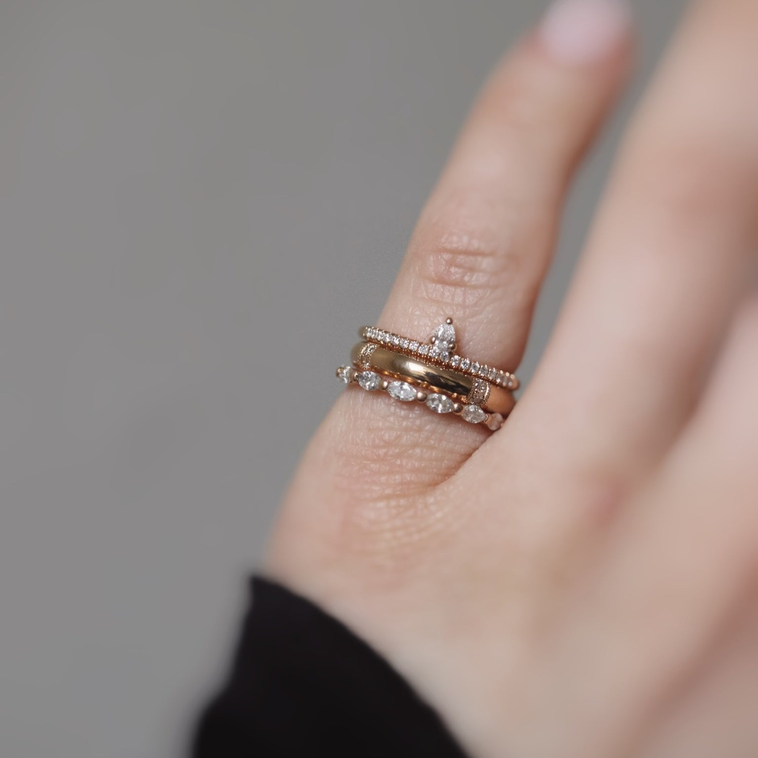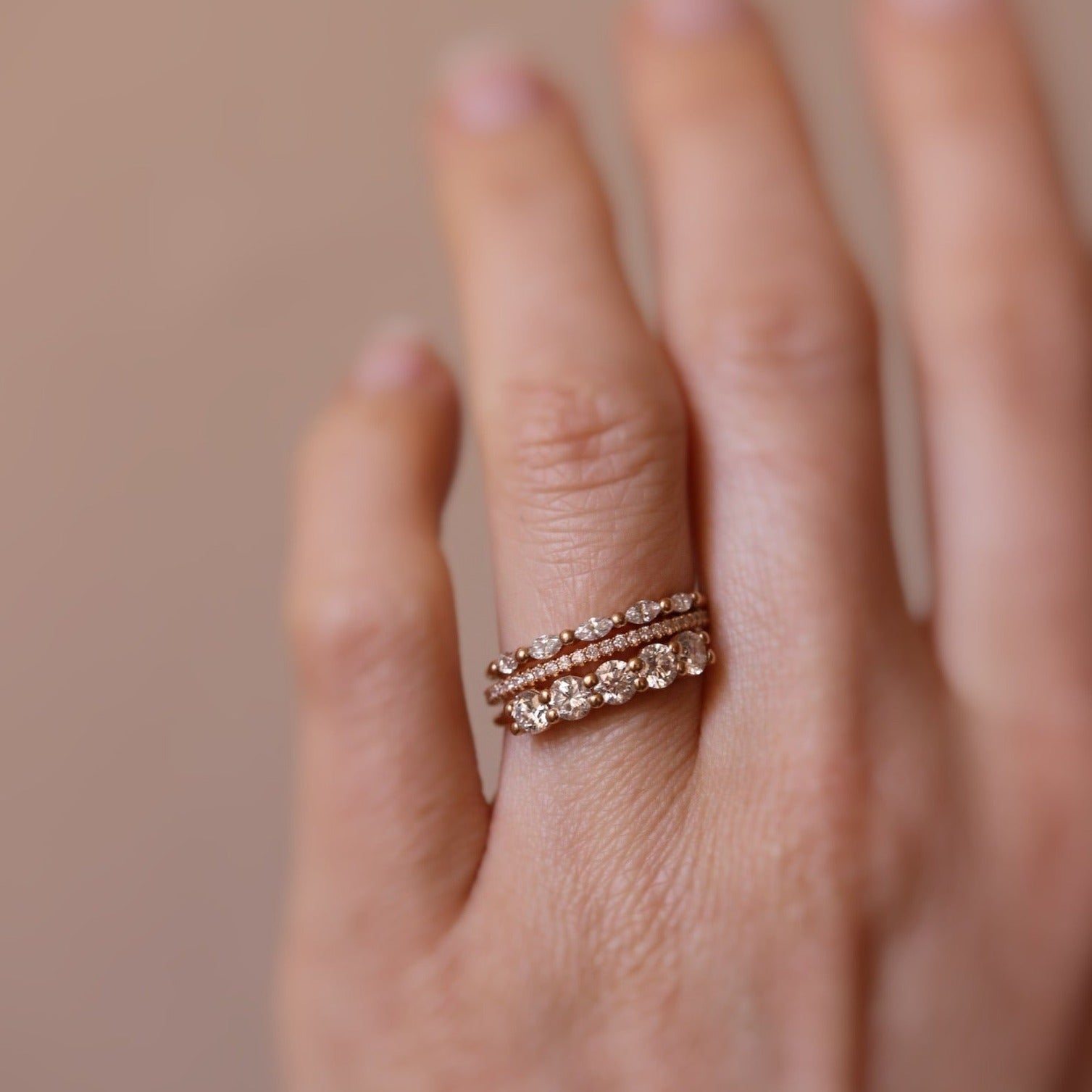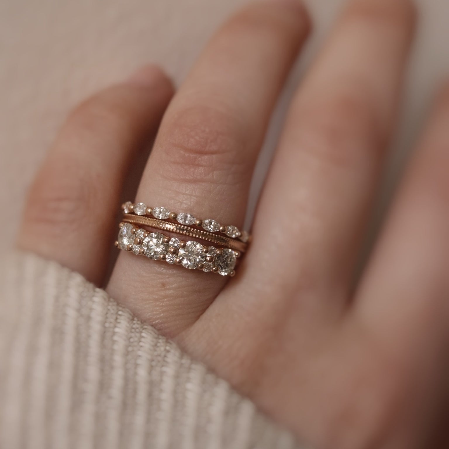 Five rings in a stack is easy to pull off! It can be beautifully dainty, while each ring's uniqueness shines through.