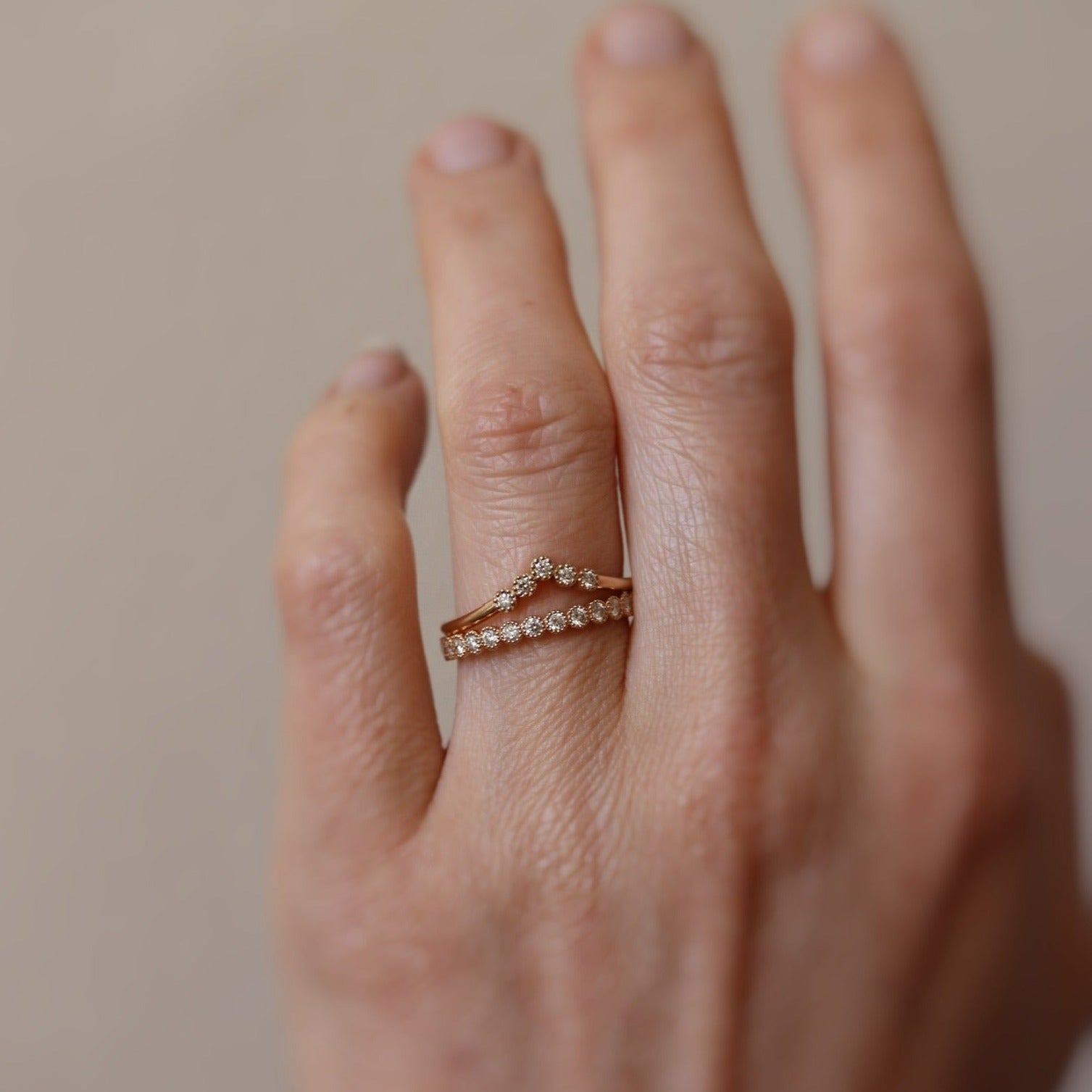 Flat bands are rings that are designed to lie flush on your finger. The gemstones are usually more but smaller. Thanks to this, the flat band has a much lower profile compared to e.g. a solitaire ring. Many prefer a flat ring band and love that it is both practical and comfortable!