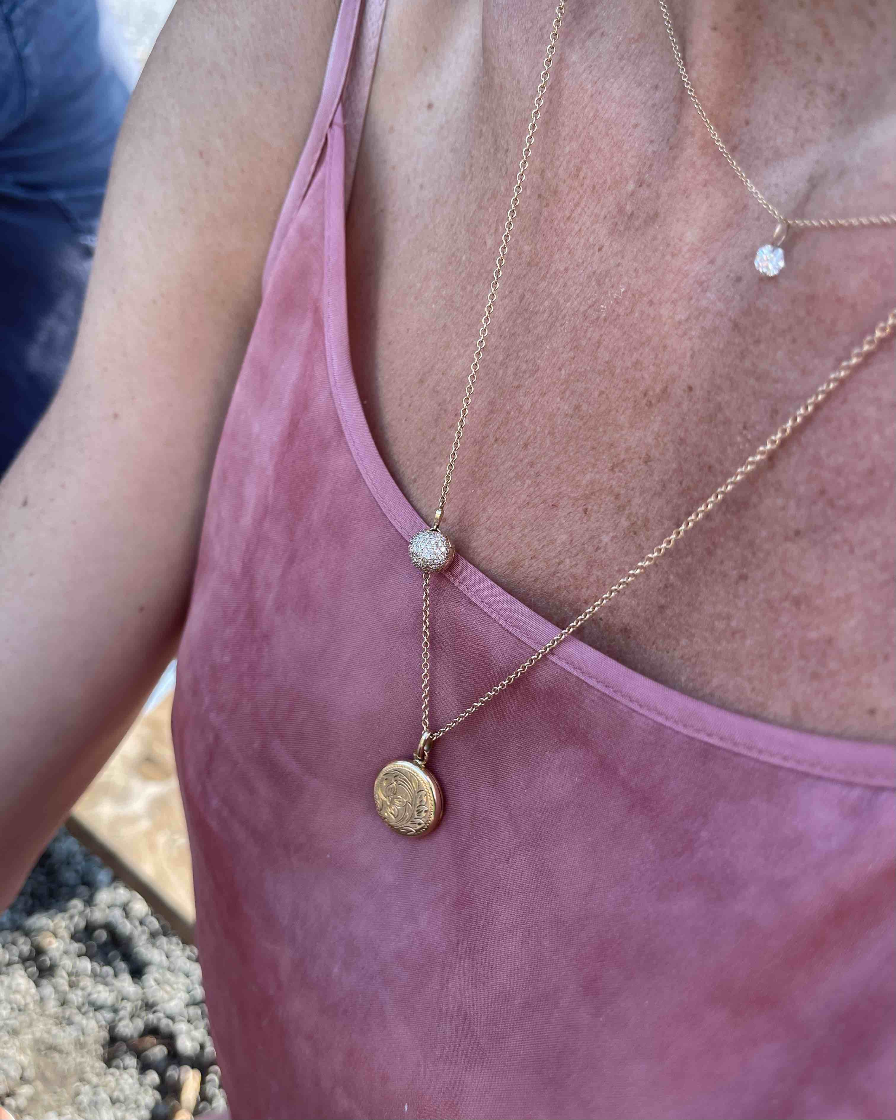 She has hung a vintage pendant on her Gaia Diamond Necklace!