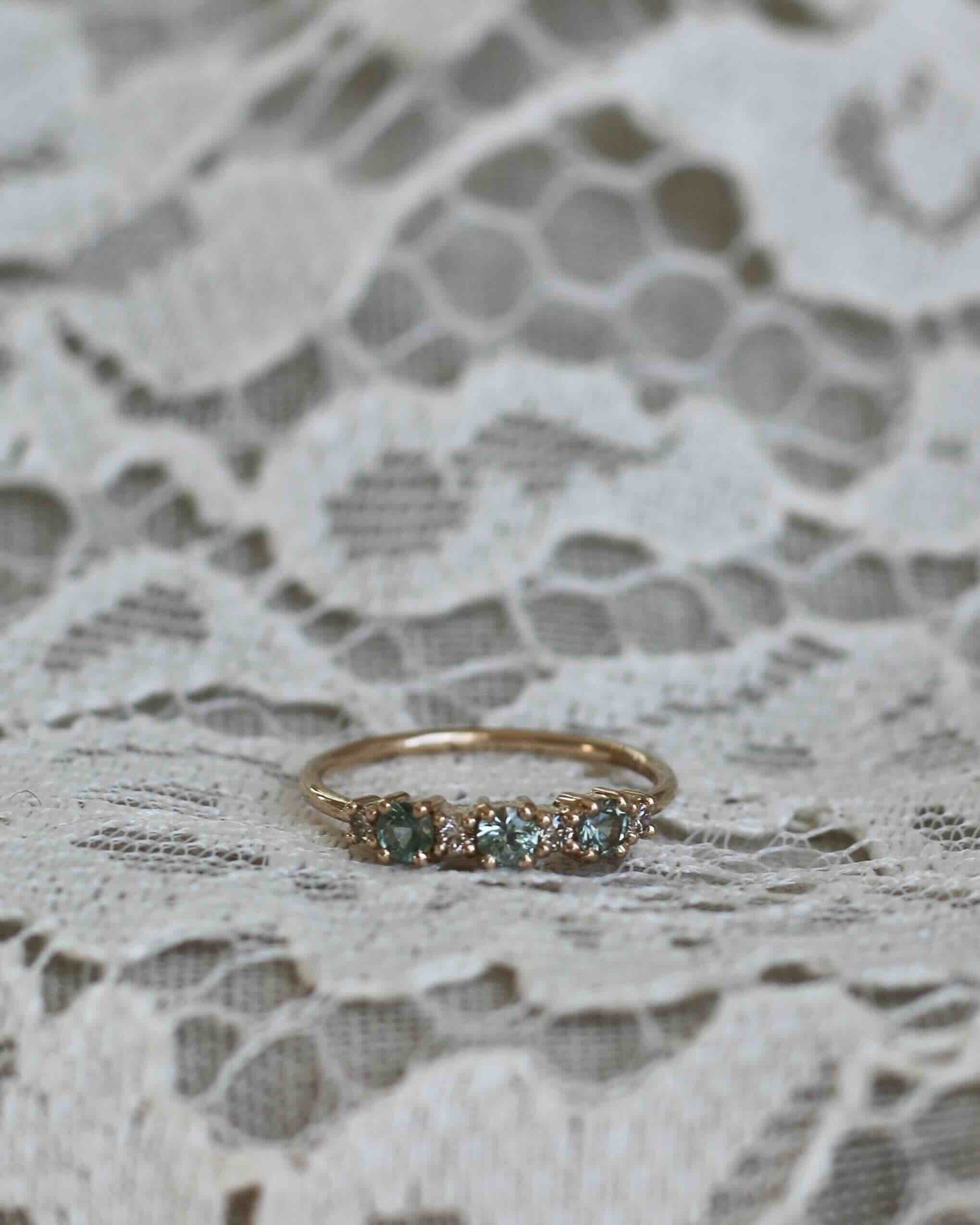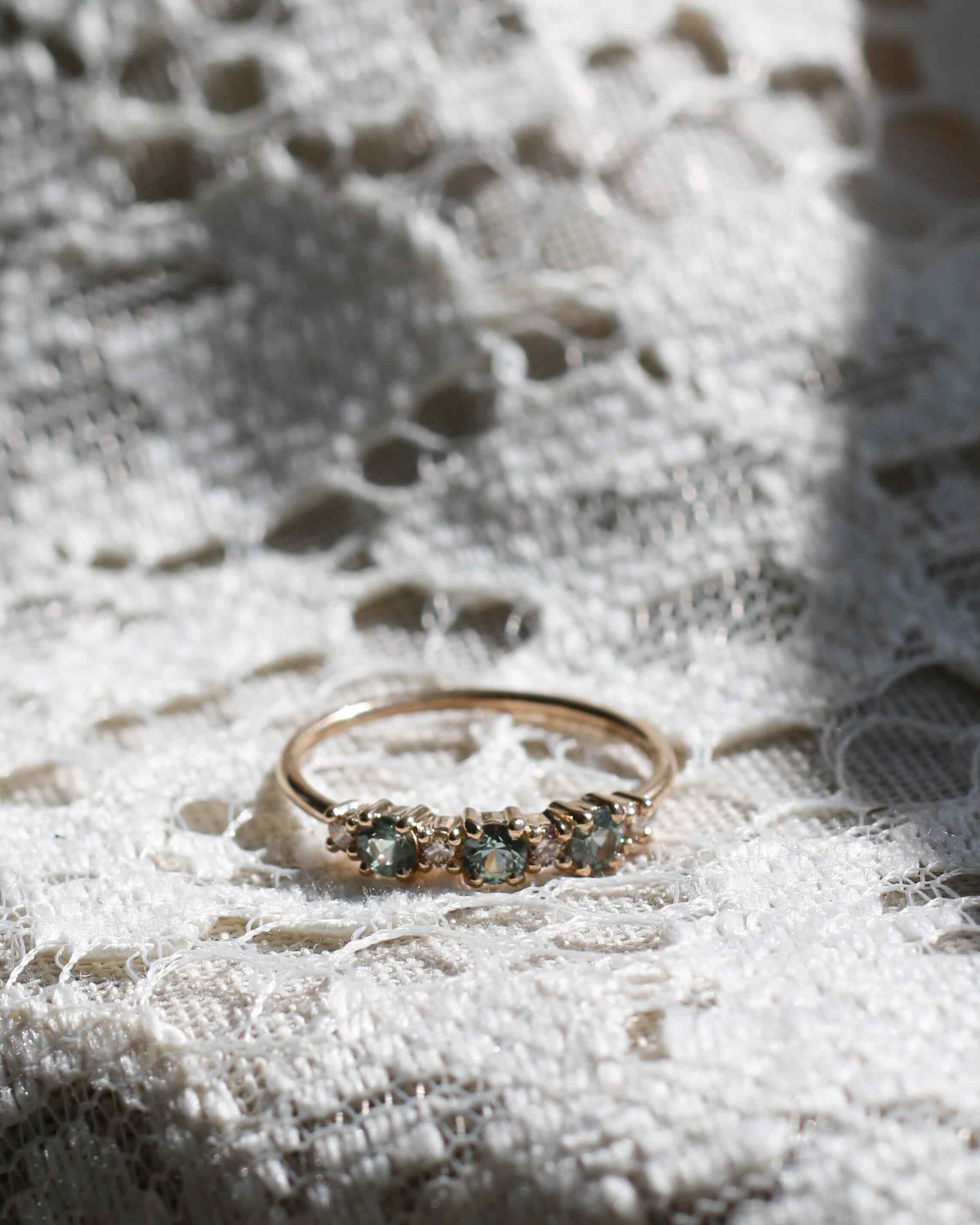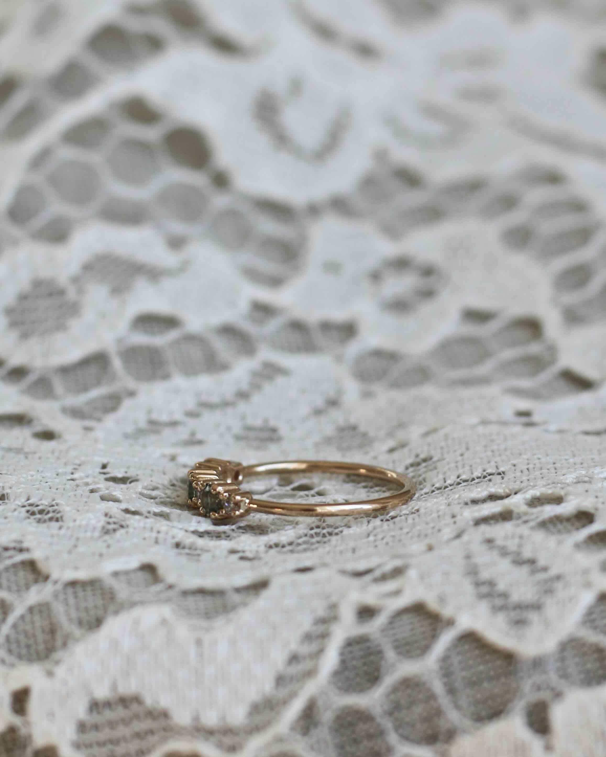 Brigitte Ring med Olivgröna Safirer och Champagnediamanter