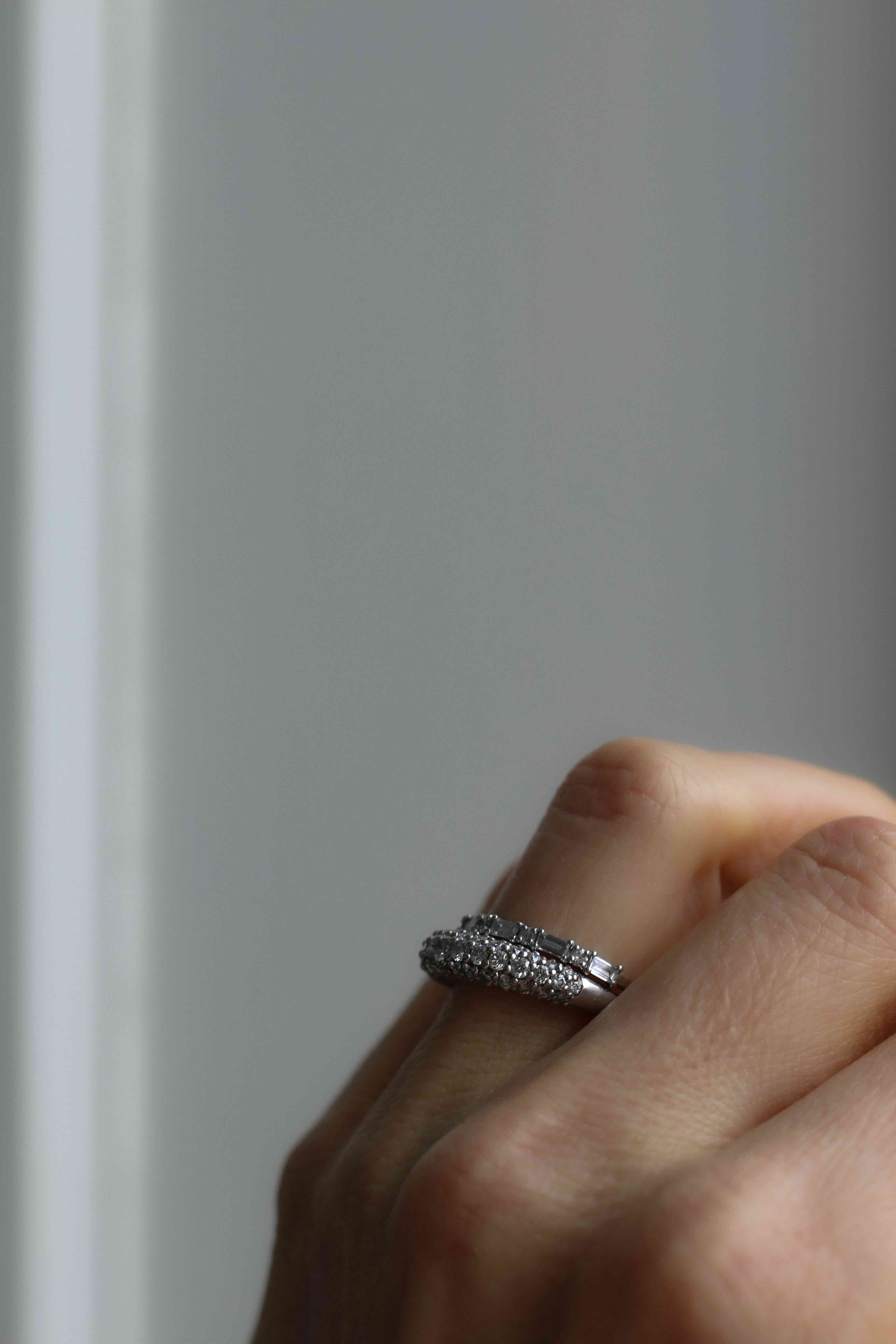 Alternerande baguettediamanter och briljantslipade diamanter runtom hela ringen