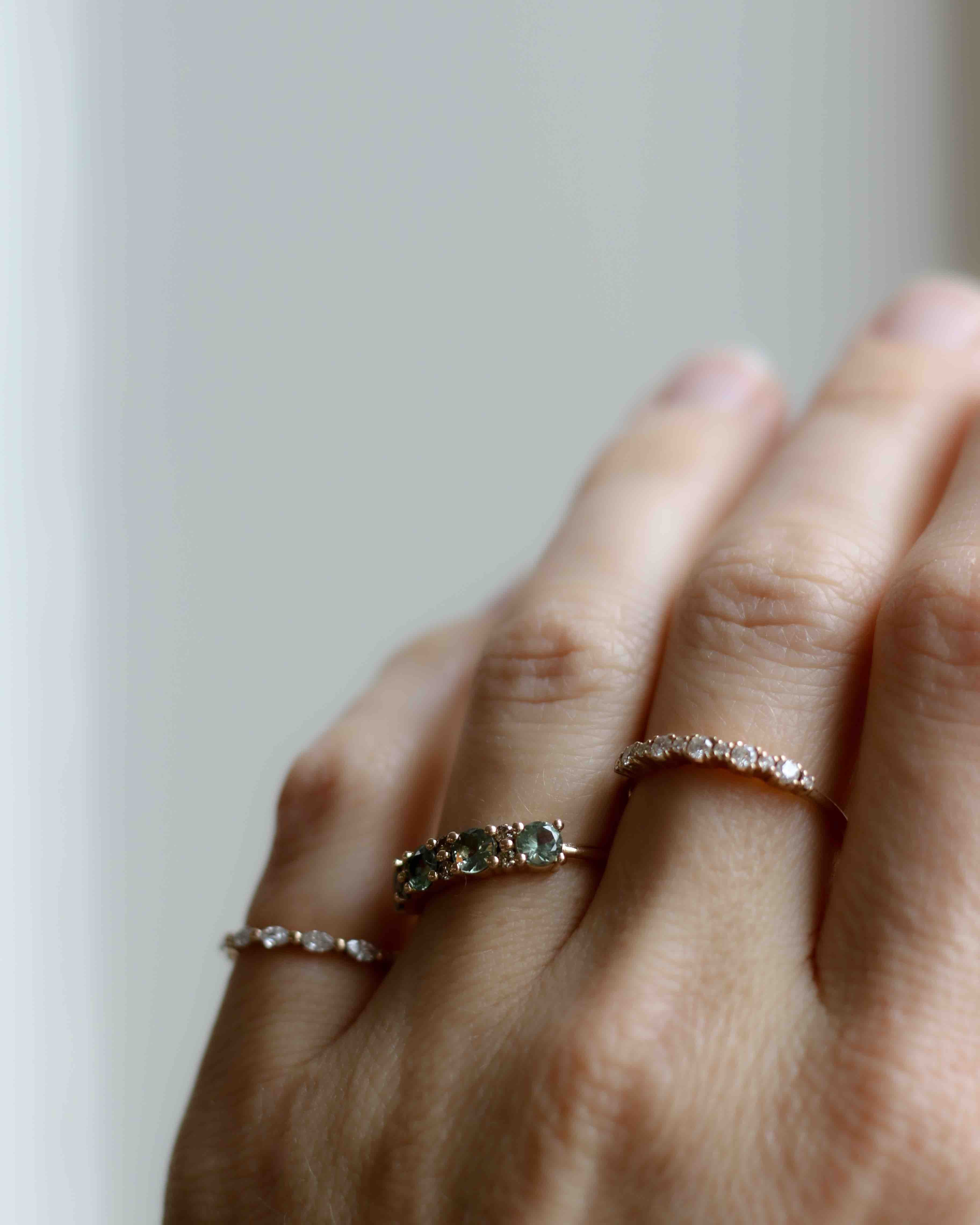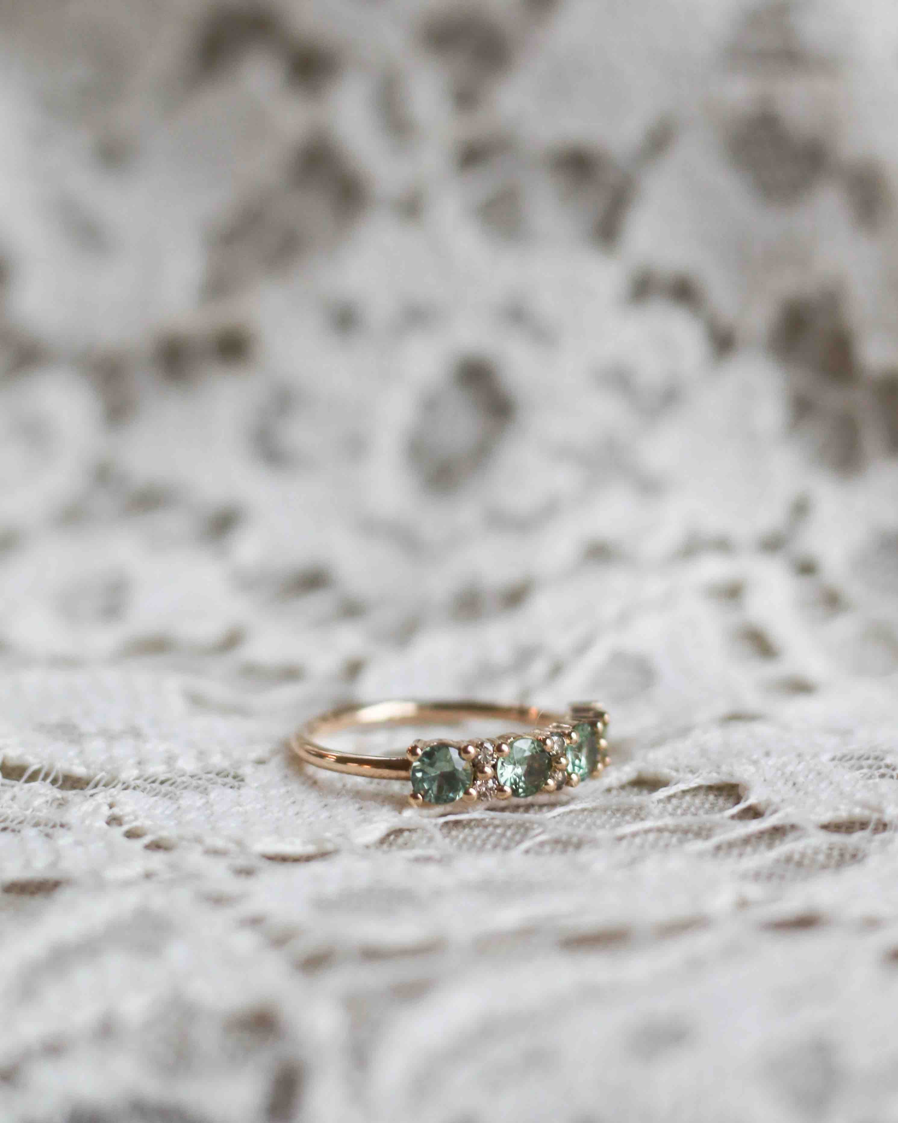 Anita Ring med Olivgröna Safirer och Champagnediamanter