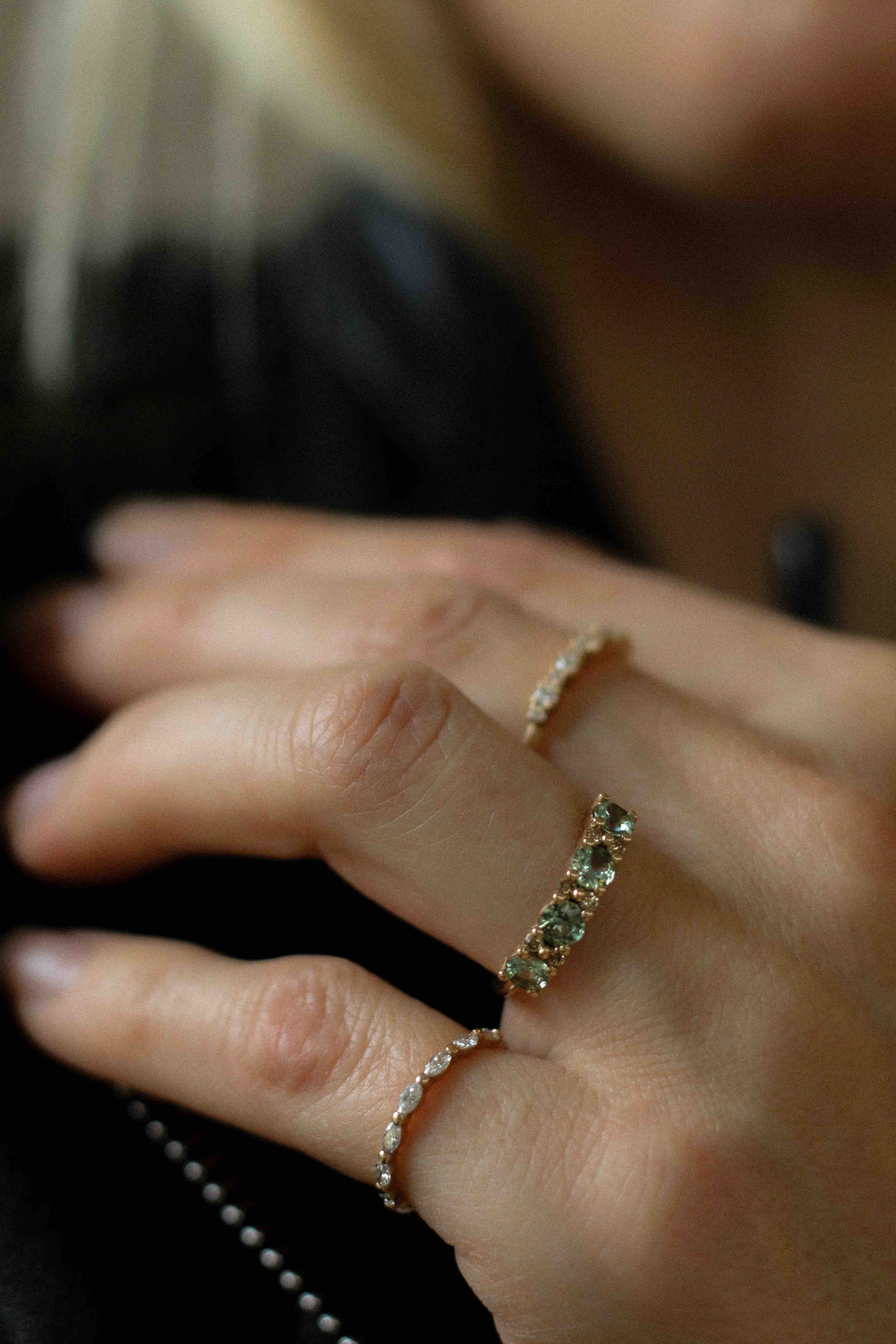 Anita är vacker i sig själv som ett statementsmycke, men också fantastisk att kombinera med ett tunt diamantband som t.ex. Jade Petite Ring eller Marquise Ring.