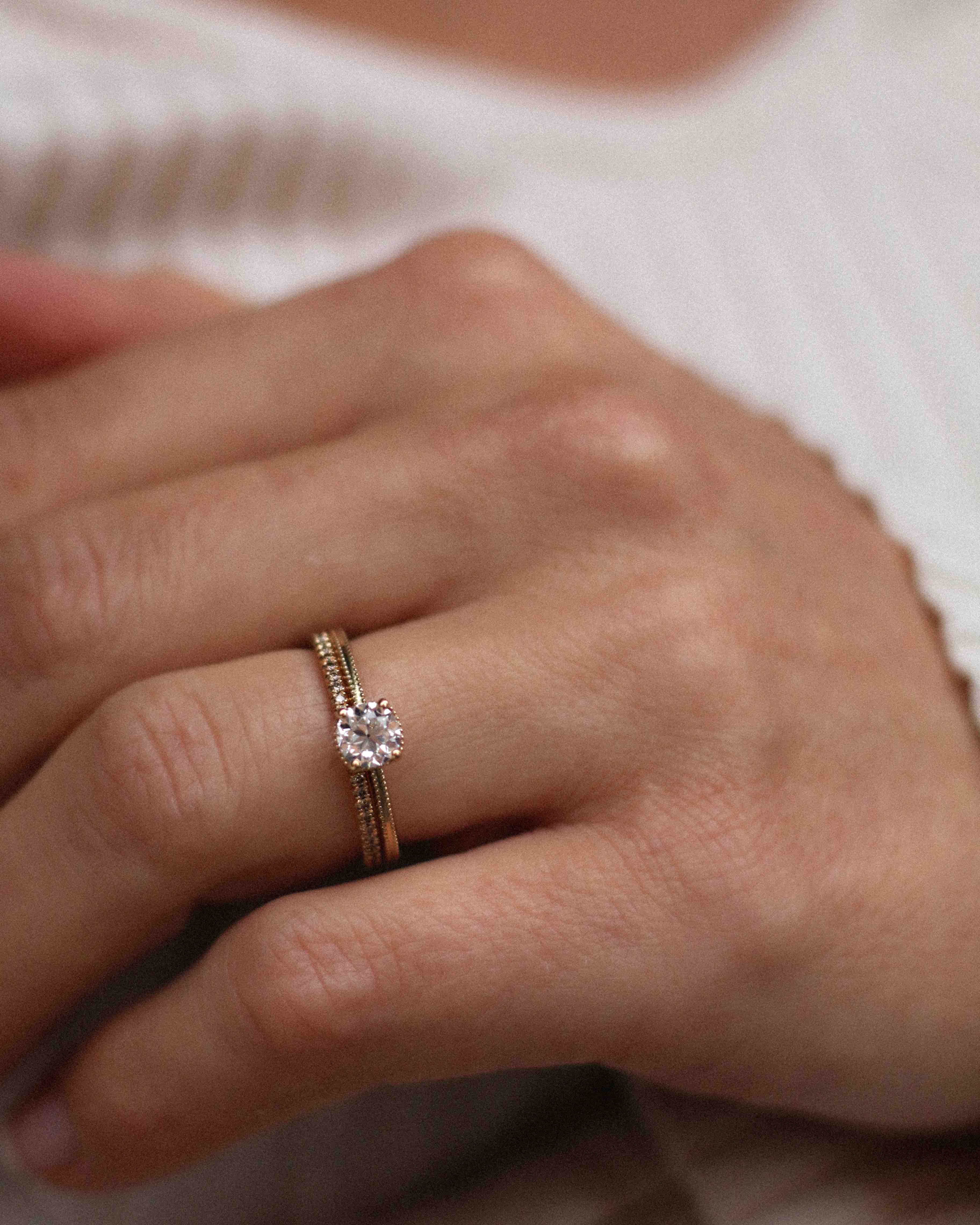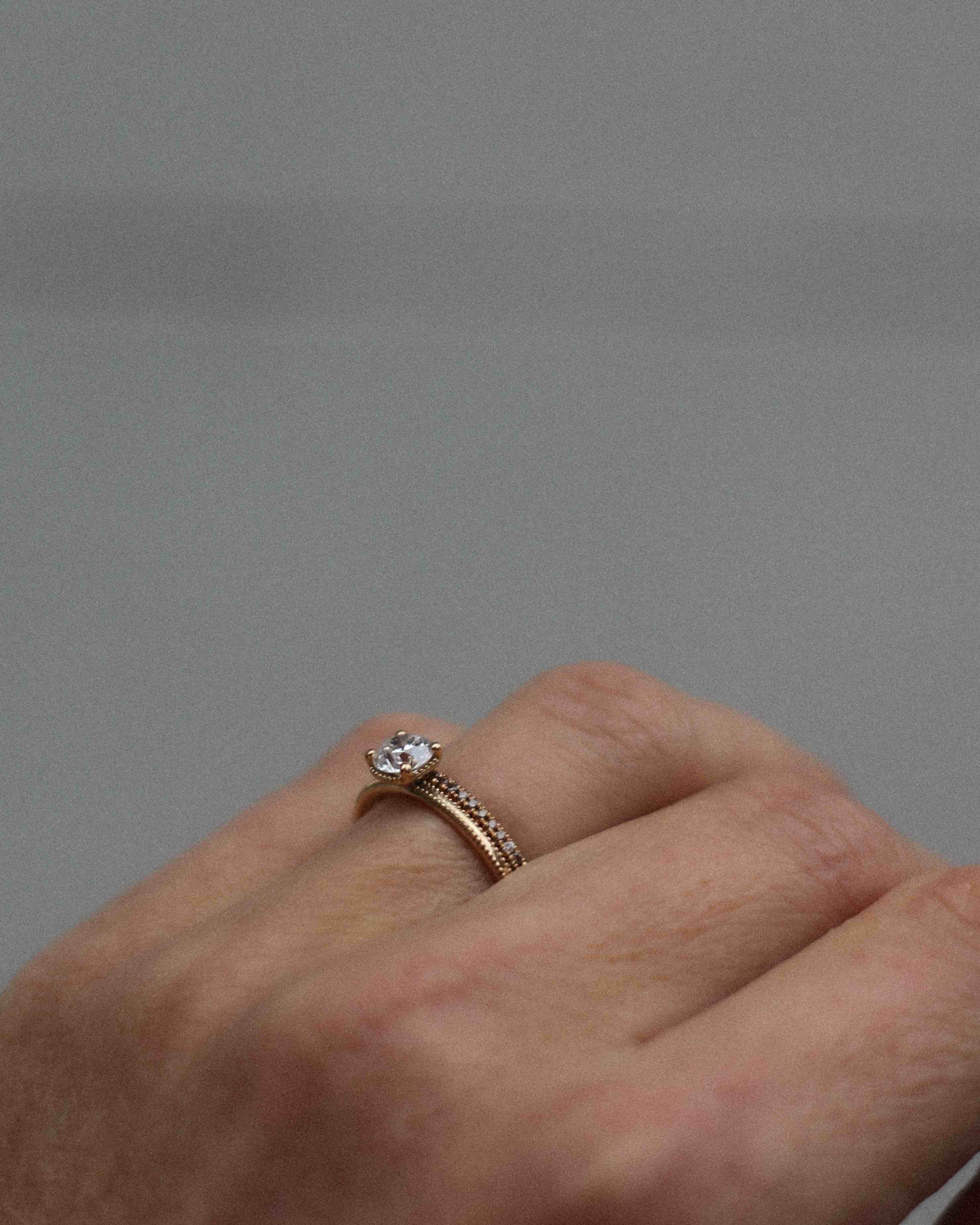 I mitten sitter en 0.57 CT antikslipad diamant.