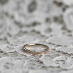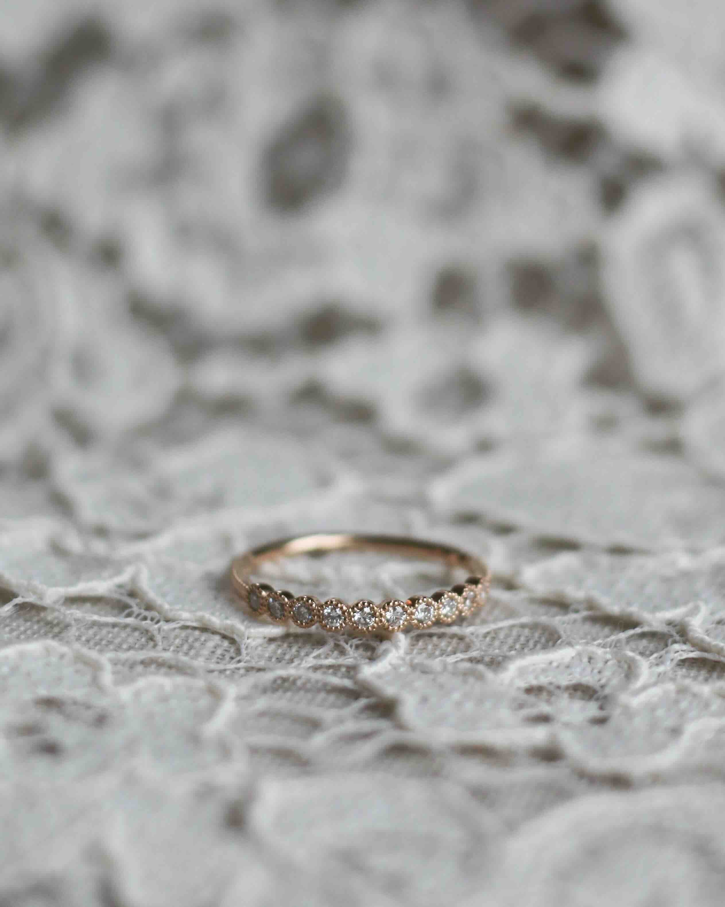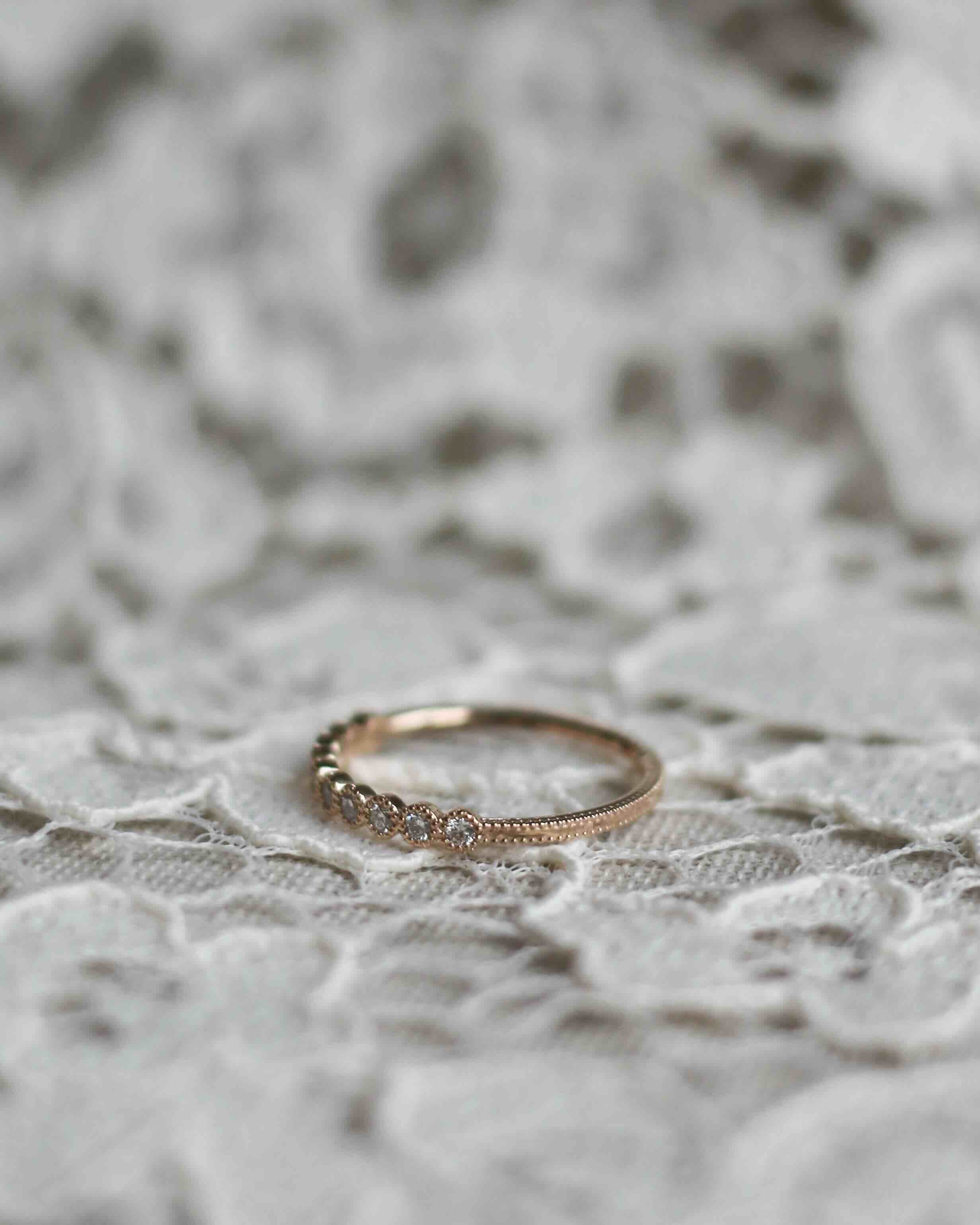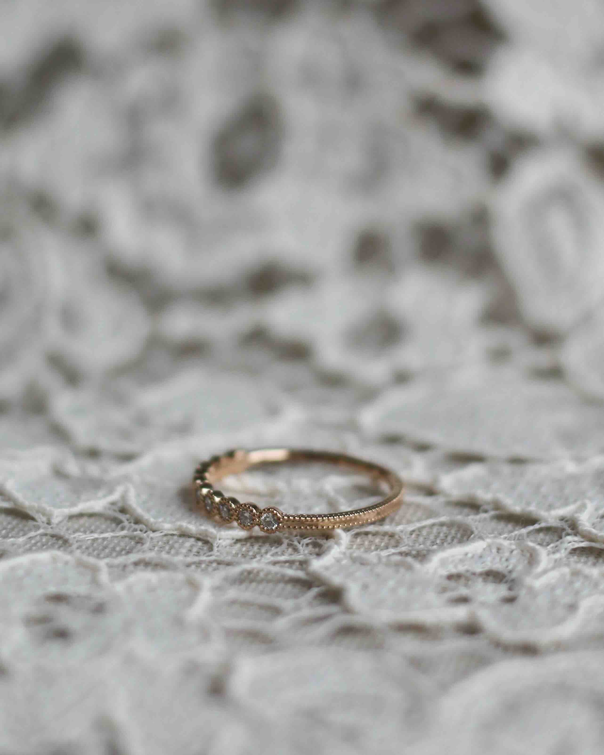 Astrid är ett evighetsband med ett unik skimmer, tack vare de små guldprickarna, milligriffen. Milligriff var en vanlig dekor på smycken i början av förra sekelskiftet (18/1900).