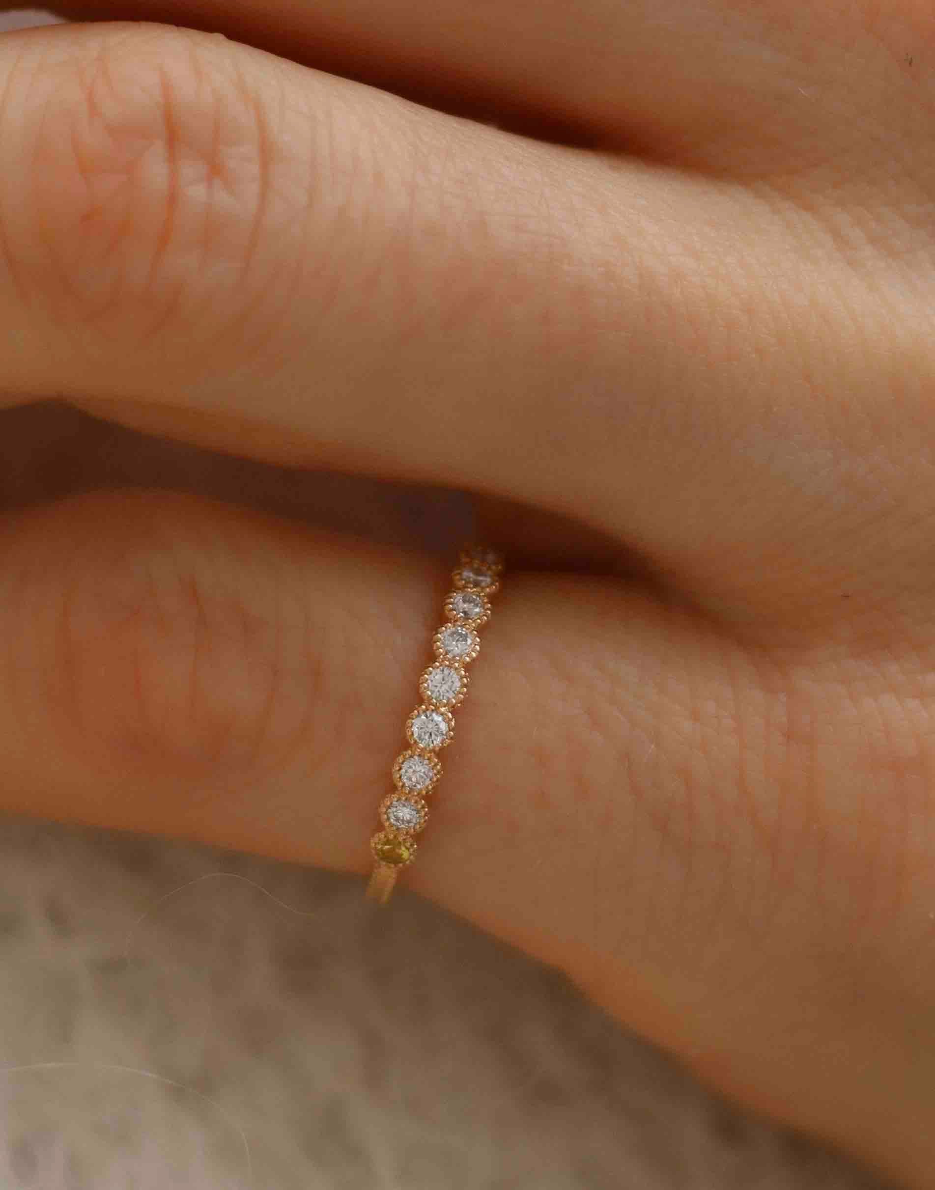 Astrid Vintage Diamond Band fantastiskt vackert diamantband som har en underbar vintagekänsla. Dekoren runt fattningen är en underbar milligriffdekor som var vanlig i smycken under förra sekelskiftet (1800/1900).