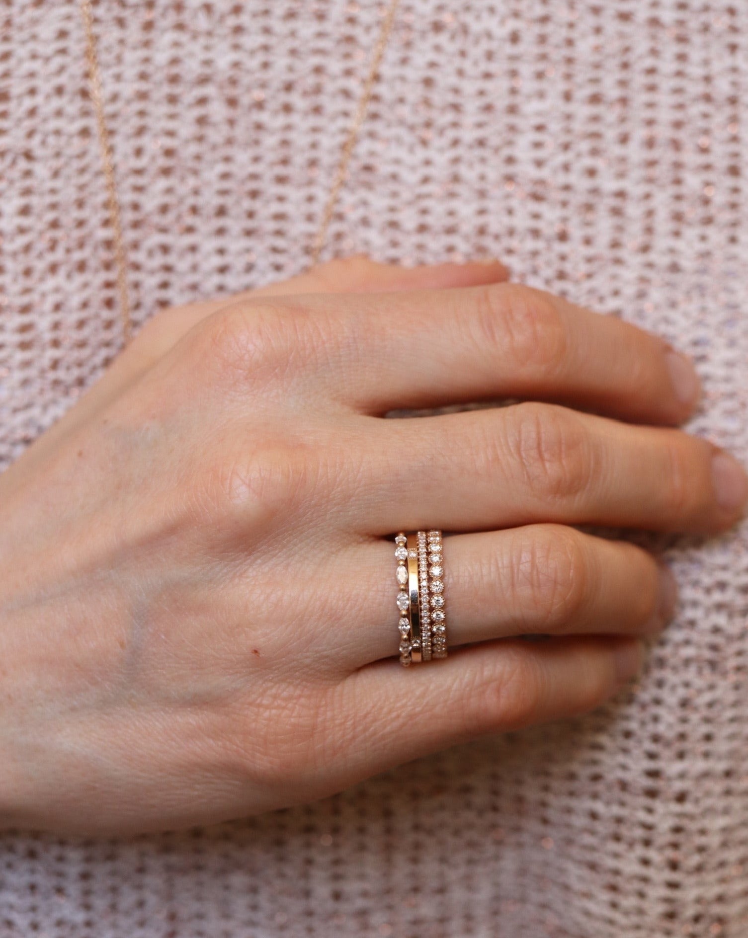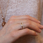 Astrid är en fantastisk stackingring och är otroligt fin ihop med flera ringar i en stack. Kombinera gärna ihop med ringar som har olika strukturer och former på ädelstenarna.