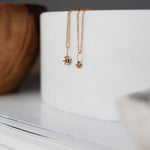 We highly recommend you to add our bare gold chain to your order, as it is very minimal and truly complements this super minimalistic diamond pendant!