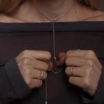 This necklace is cleverly constructed without a lock, to perfectly fit the minimalistic design. Instead, the chain is threaded through a small hoop and held in place by the small diamonds set along the chain.