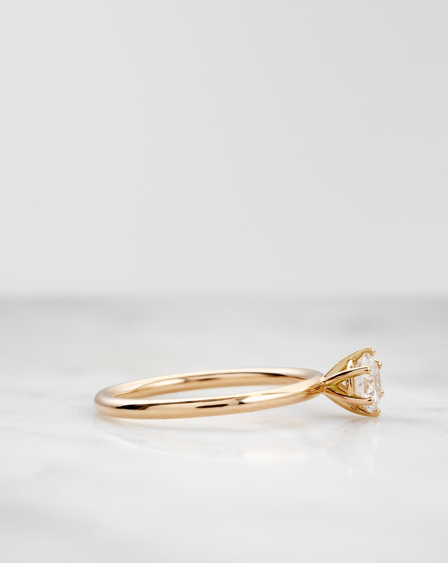Diamanten är också fattad något lägre här än i The Solitaire, vilket gör att denna ring är perfekt för dig som föredrar att bära din diamant närmare fingret. Fattningen är tillräckligt hög för att skapa ett elegant intryck och ge diamanten ett lyft.