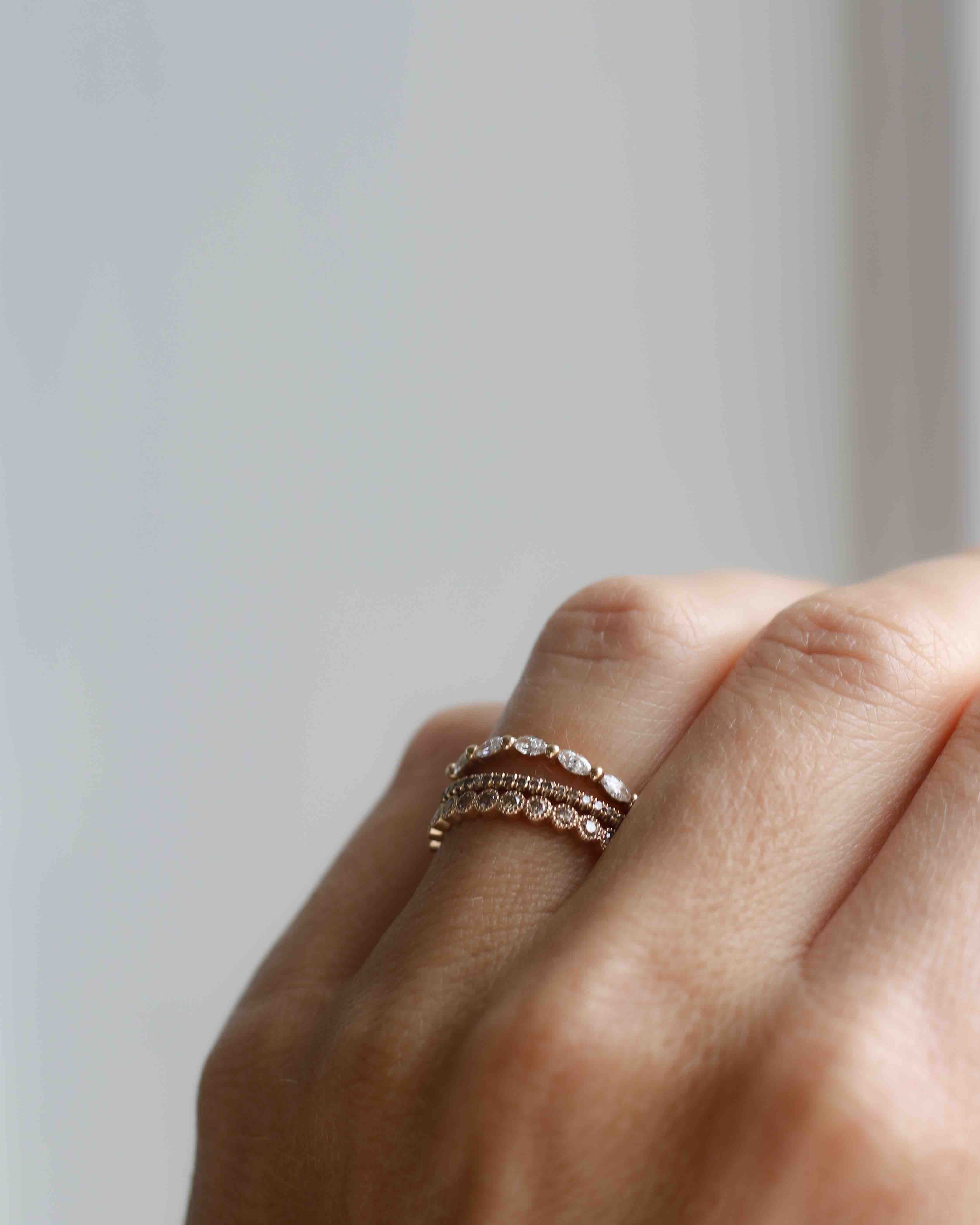 This ring was first designed as a wedding for a customer who had Edith Ring 0.47 CT as engagement ring. I was in the showroom during her meeting, and I was so happy when I overheard her and Helena discussing this design. Could we possibly make a curved band with Marquise diamonds? Of course! And here it is. Xx Cecilia, Designer