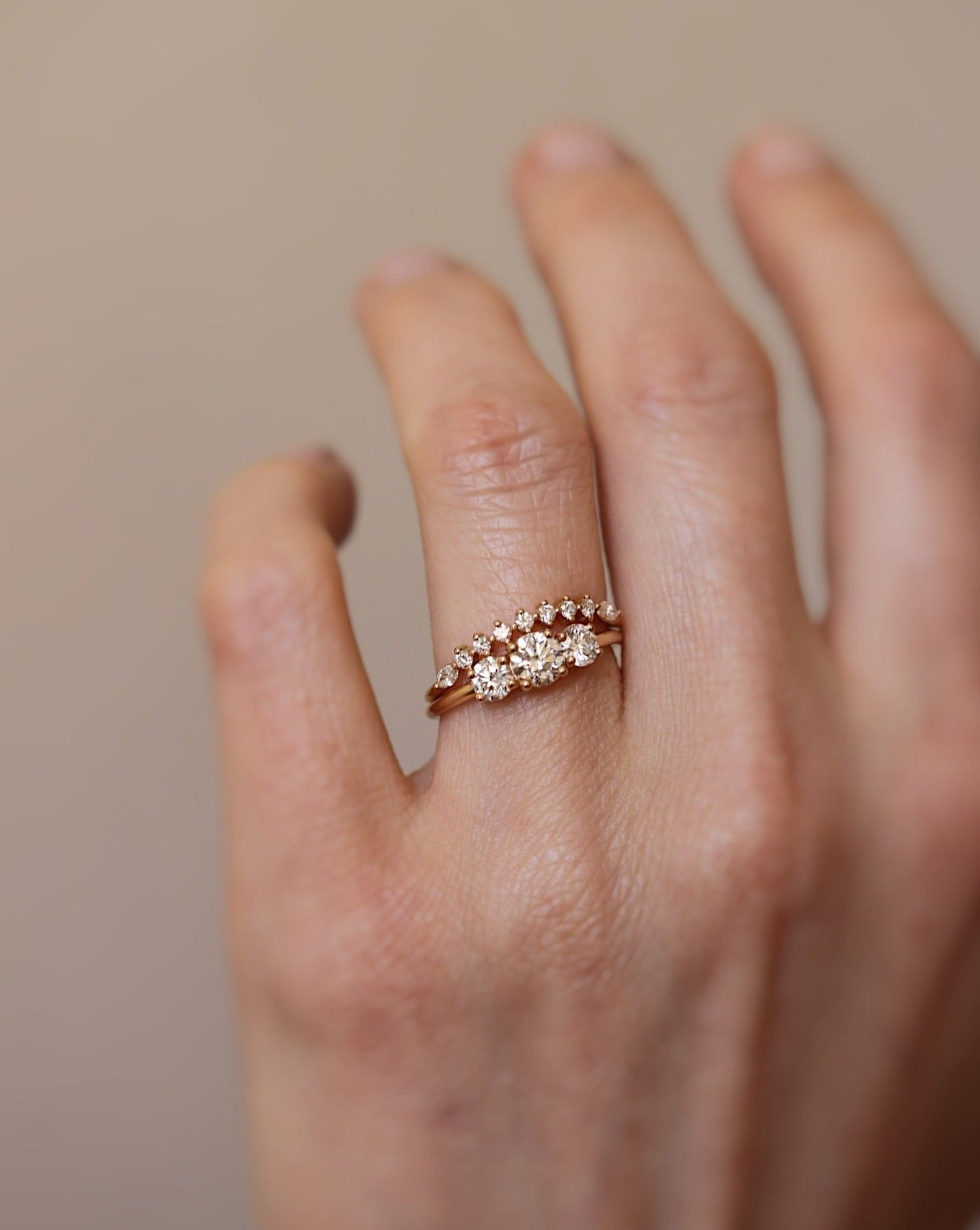 Just Edith Ring 1.0 CT passar särskilt fint ihop med våra böjda ringar som tar för sig.