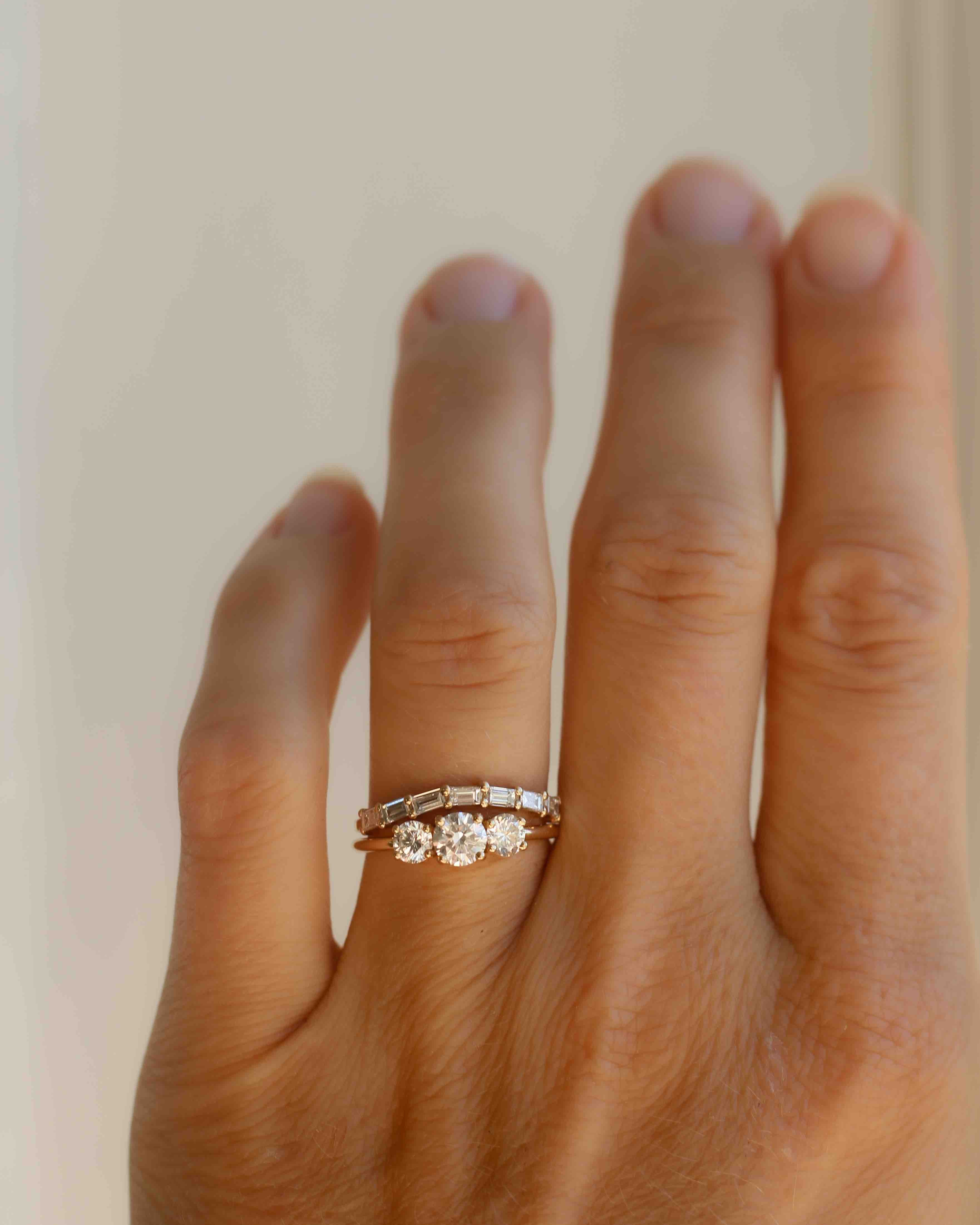 Detta är en av de första förlovningsringarna jag la till i kollektionen. Jag ville skapa en design av trestensring som var så minimalistisk som möjligt. Så blev Edith Ring till. Denna versionen med 1.0 CT är en minimalistisk ring som ändå vågar ta för sig. Så vacker! Cecilia