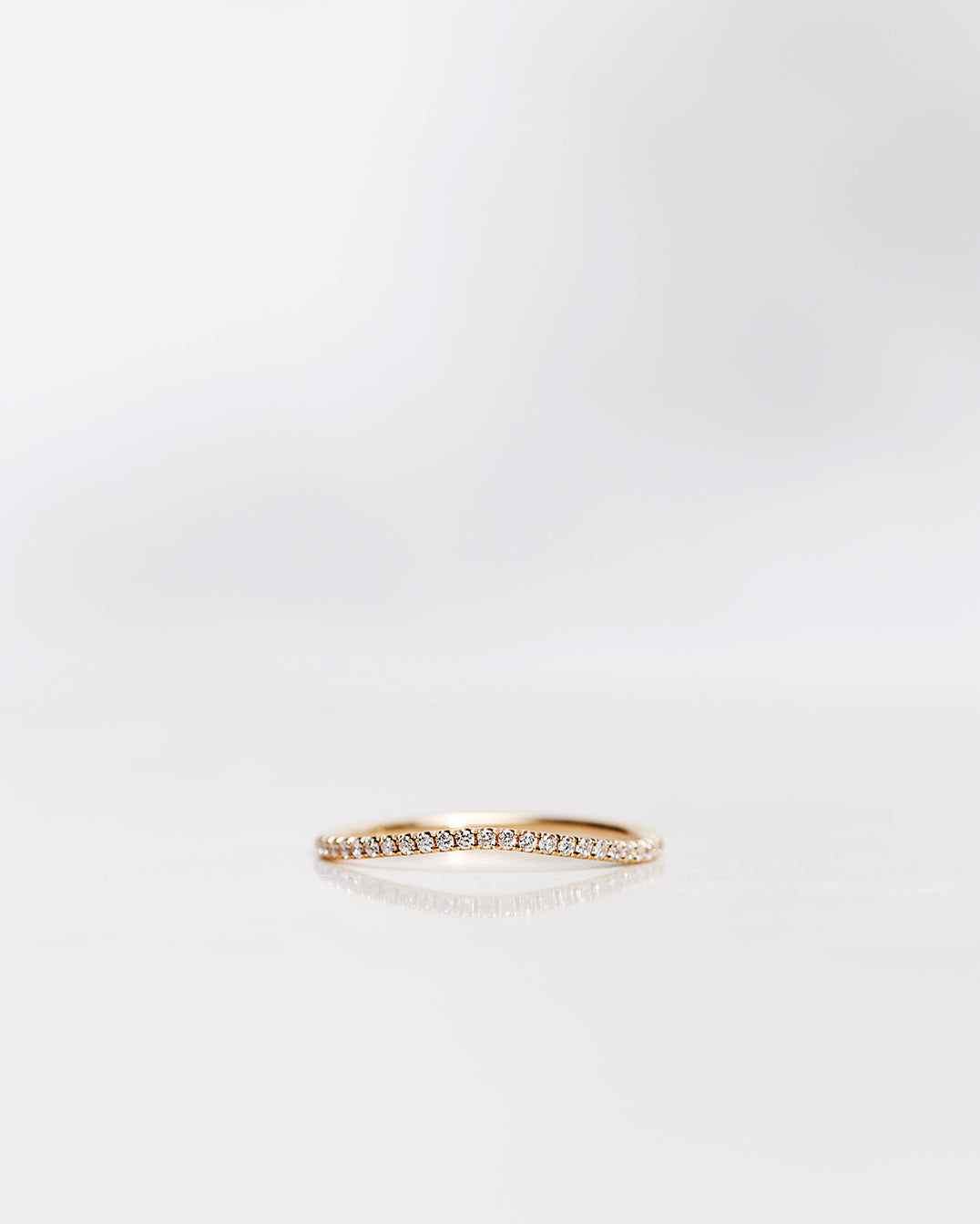 It acts as a beautiful curved band - a so called "diamond jacket" - to our side stone rings Edith, Elise, Greta and Gilda.