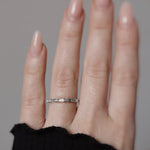 The minimalistic design plays with the contrast between soft and hard, and is easy to stack and combine with other rings.