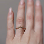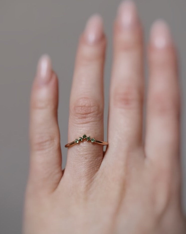 Here we have combined the beautiful design of Five Diamond Triangle Ring with the interesting look of a green tourmaline gradient, ranging from light to dark. This makes this stunning ring even more eye-catching, and super lovely!
