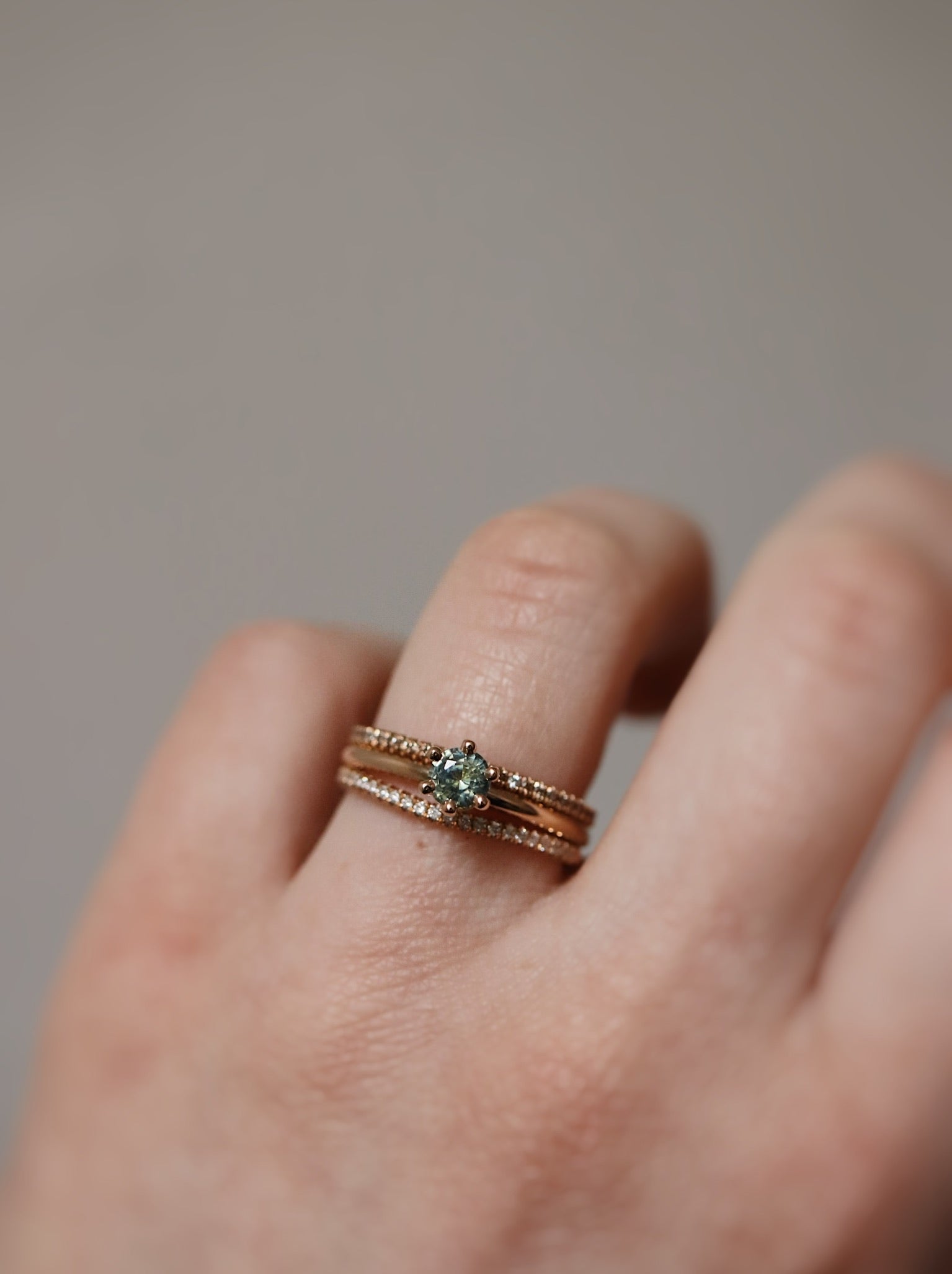 This ring looks beautiful alone but unlike many traditional solitaire rings, it is also perfect for stacking.