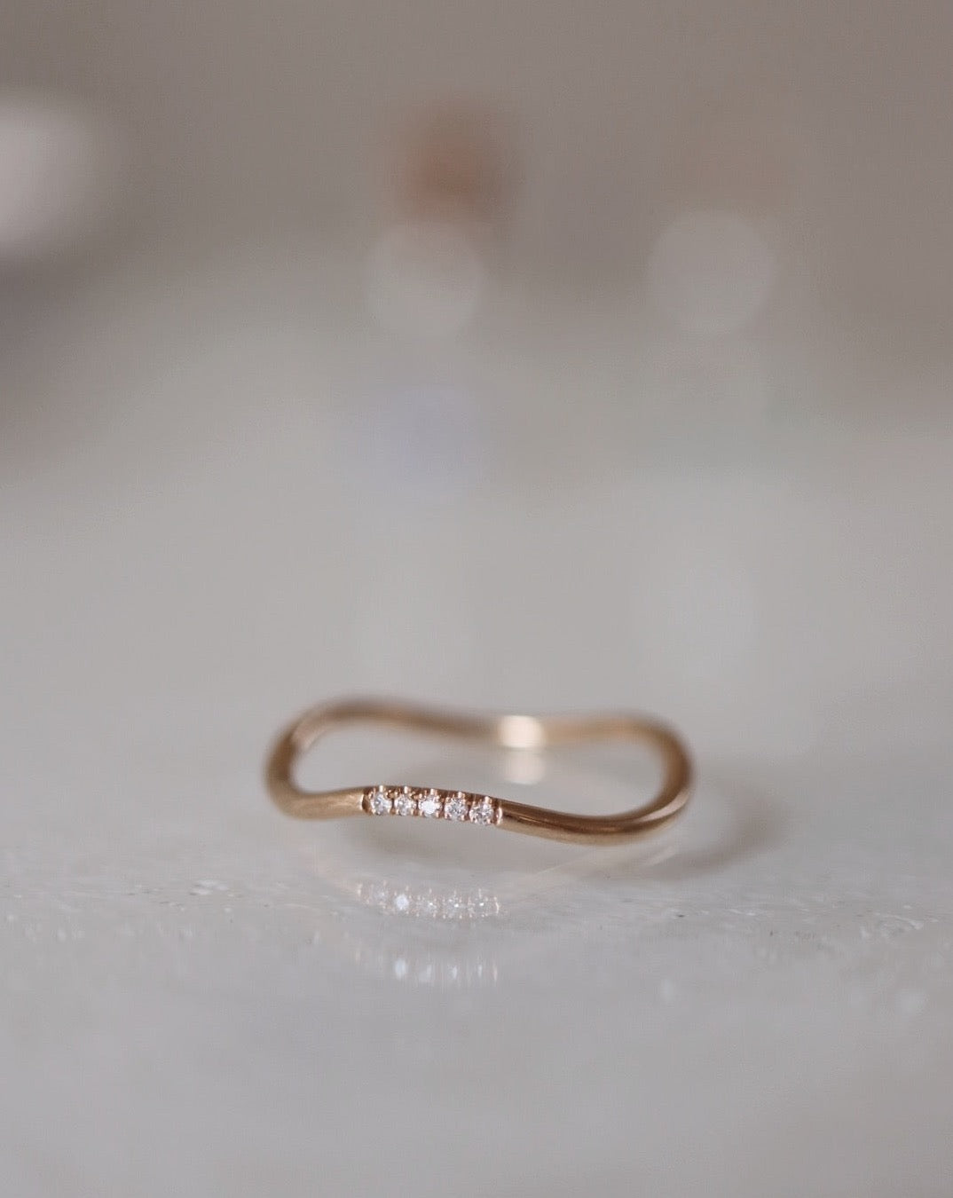 This ring is perfect for you who are looking for a ring with a perfect balance between diamonds and plain gold band, with an added wow-factor of the wavy band.
