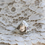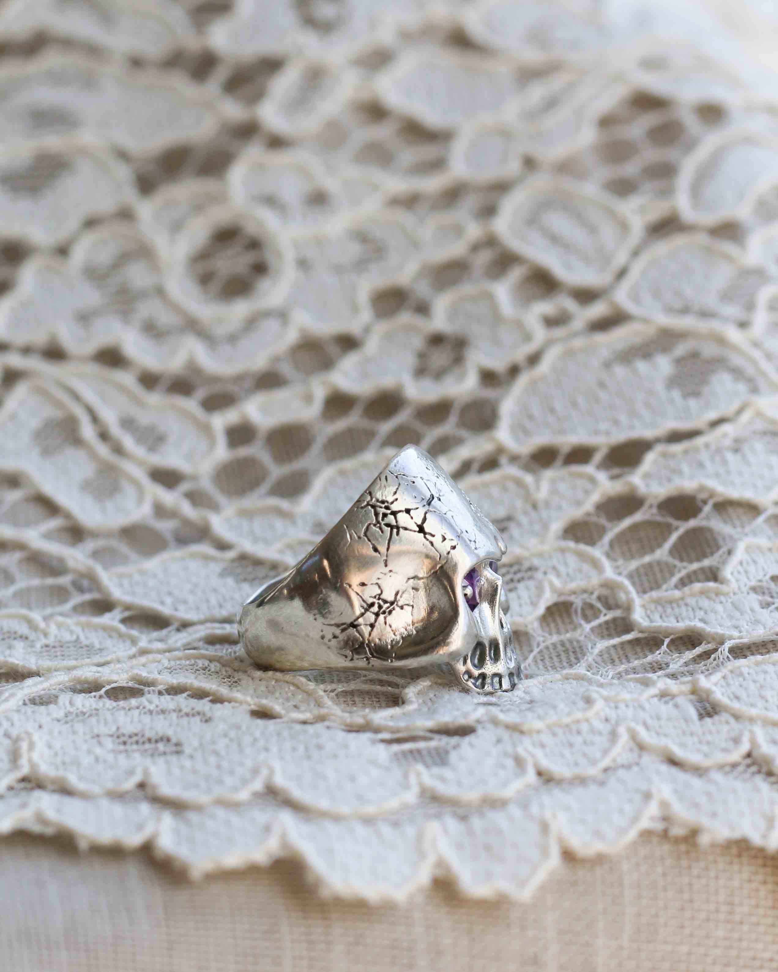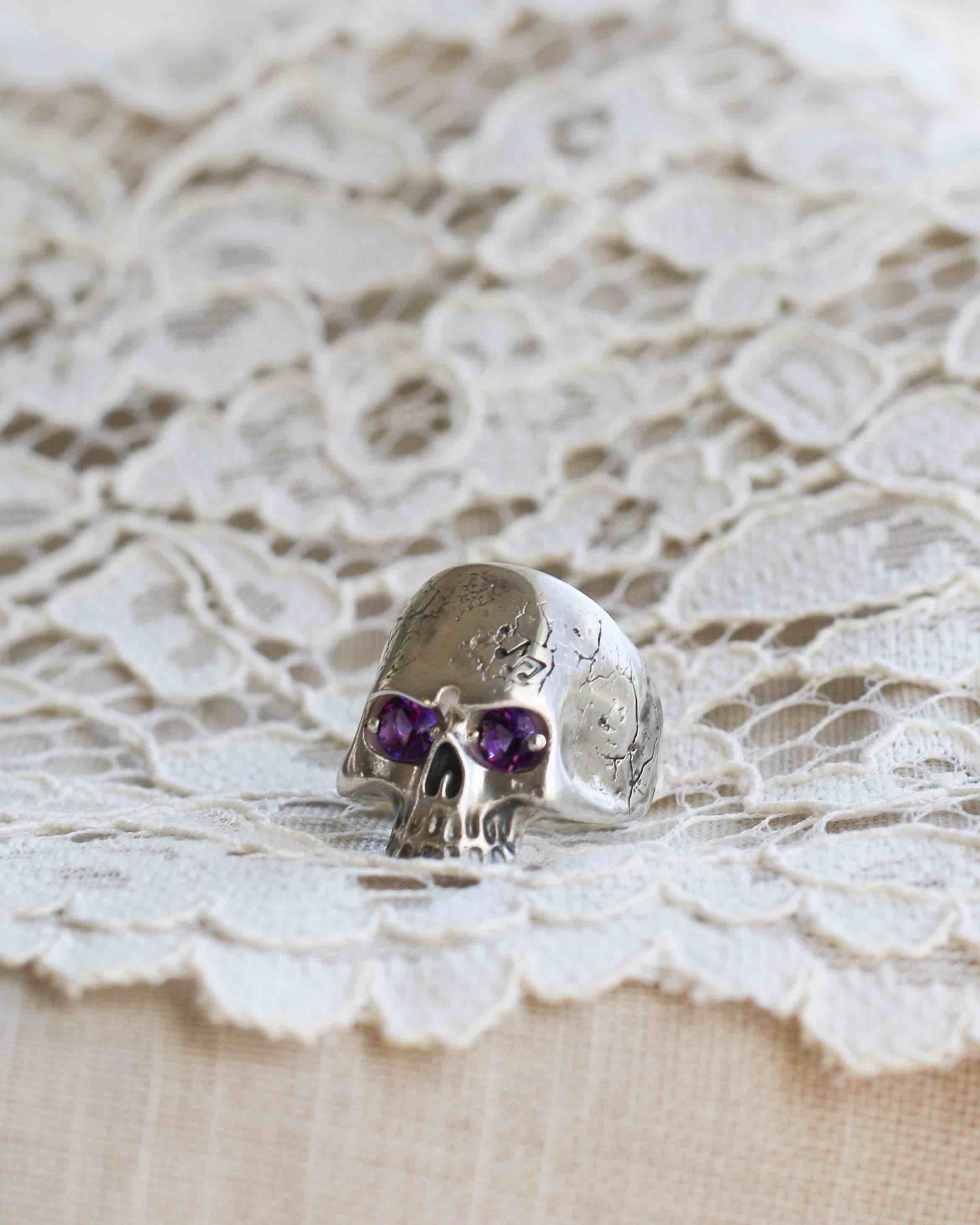 När jag designade denna ringen första gången var uppdraget: kille, 19 år, gitarrist i ett band, rock- och musikälskare. Hans föräldrar ville ge en ring till honom i studenpresent. Klassens färg var lila.