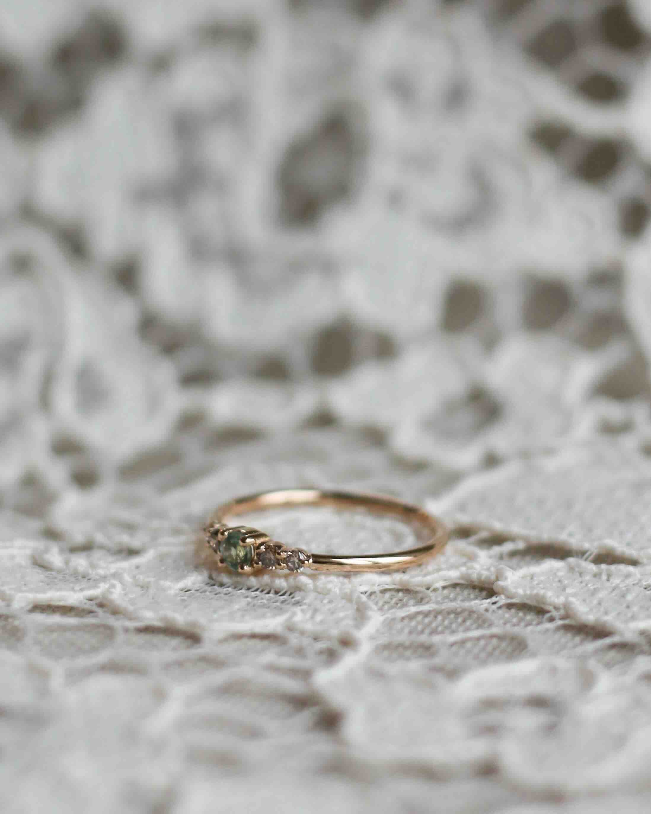 Många som provar Mini Elise Ring i vårt showroom upplever att den sitter väldigt fint på fingret och att balansen mellan de fem stenarna är så harmonisk.