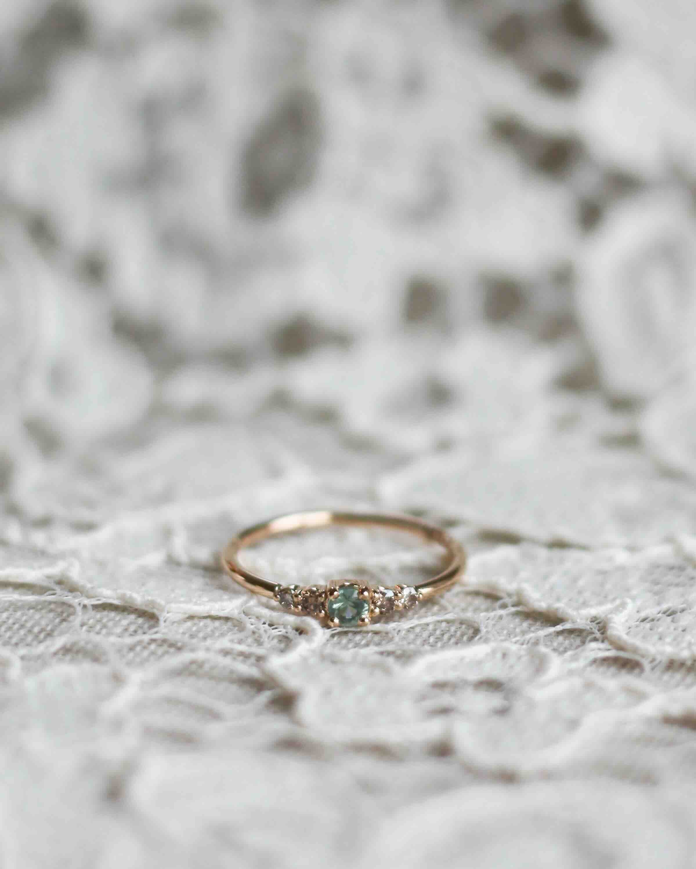 Unik! Mini Elise Ring med Olivgrön Safir och Chokladdiamanter