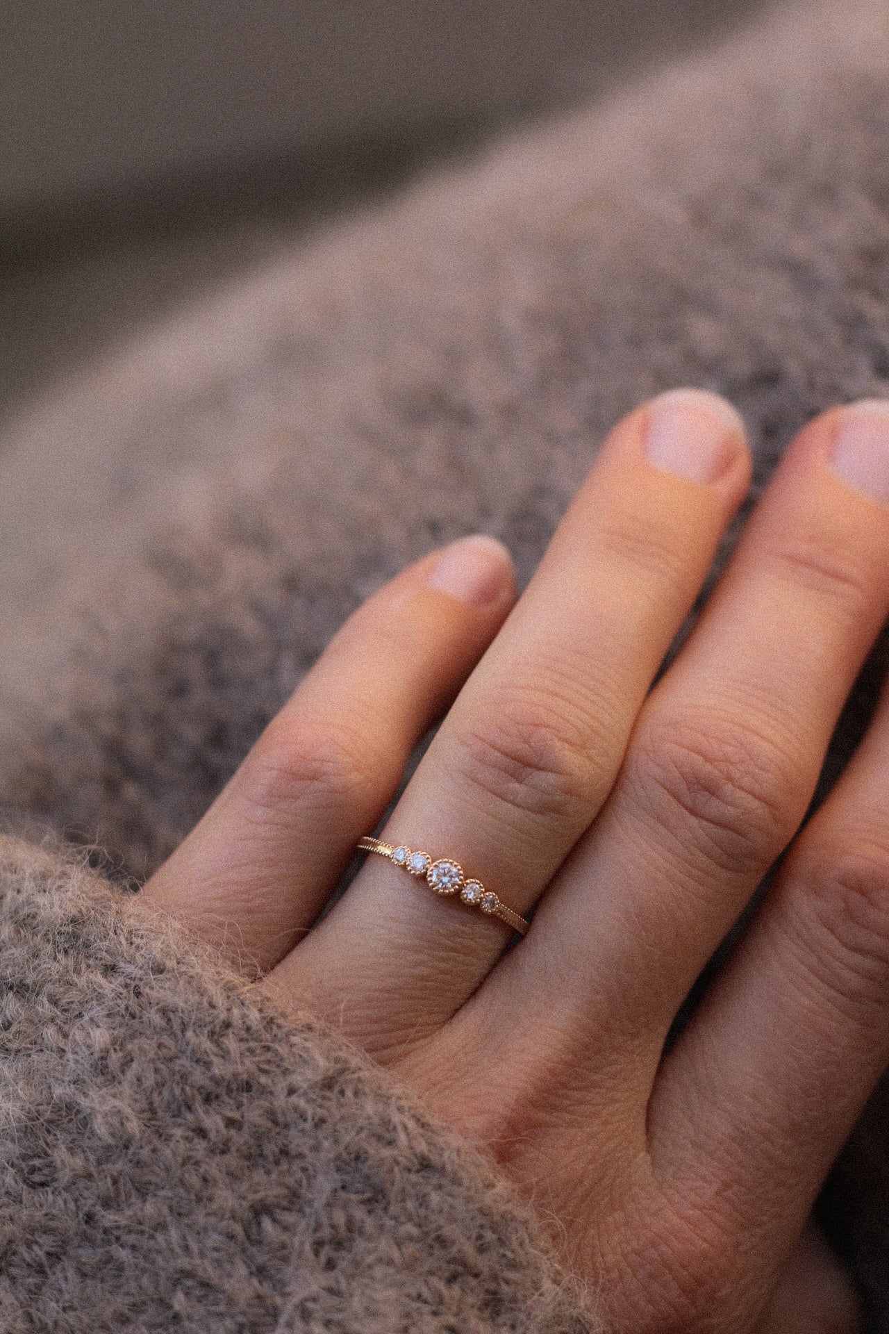 Mini Elise - originalet - är en minimalistisk, nätt diamantring som är fattad lågt och är underbart bekväm att bära.
