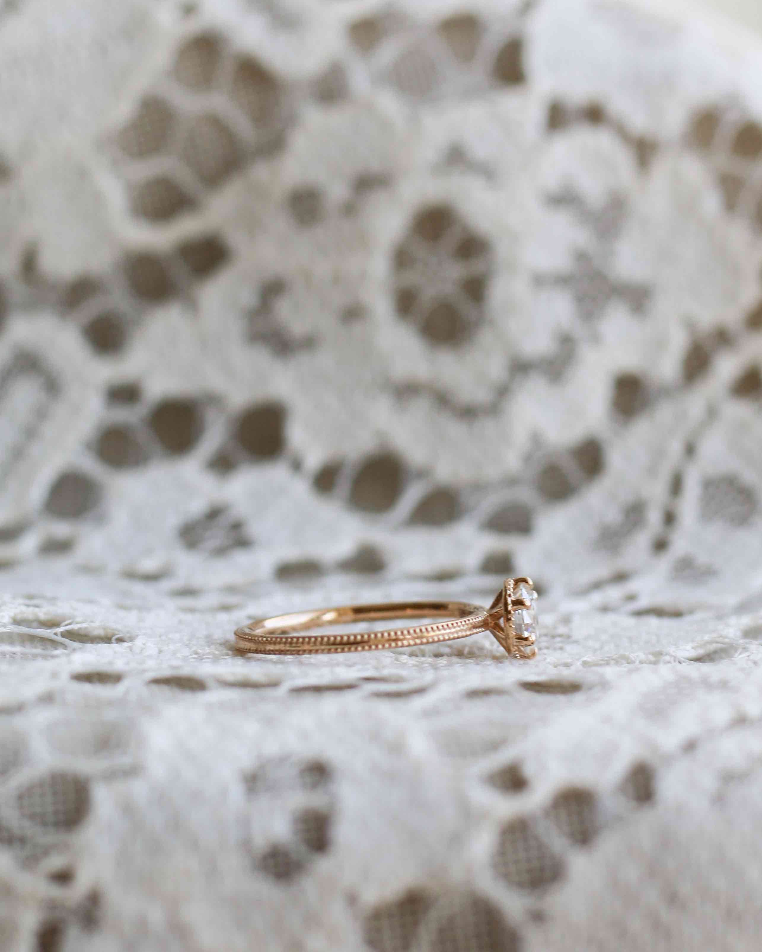 En galet vacker solitärring i gammeldags stil med en modern, briljantslipad diamant. (Om du hellre önskar en antikdiamant i din ring, hittar du dem här)