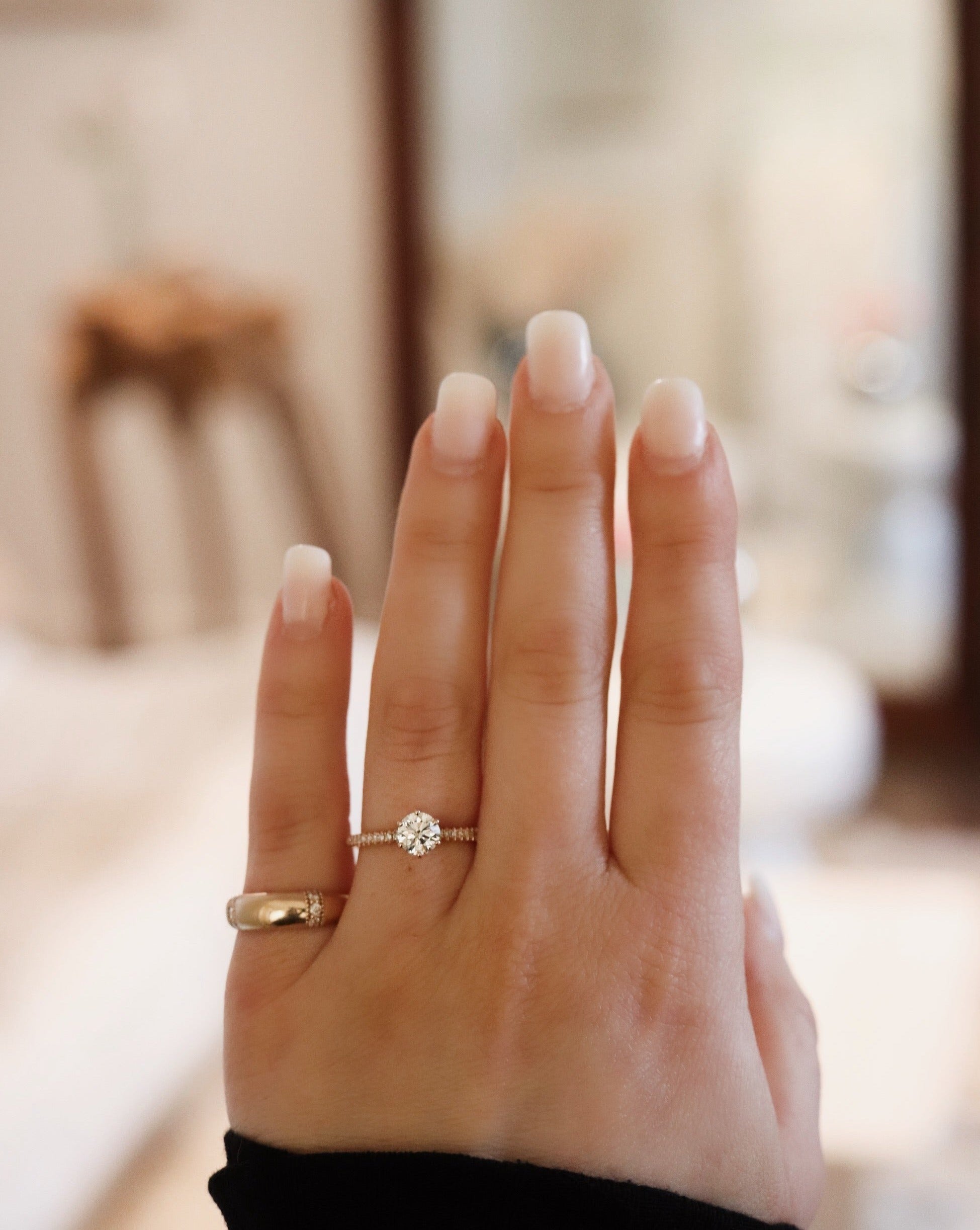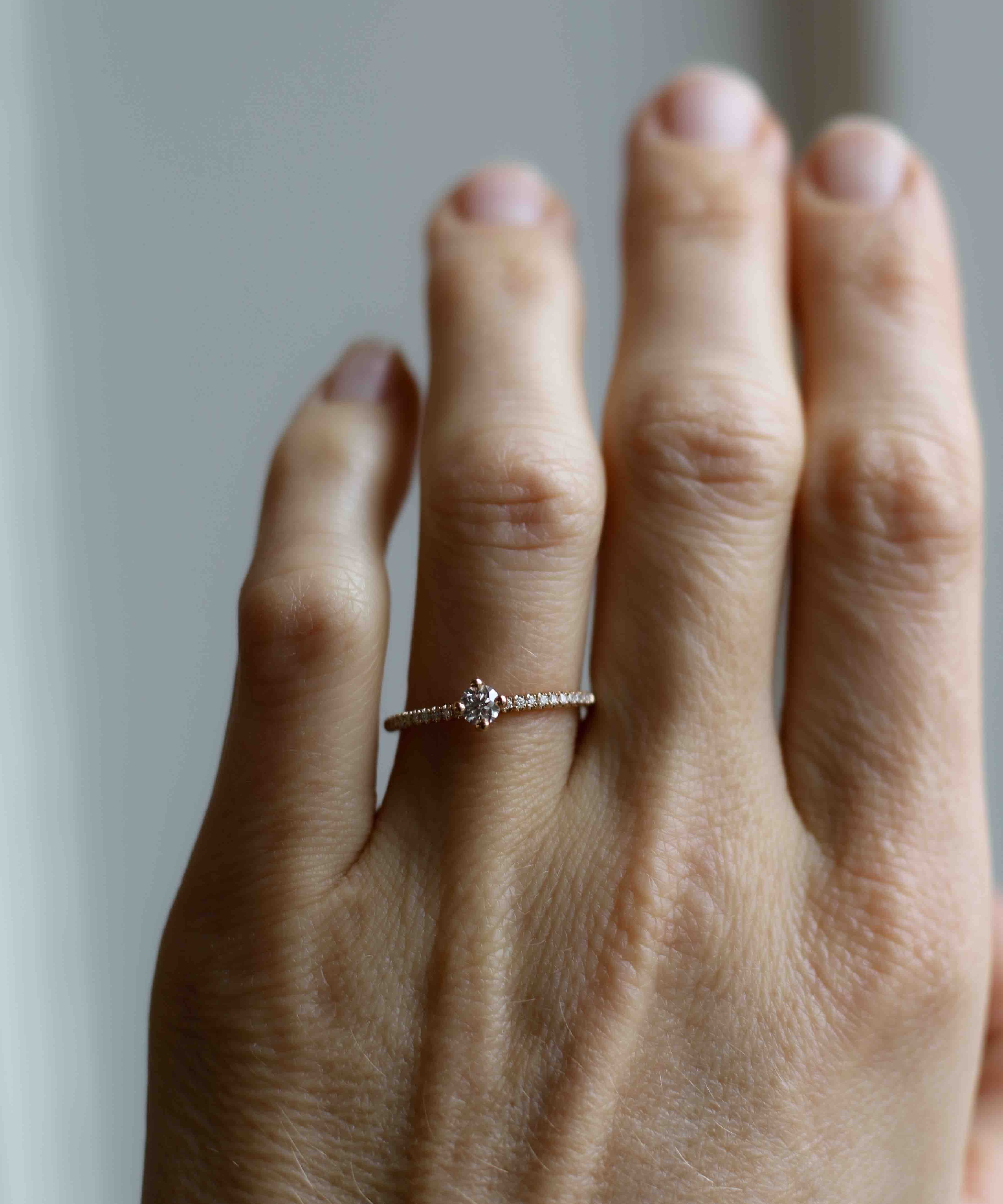 Många kommer till oss för våra minimalistiska och vintageinspirerade förlovningsringar.
