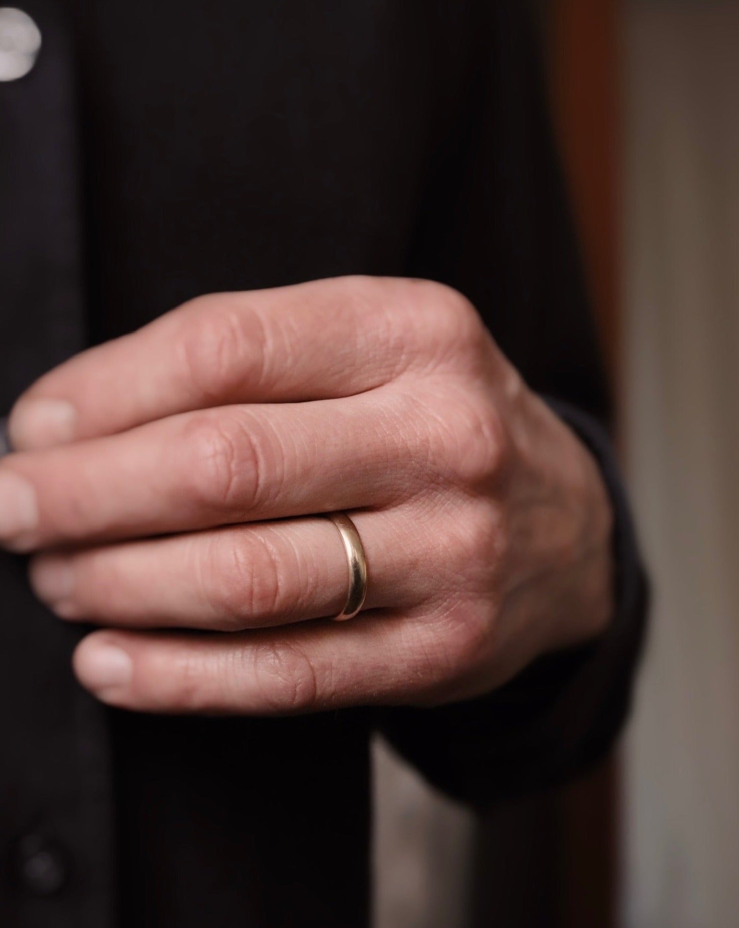 Bland män väljer de flesta av våra kunder den släta guldringen som förlovningsring. Jag tror det är för att det är den ring vi har sett vår morfar, farfar eller pappa bära när vi växte upp.