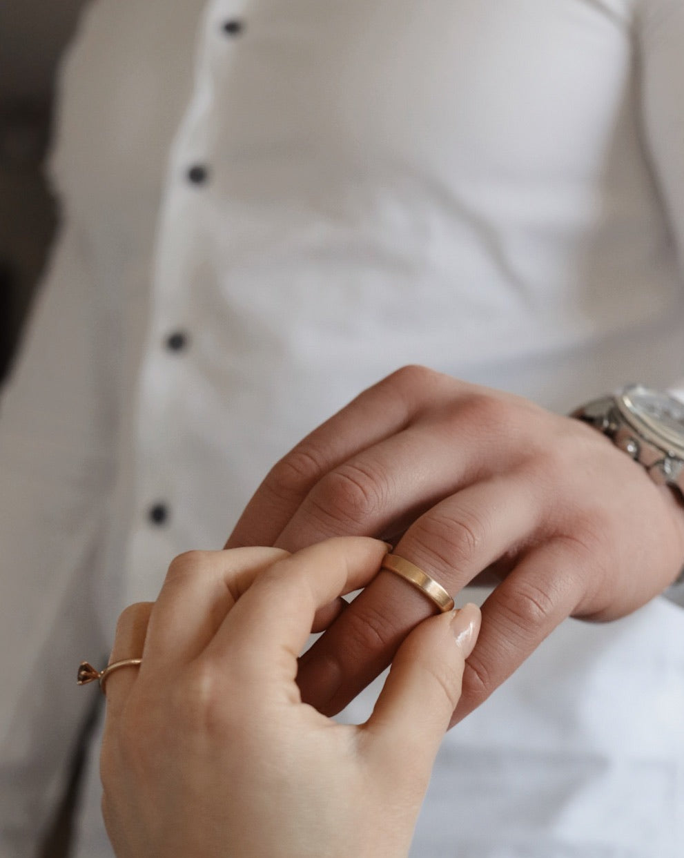 Ett slätt guldband blir även en enkel och ren utgångspunkt att matcha till till exempel en klocka, men även till andra framtida smycken.