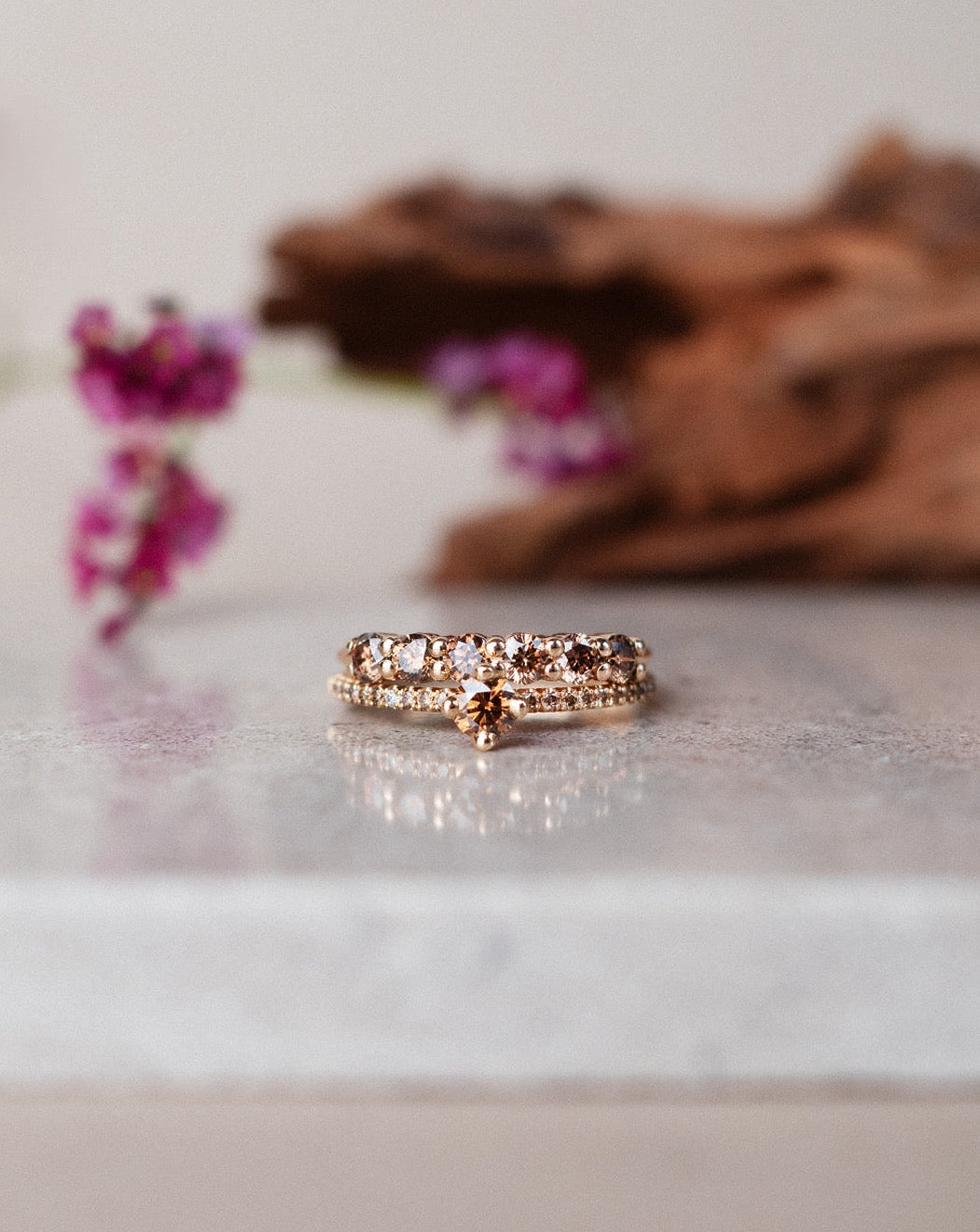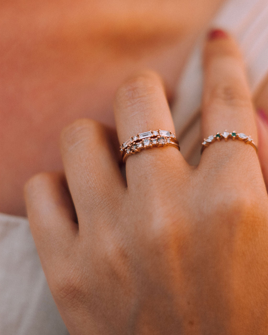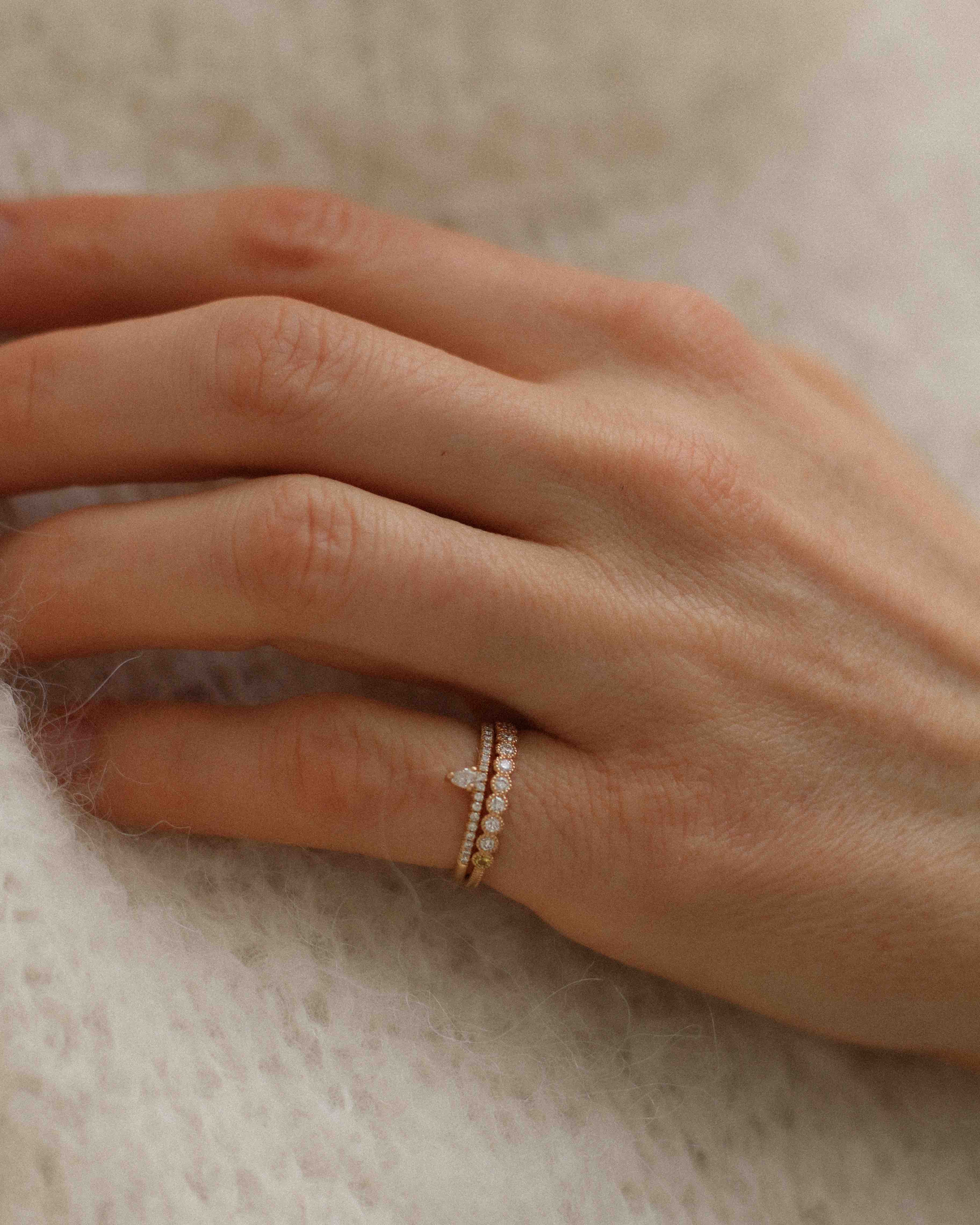 Vår signaturdesign är minimalistiska diamantringar gjorda för att bäras varje dag - och föras vidare i generationer! De är vackra att bära själva men är också anpassade för att kombineras tillsammans i din personliga ring stack.