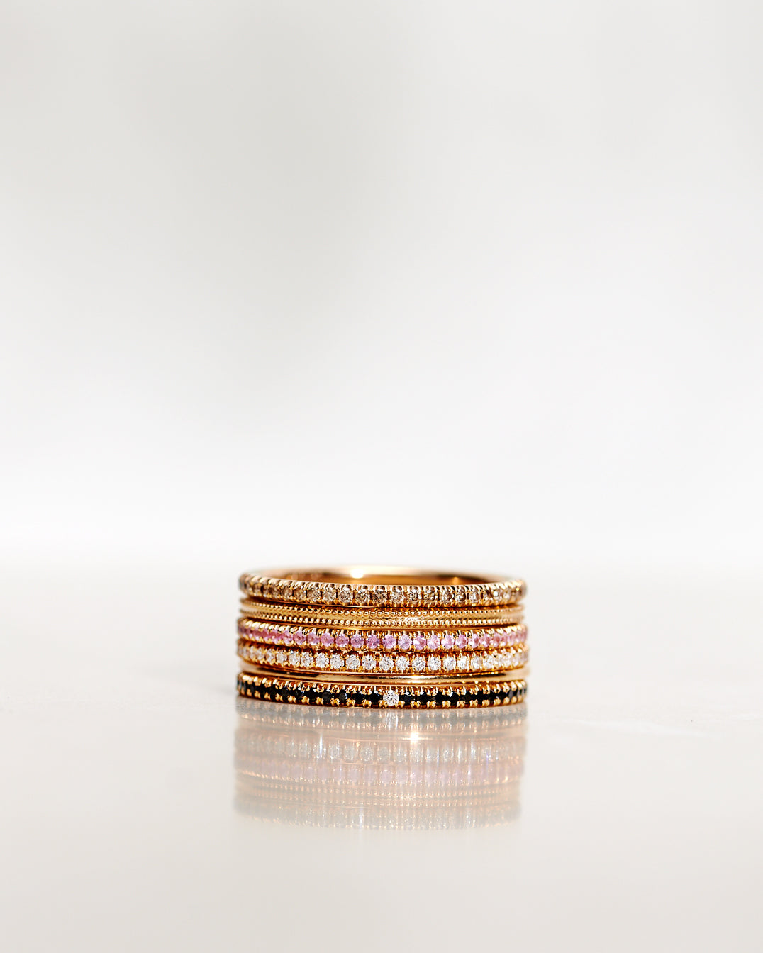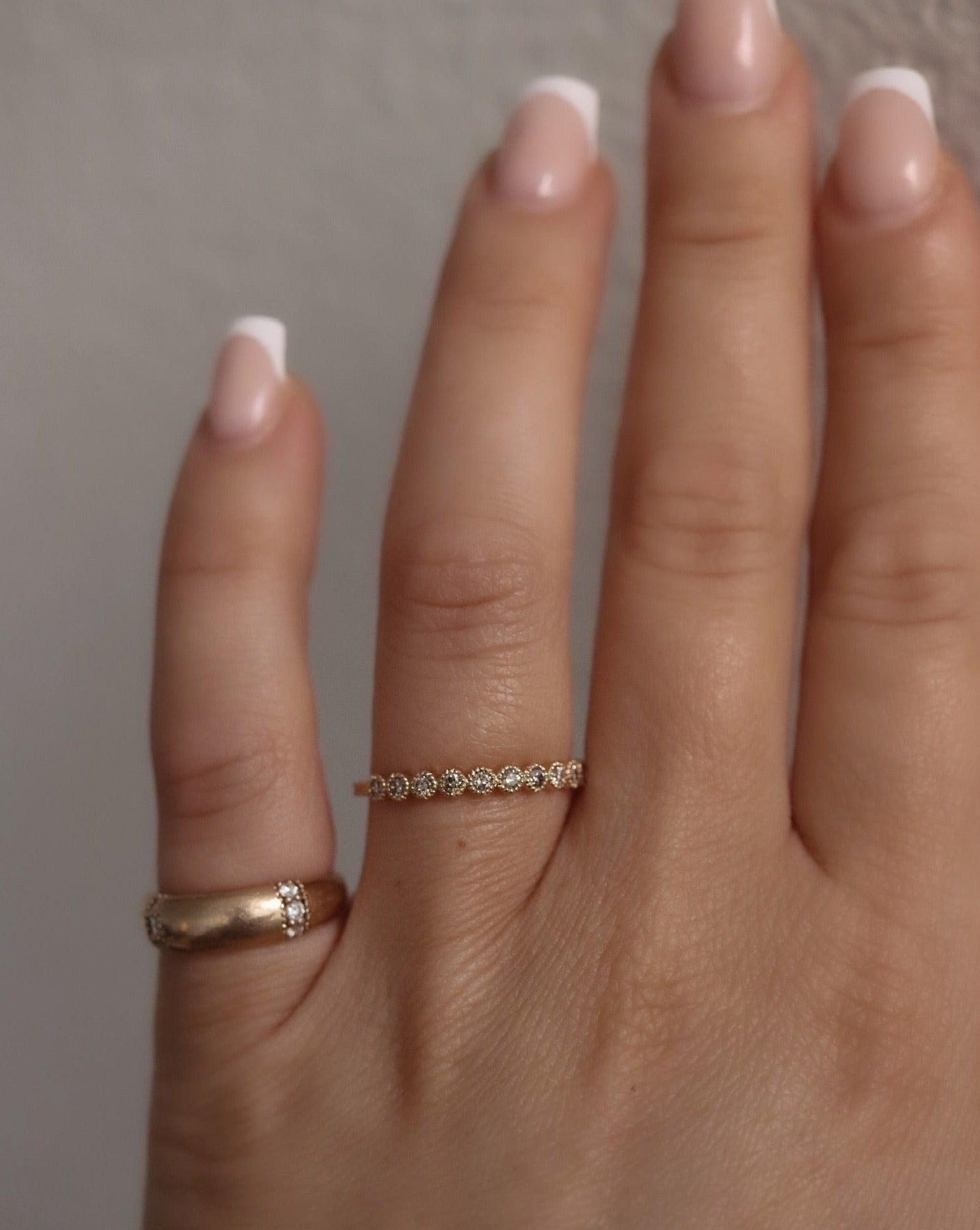 Vår signaturdesign är minimalistiska diamantringar gjorda för att bäras varje dag - och föras vidare i generationer! De är vackra att bära själva men är också anpassade för att kombineras tillsammans i din personliga ring stack.