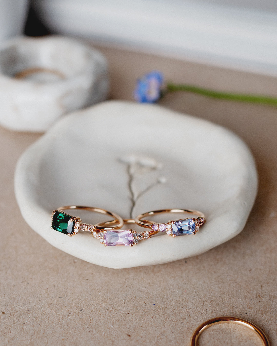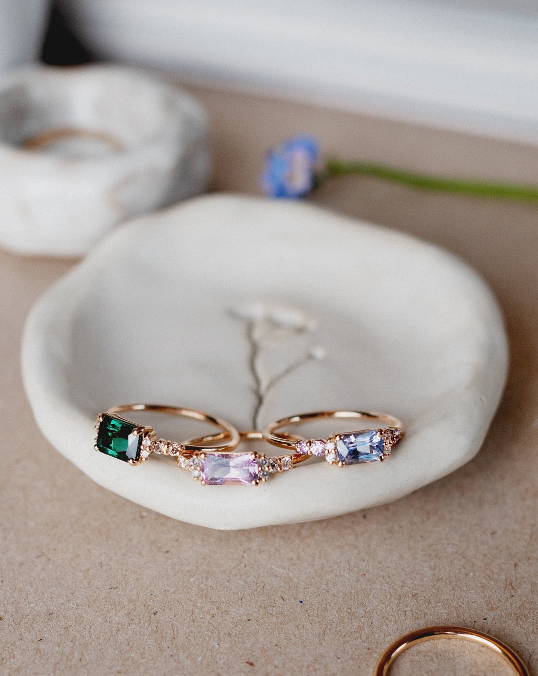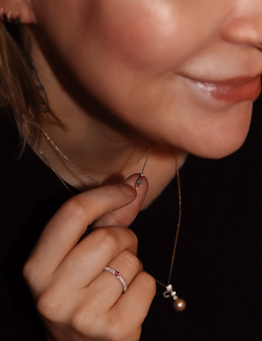 Samtliga smycken är gjorda från grunden i våra ateljéer i Sverige, utav återvunnet guld och naturliga ädelstenar som har genomgått så lite behandlingar som möjligt.