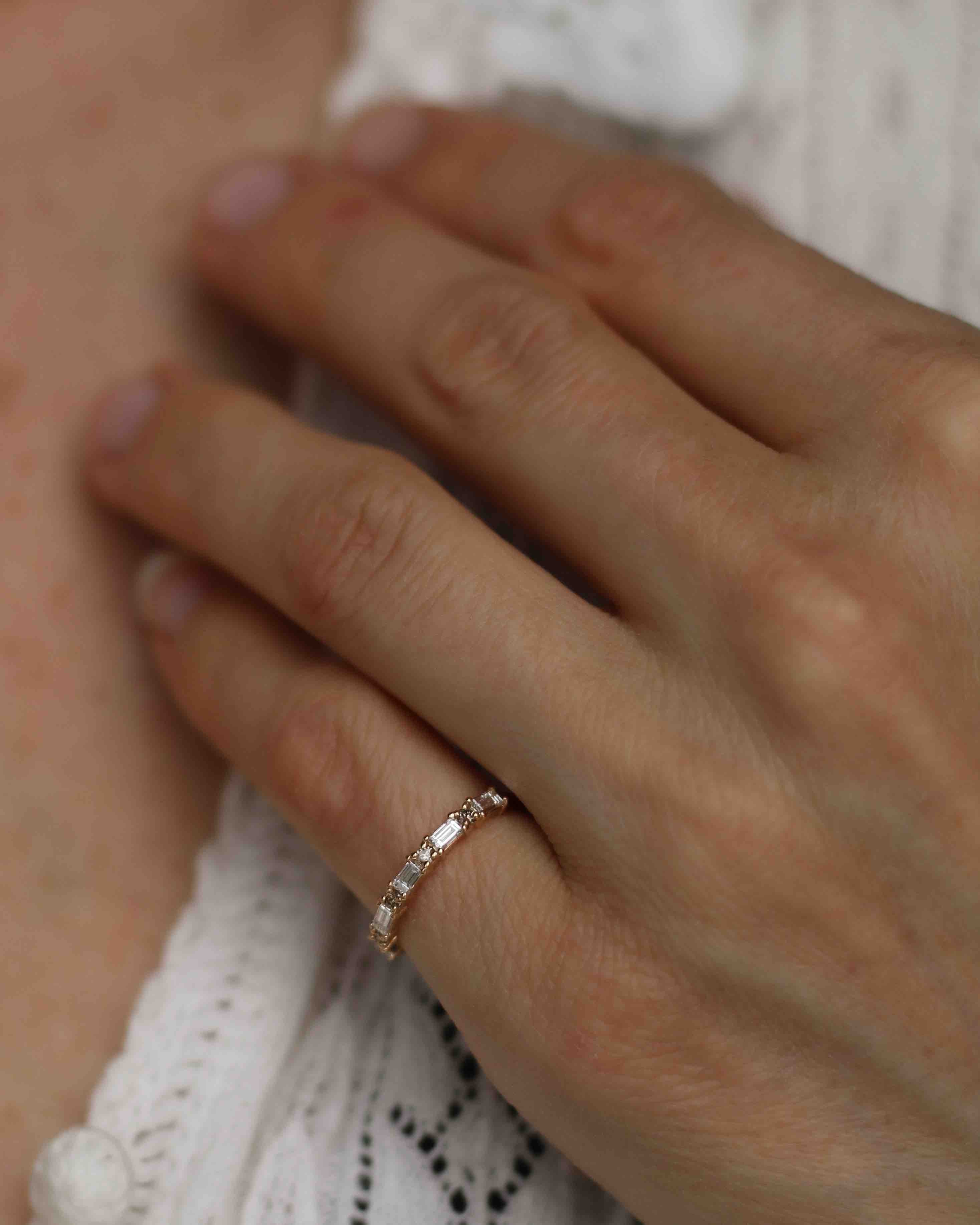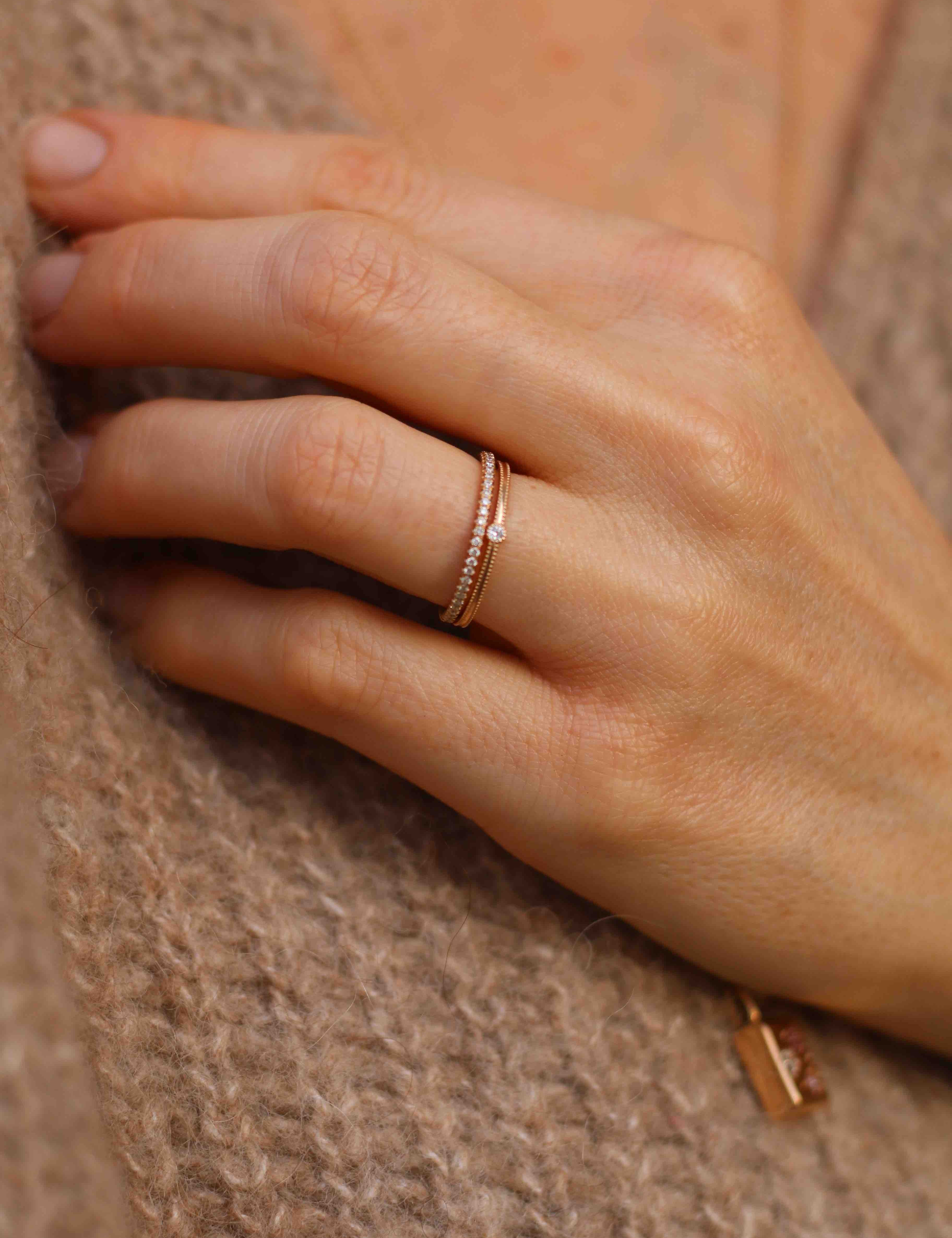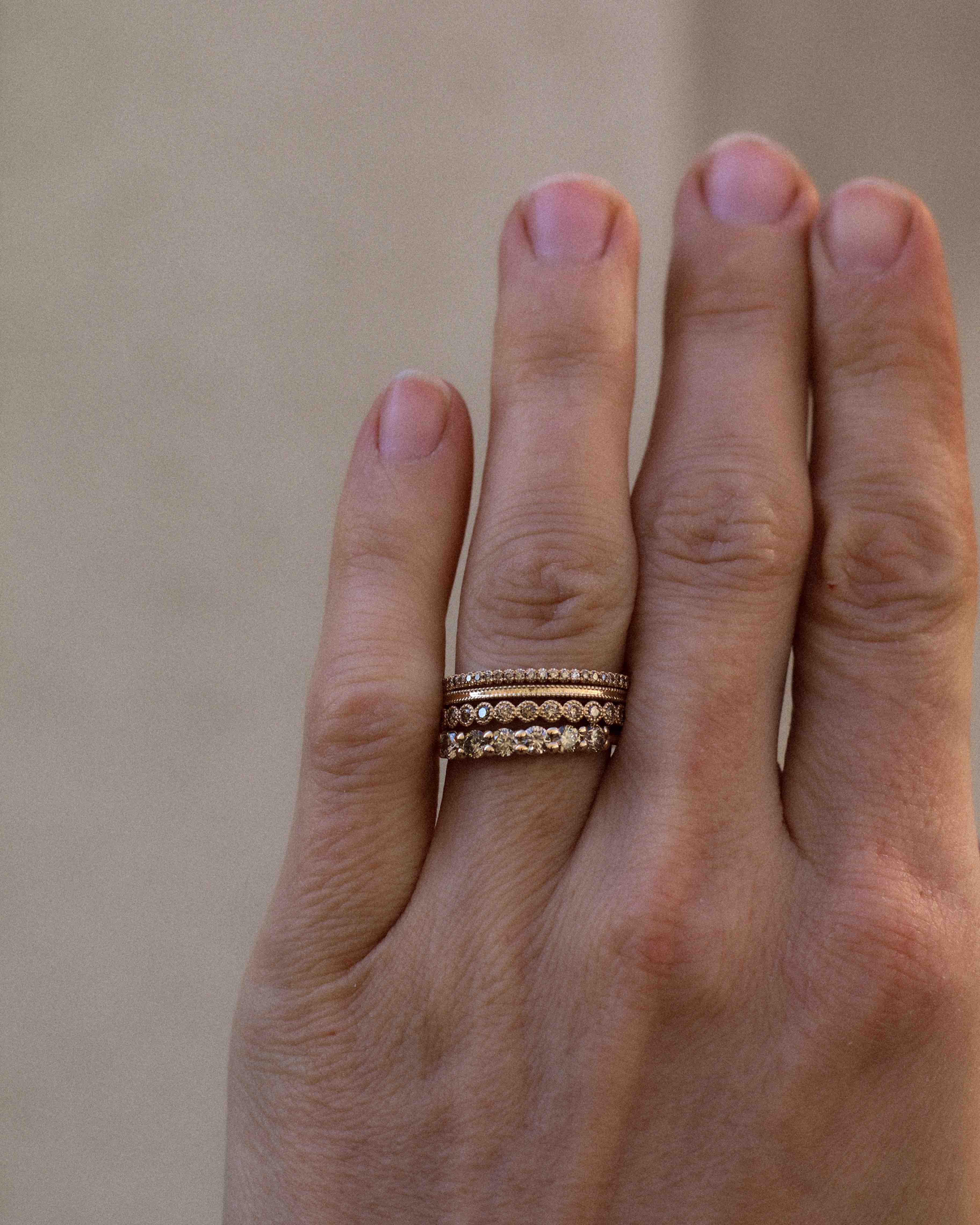 Vår signaturdesign är minimalistiska diamantringar gjorda för att bäras varje dag - och föras vidare i generationer! De är vackra att bära själva men är också anpassade för att kombineras tillsammans i din personliga ring stack.