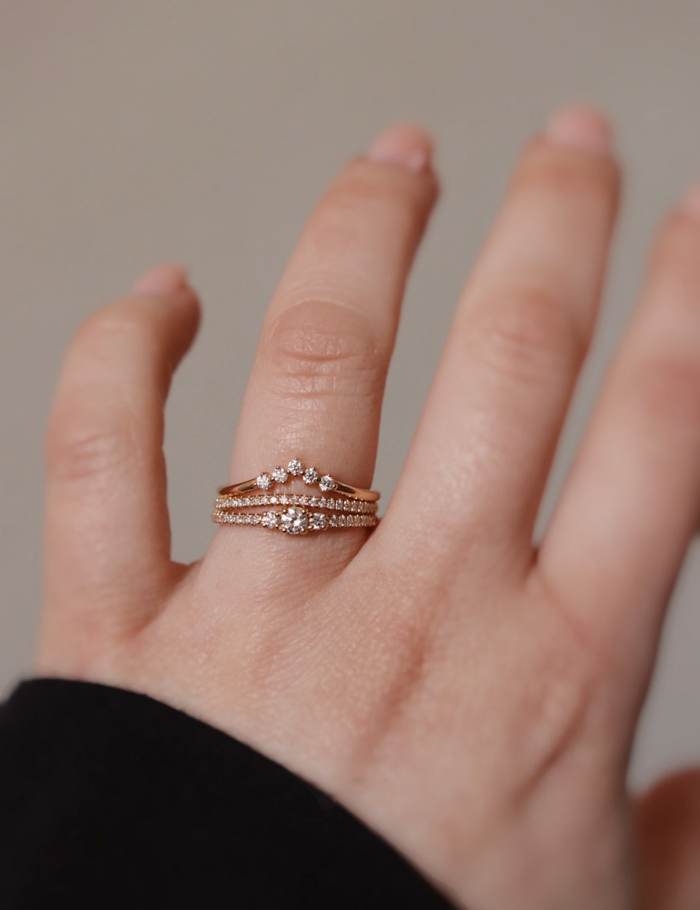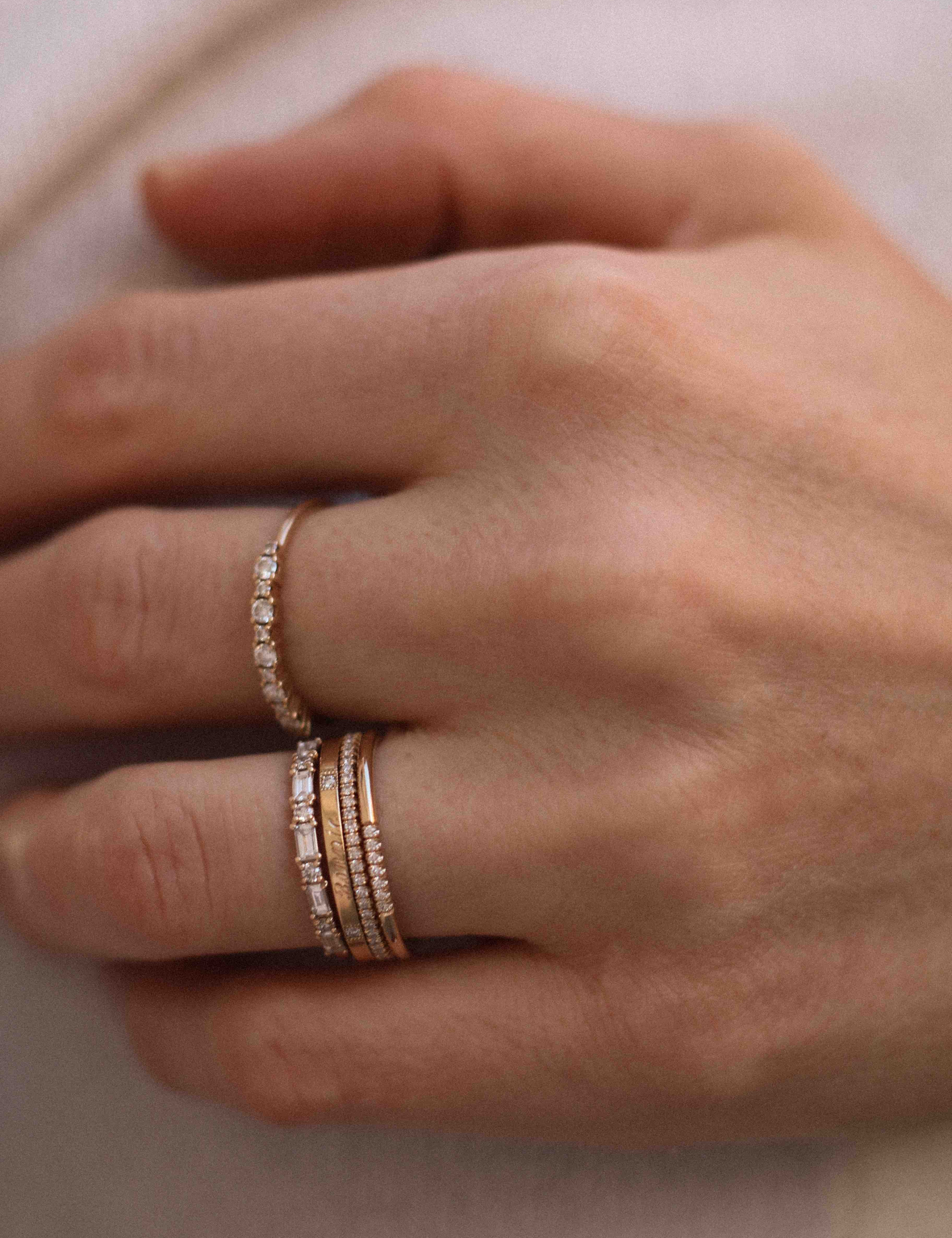 Our Personal Jewelry Shopper Halina wears 8 rings on her ring finger, and she still has some wiggle room left on her knuckle, so until you're there - keep going!