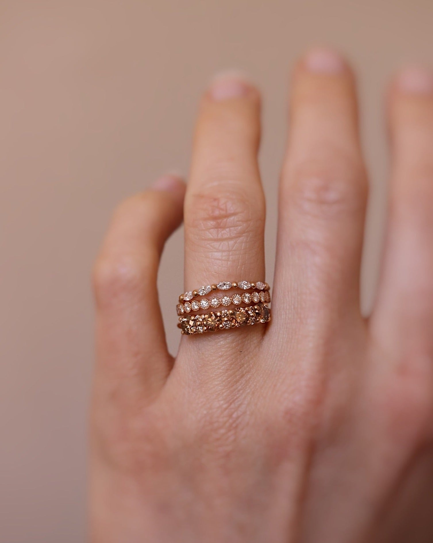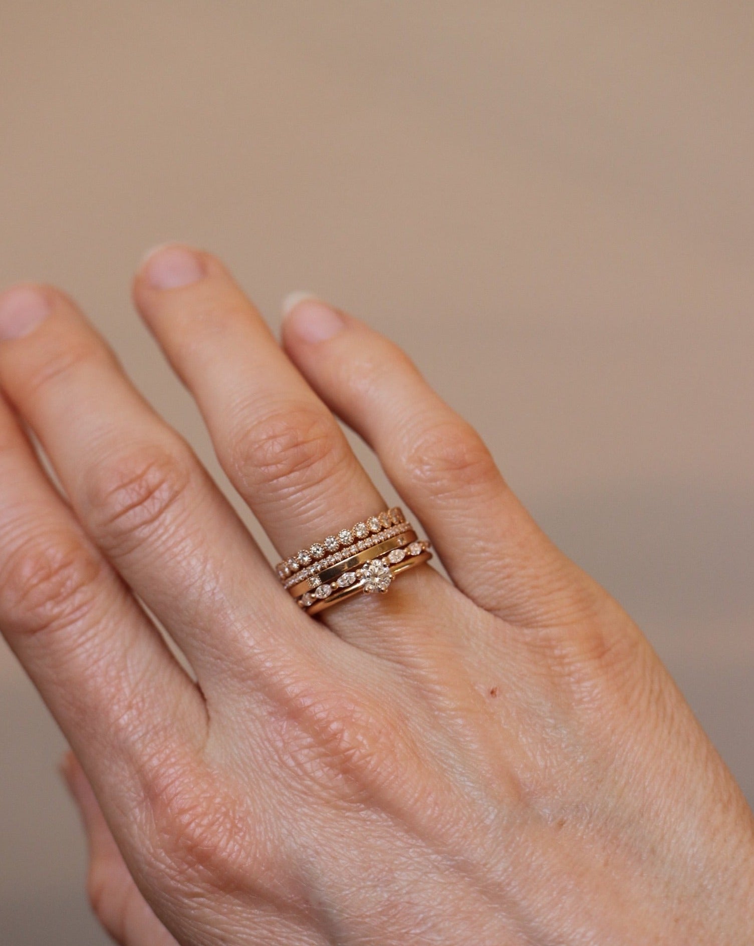 Astrid is a fantastic stacking ring and looks incredible combined with several rings in a stack. Feel free to combine it with rings that have different structures and shapes of gemstones.