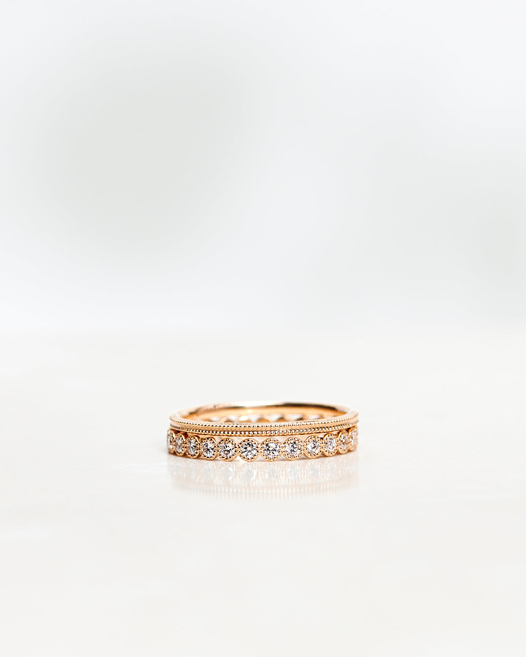 Astrid is an eternity band with a unique shimmer, thanks to the small gold dots, the milgrain decor. Milgrain was a common decoration on jewelry at the beginning of the last century (18/1900).