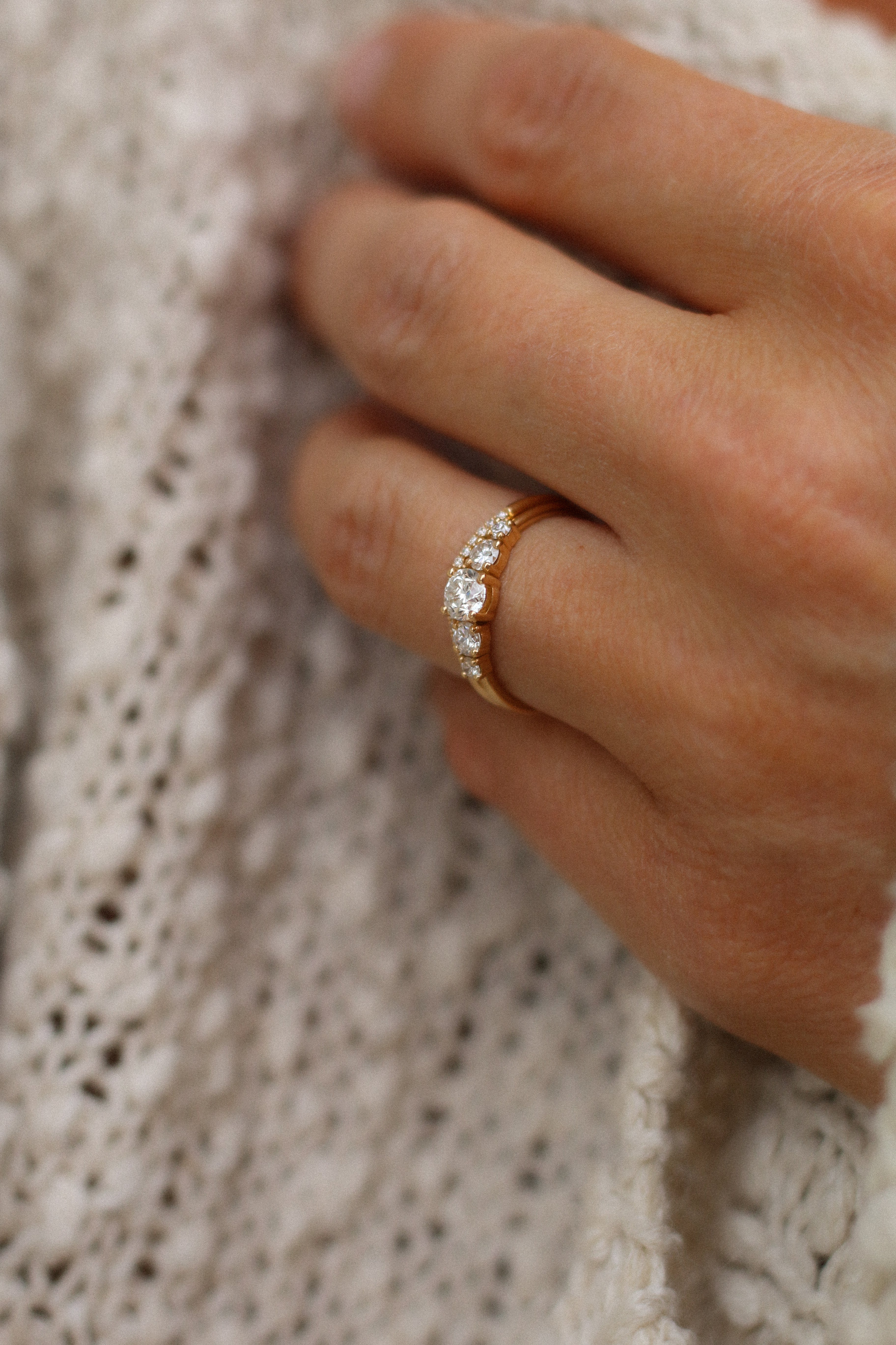 Equally beautiful to combine with a three-stone or five-stone ring such as Edith, Elise, Mini Elise or Gilda Ring - as in a stack of several straight rings.