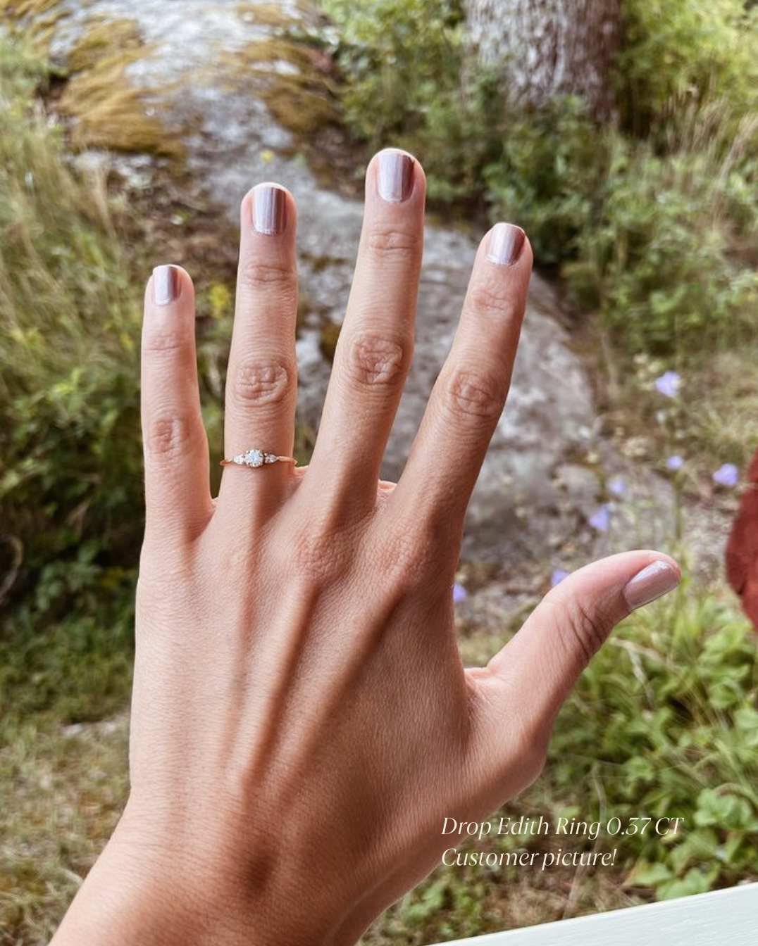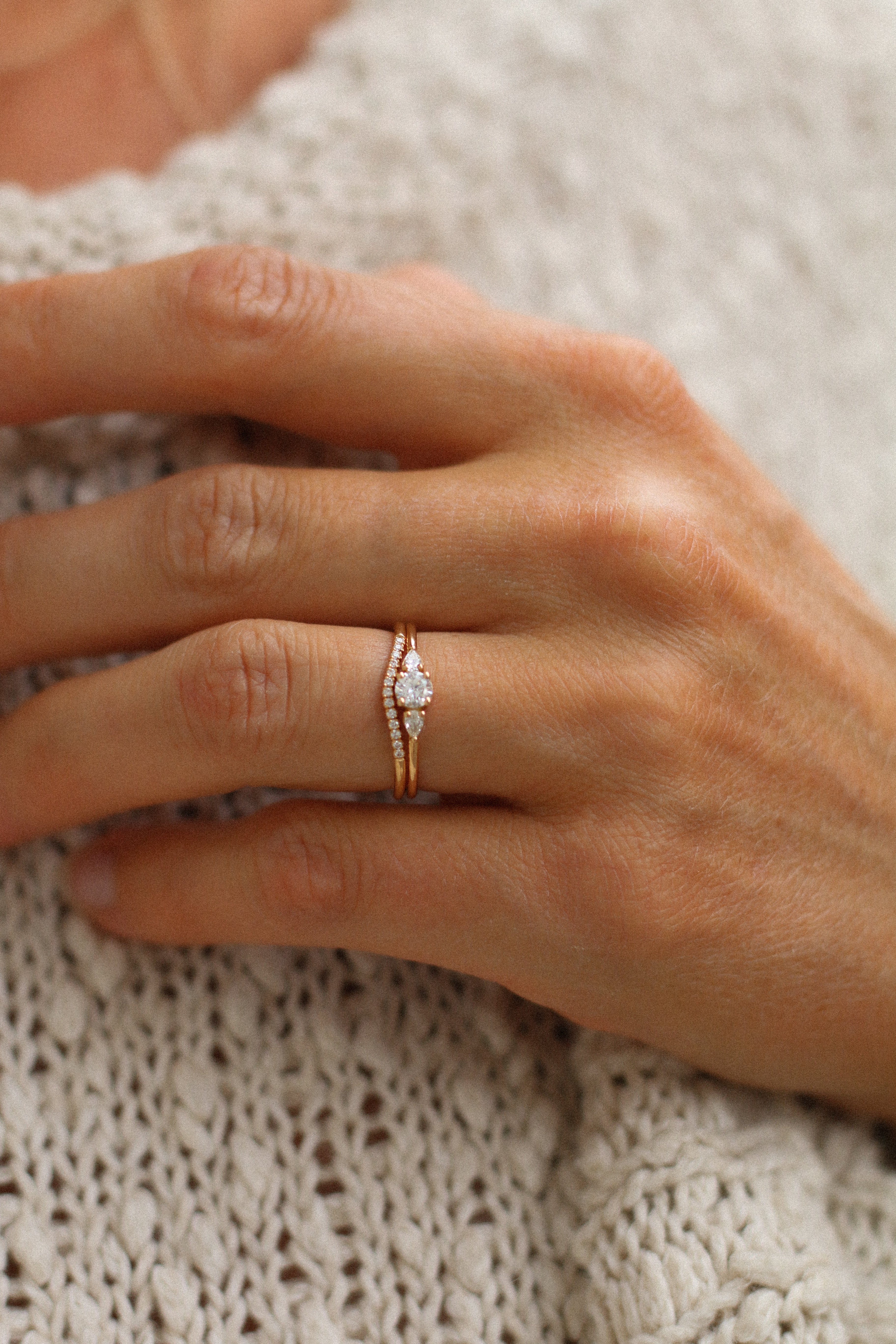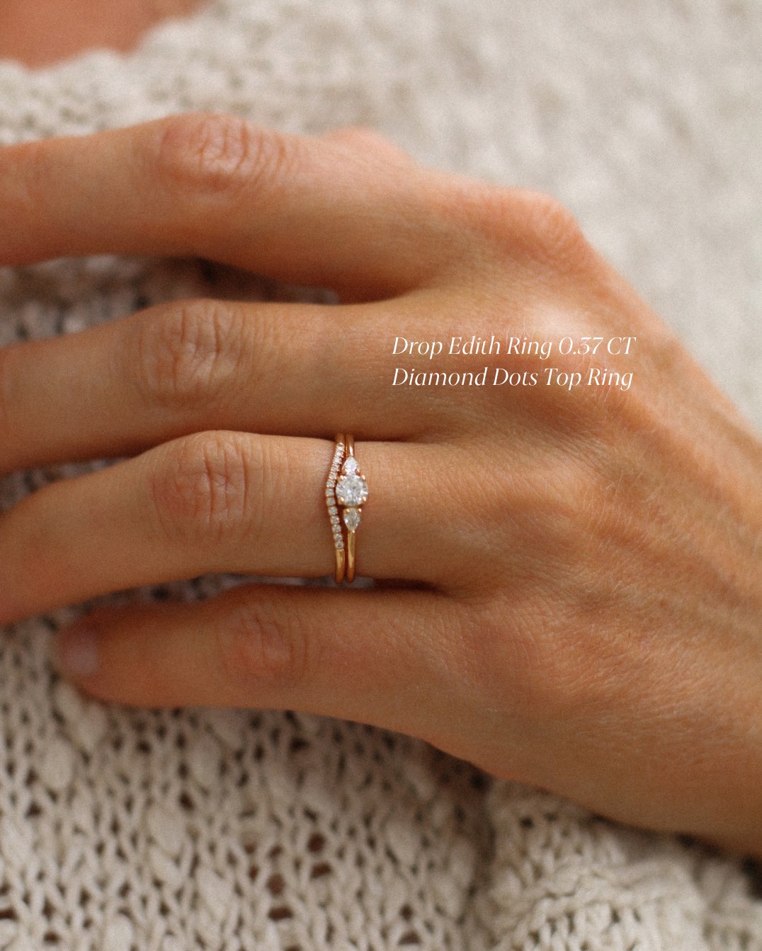 Drop Edith Ring looks beautiful worn alone, while also stacking gorgeously to our curved bands.
