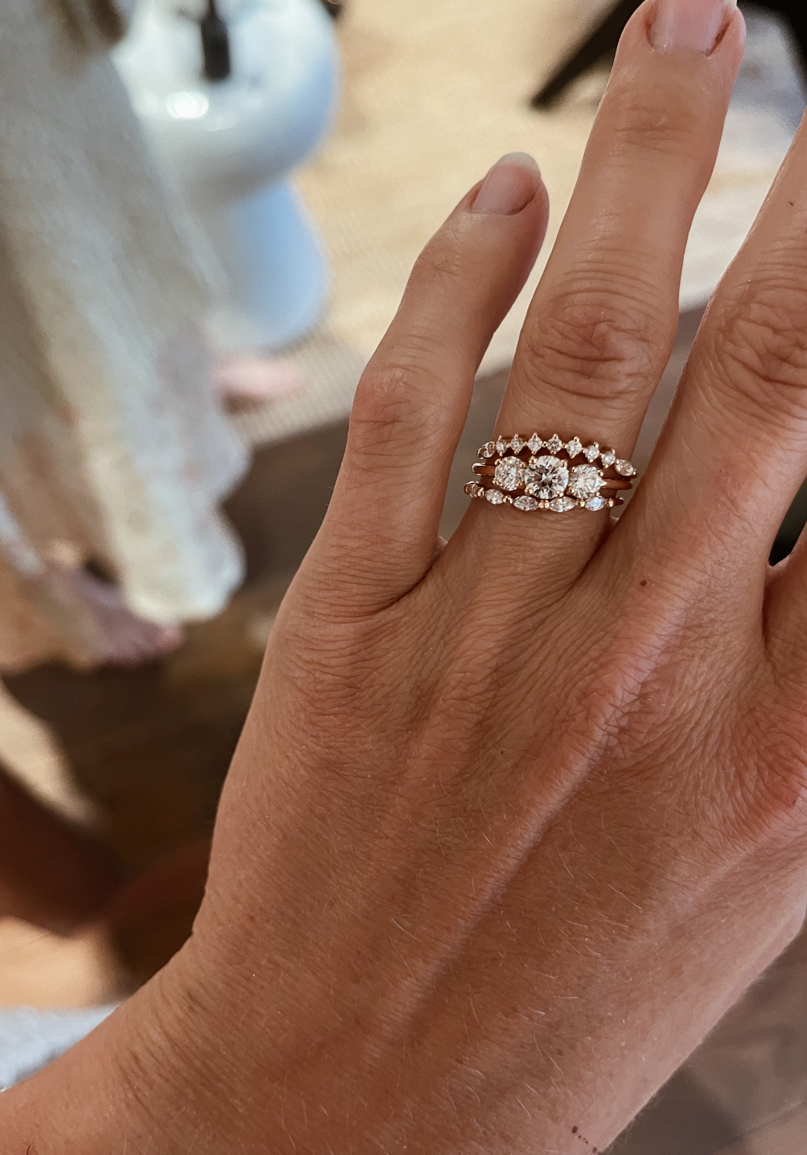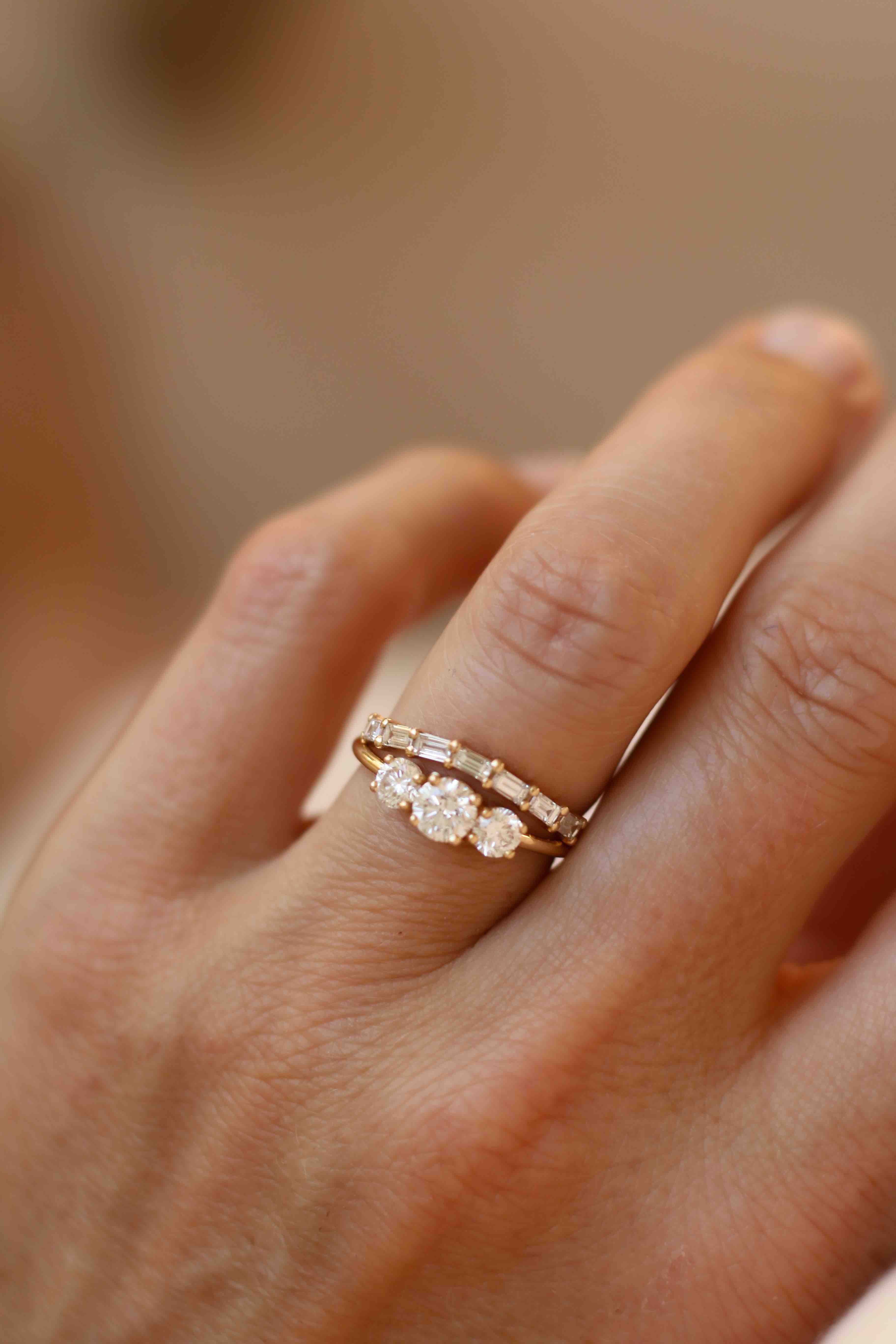 This was one of the first engagement rings I added to the collection. I wanted to design a three-stone ring that was as minimalistic as possible. That is how Edith Ring was born. This version with 1.0 CT is a minimalistic ring, yet it makes a statement. Love, Cecilia