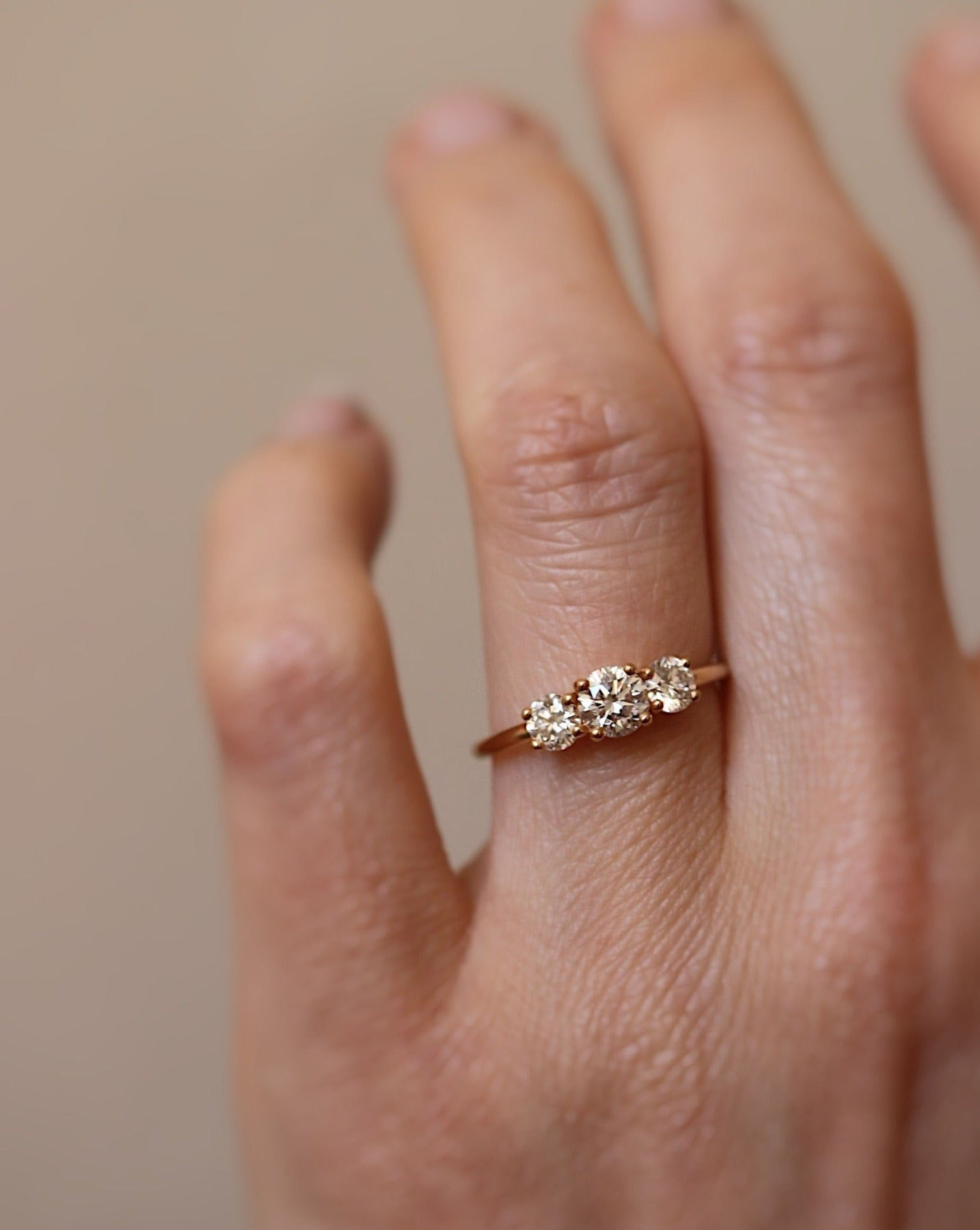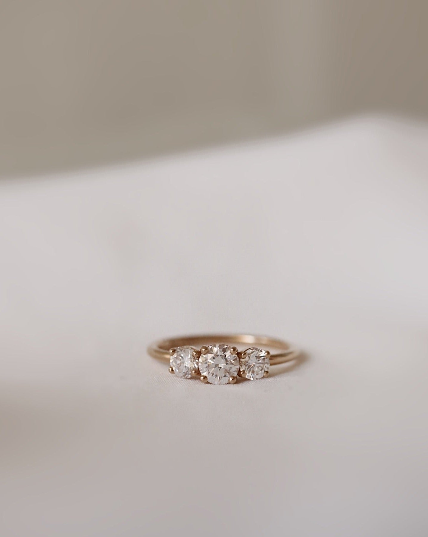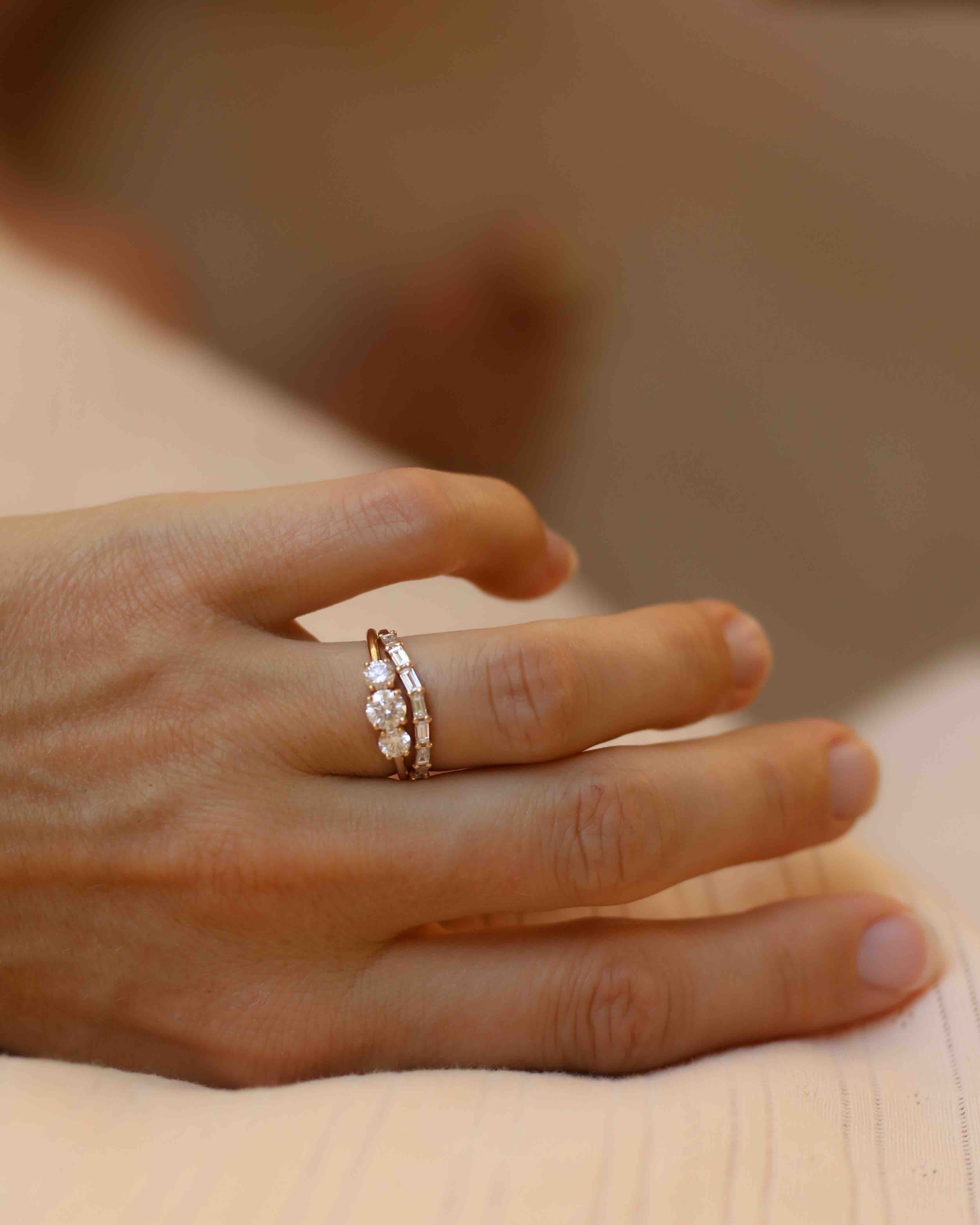 Edith Ring is one of our most loved rings. It is a classic three-stone ring designed in a modern, minimalist style.