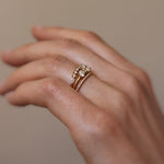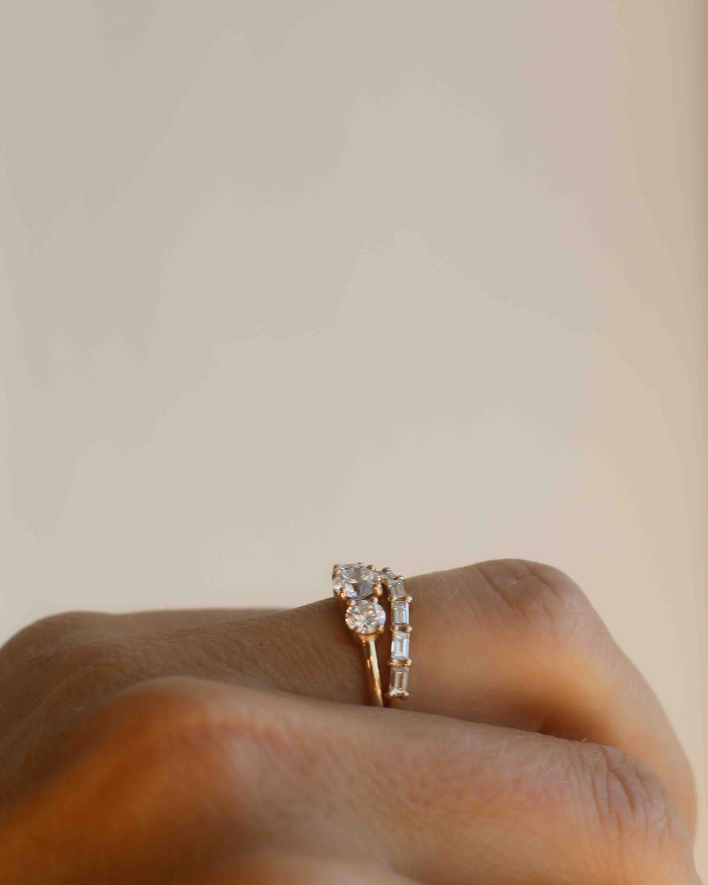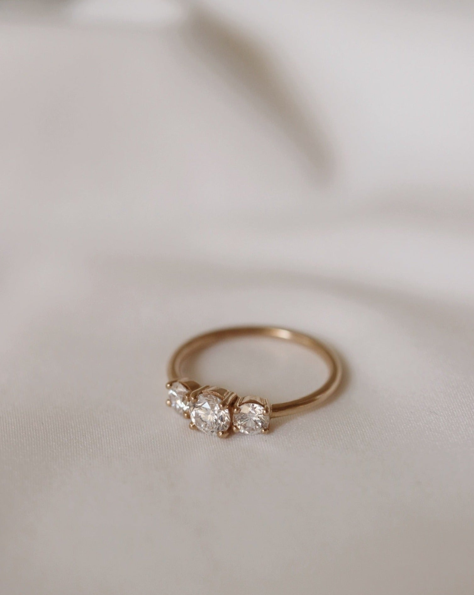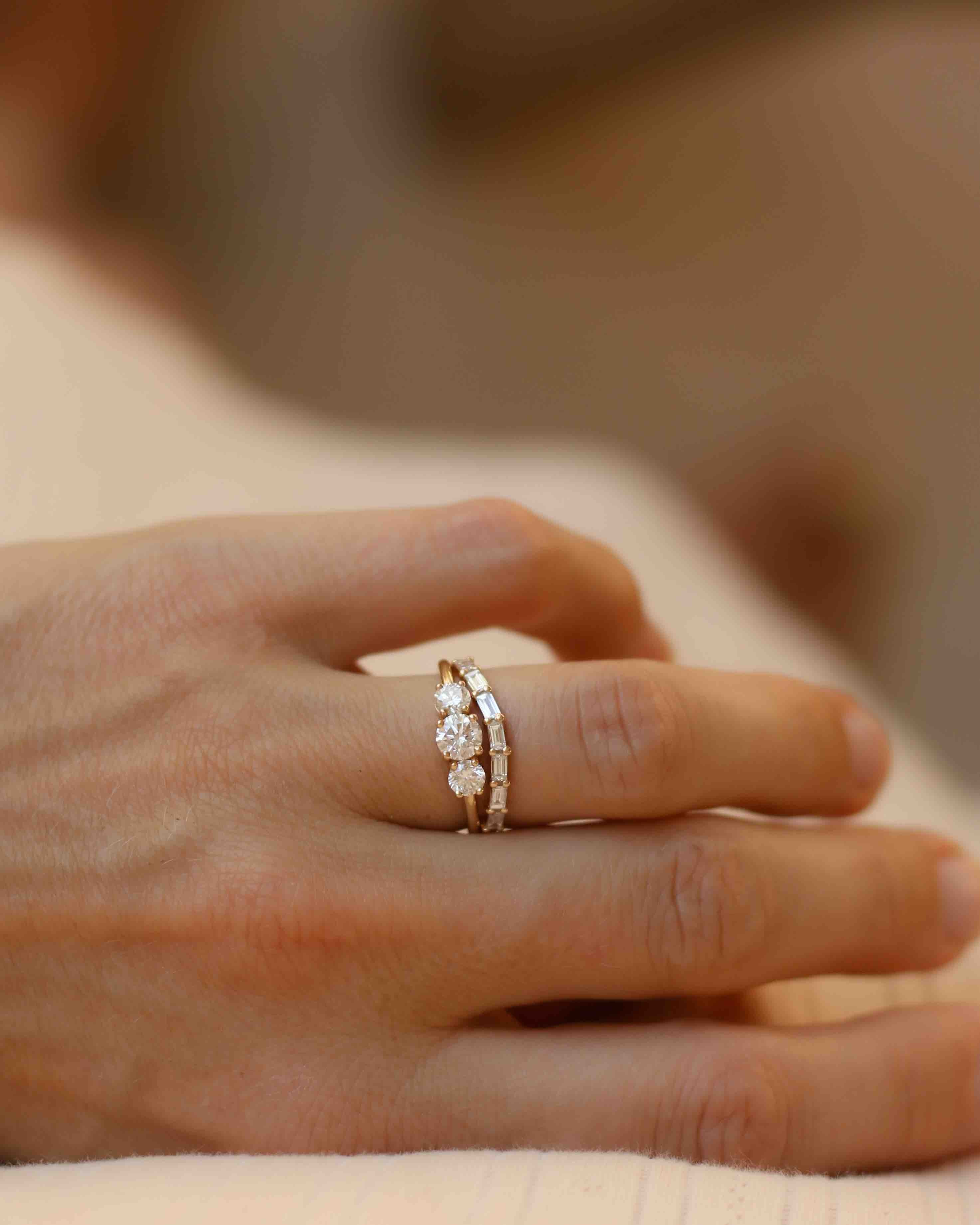Edith Ring is one of our most loved rings. It is a classic three-stone ring designed in a modern, minimalist style.