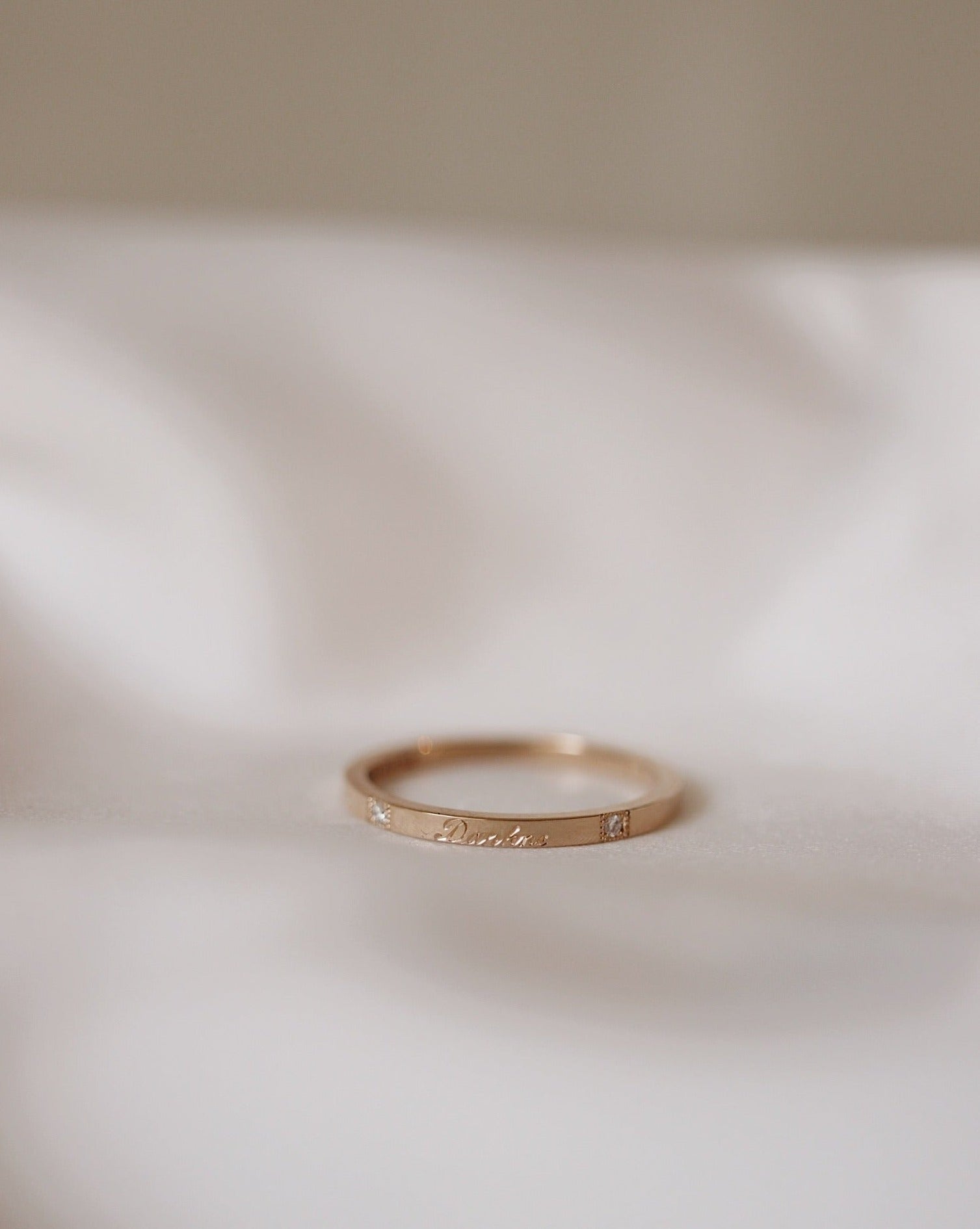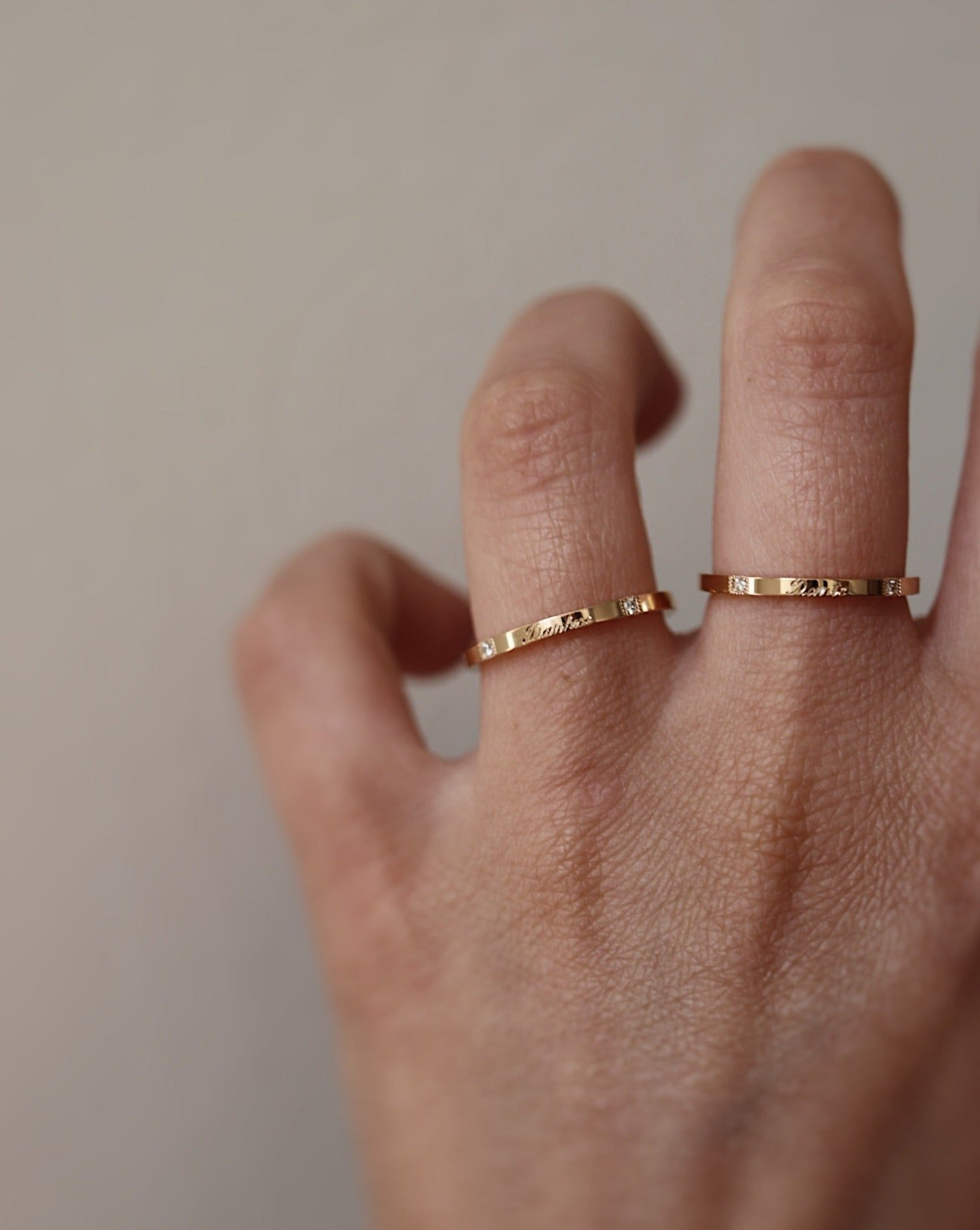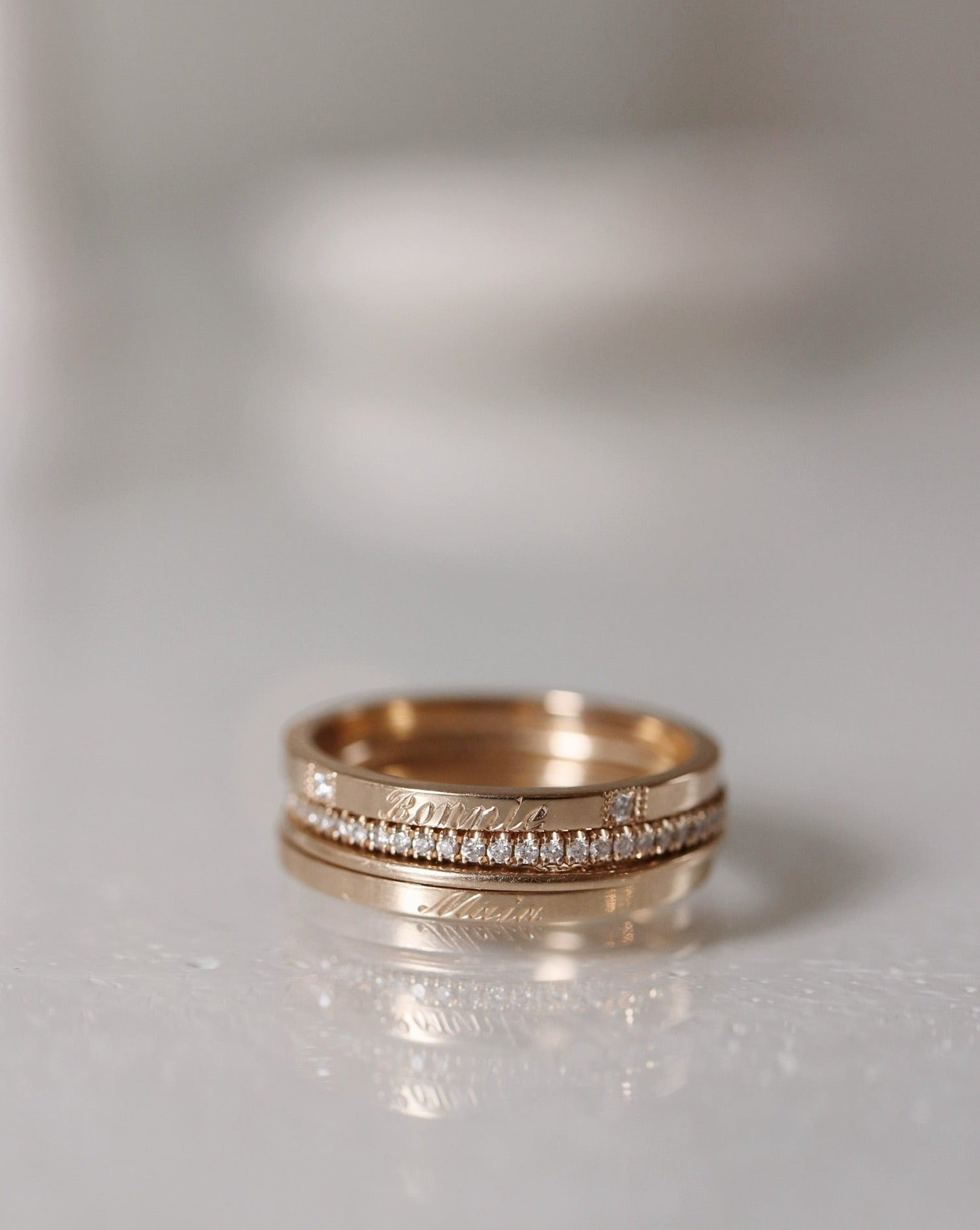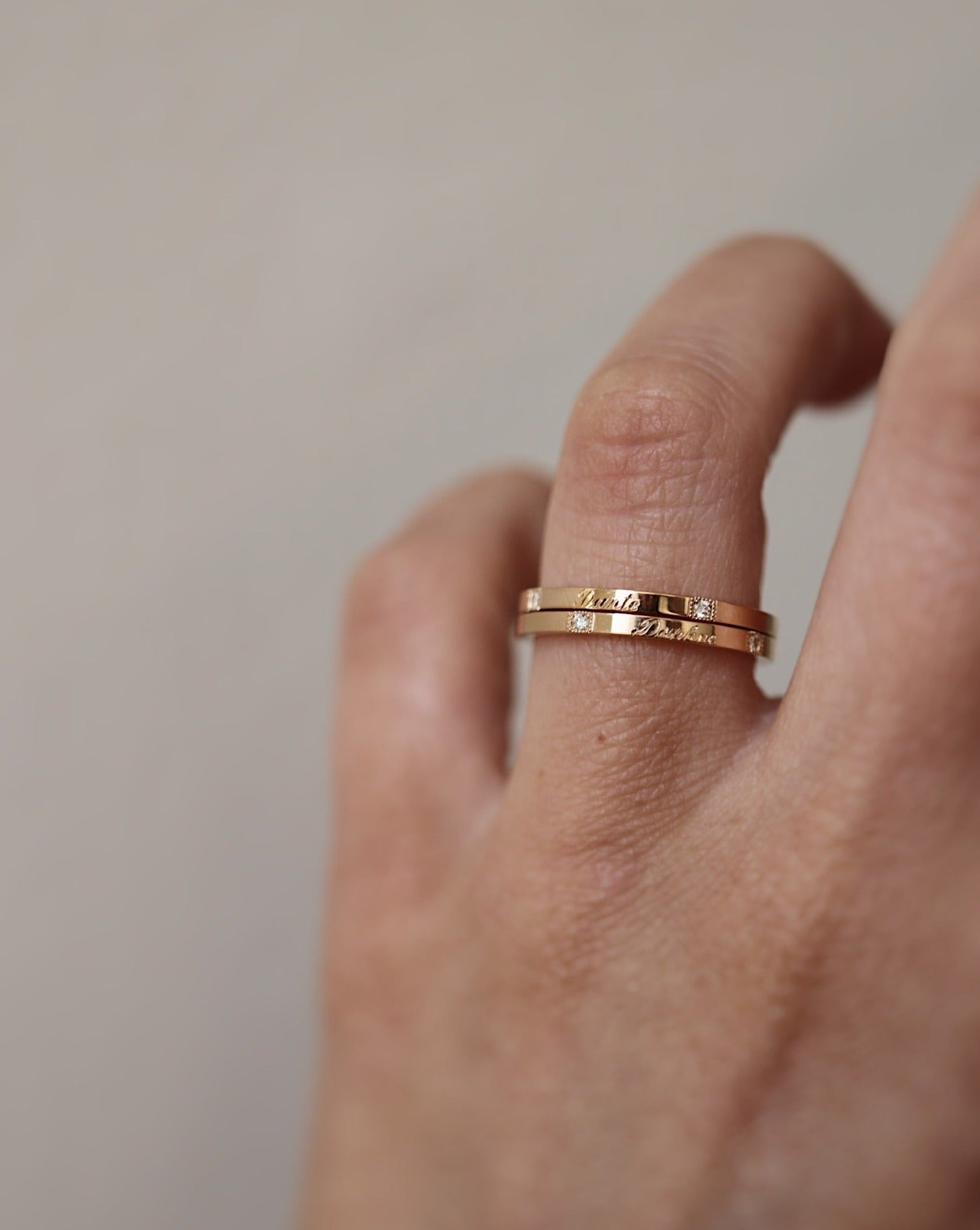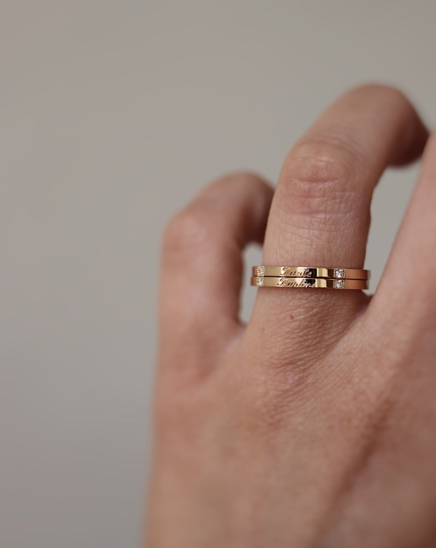 On the pictures you see example of the following engravements: Daphne, Dante, Bonnie. They are all names of the children to the customers who purchased the rings! In fact, Daphne and Danter are siblings, and the mother purchased one ring each for her kids. <3