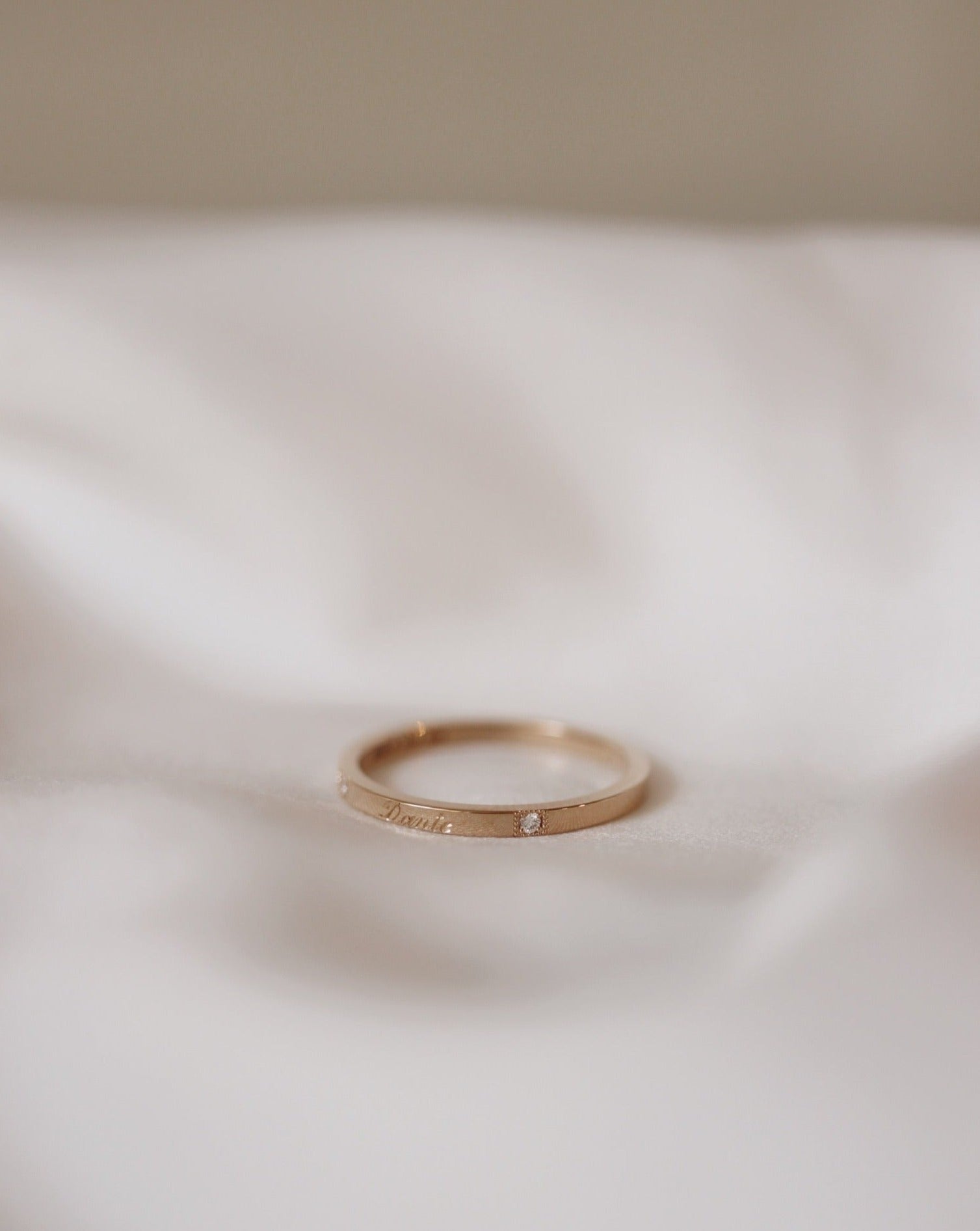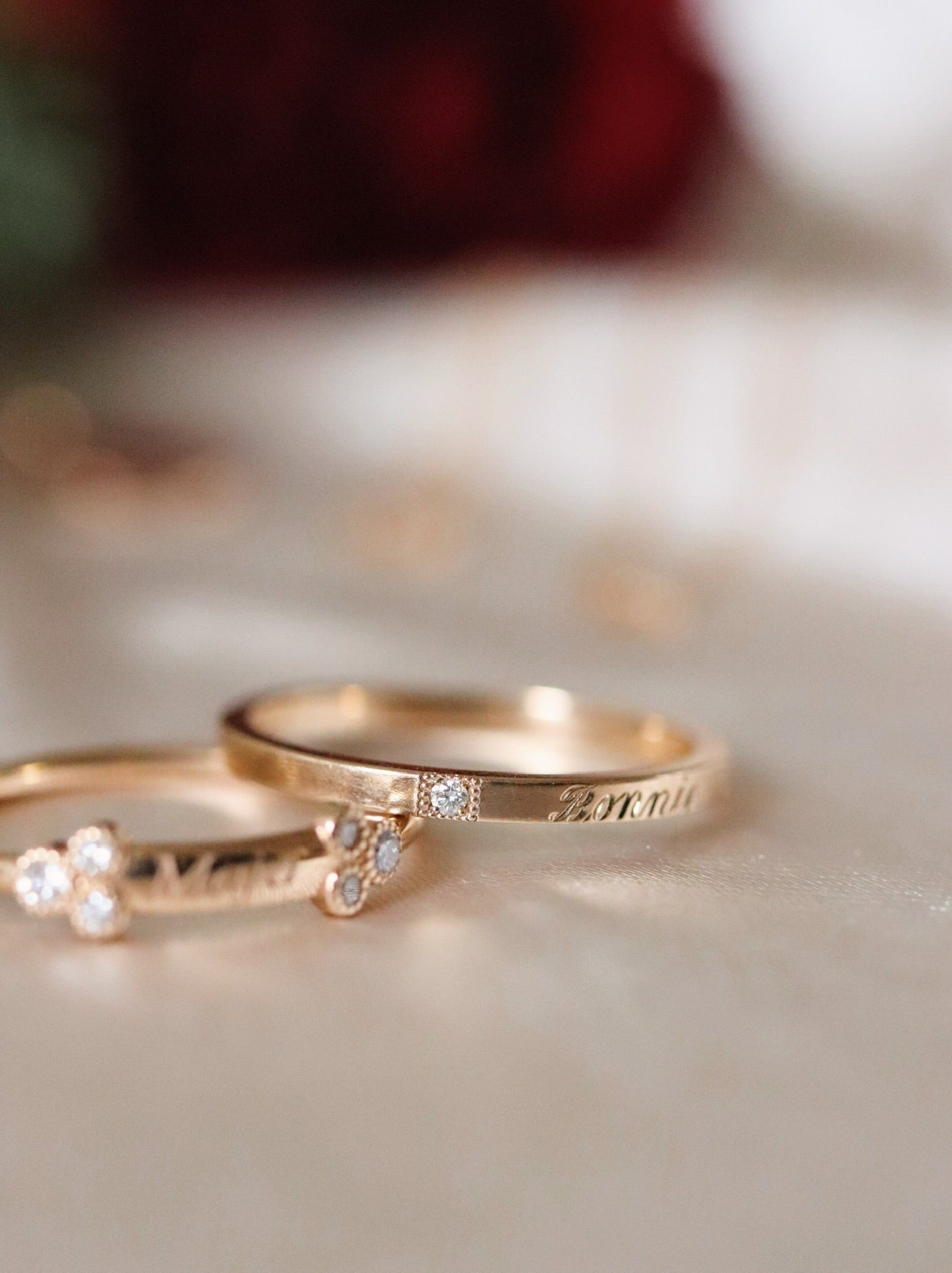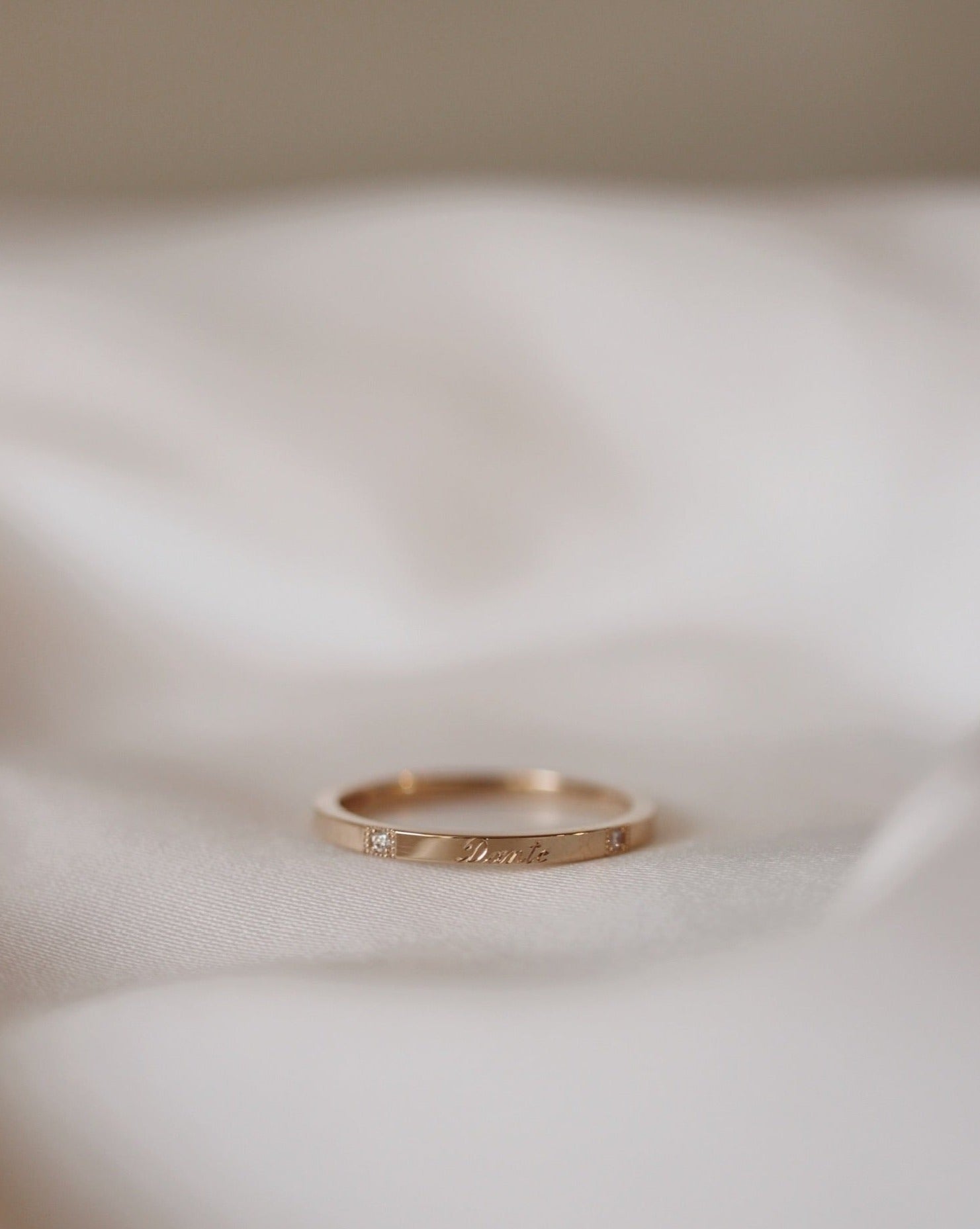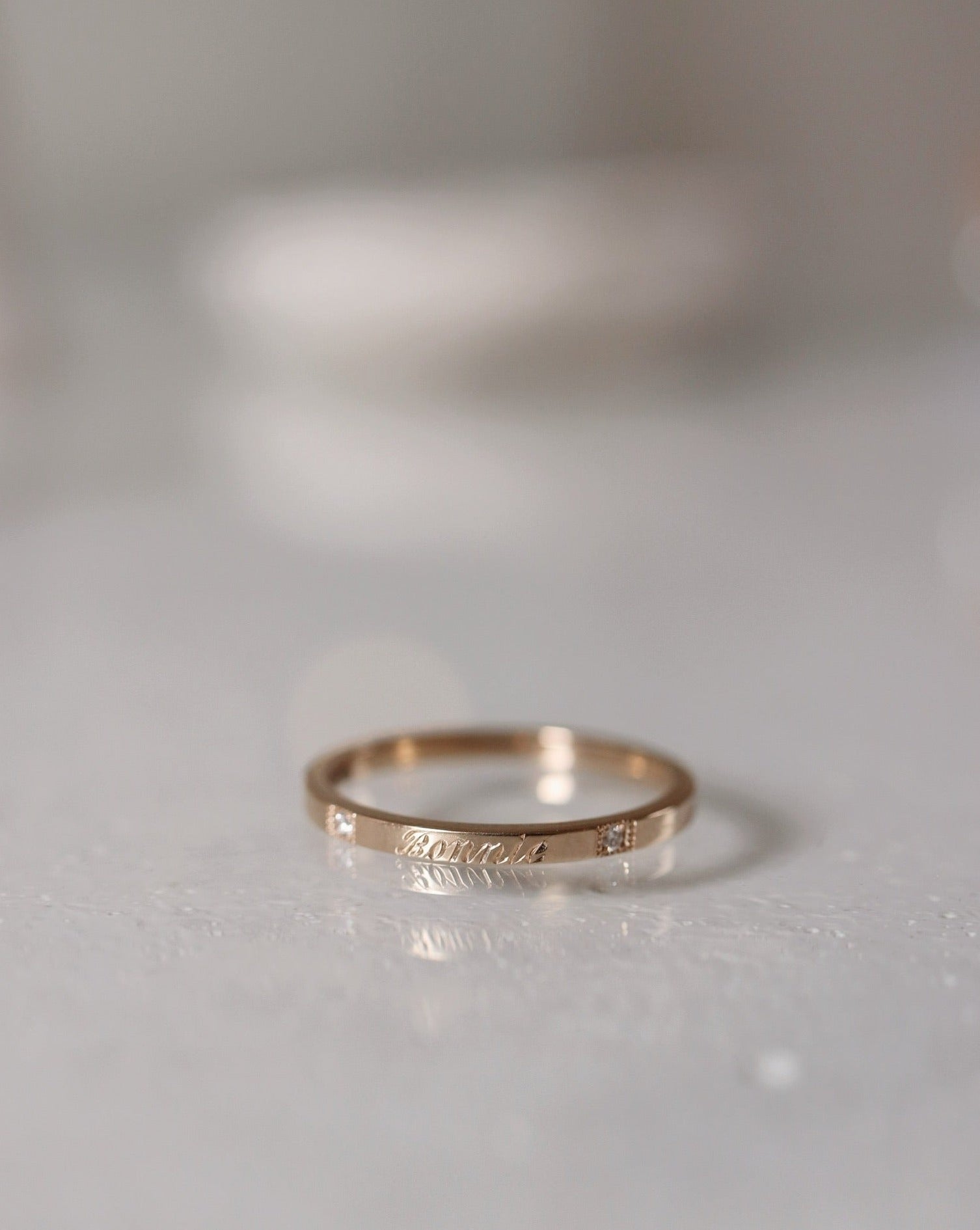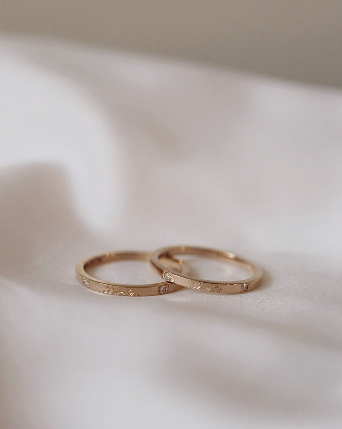 On the pictures you see example of the following engravements: Daphne, Dante, Bonnie. They are all names of the children to the customers who purchased the rings! In fact, Daphne and Danter are siblings, and the mother purchased one ring each for her kids. <3