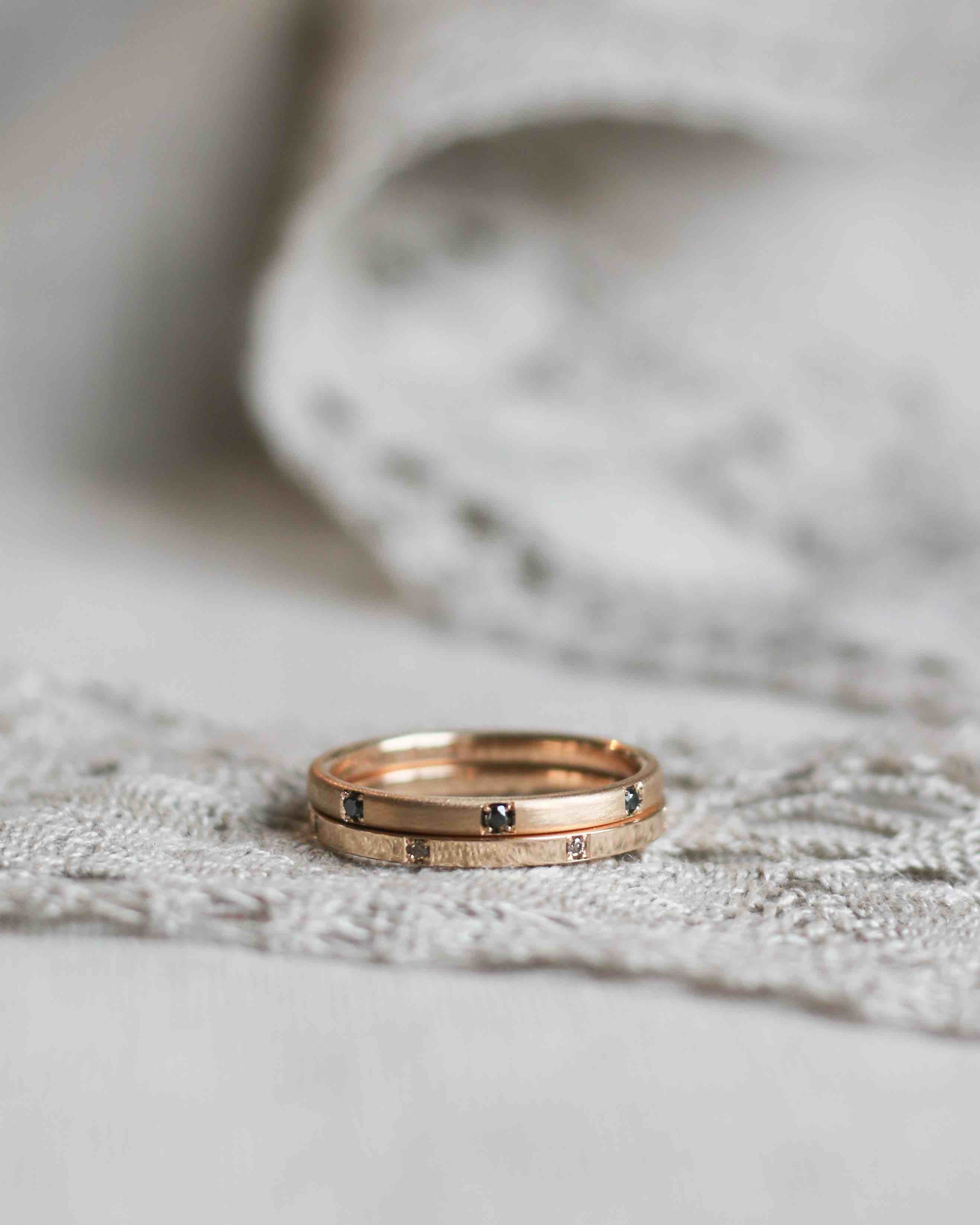 A minimalistic, elegant gold ring with warm chocolate diamonds.