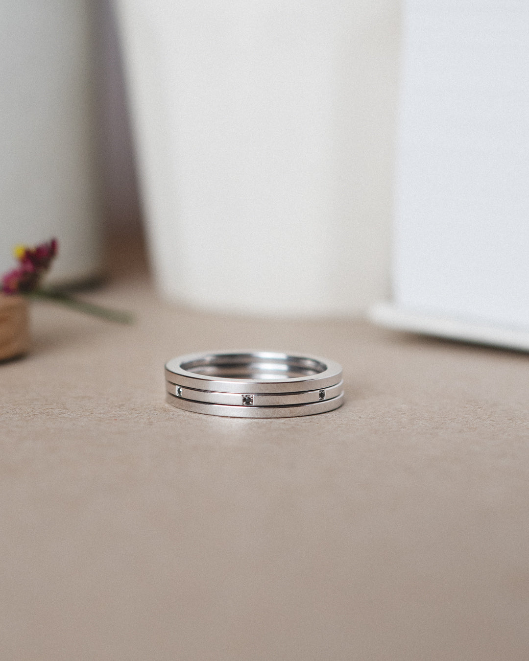We have helped women stacking rings for almost ten years - but what about the men? Luckily, I got the chance when my friend Sebastian were getting married. He loved our Logan Ring, and fashion-forward as he is I gently suggested that we frame it with two gold bands to spice it up. That would also let him style himself differently depending on his mood. One day he could wear all three rings, and the next day only one! He loved the idea and here is the result! Hope you love it as much as Sebastian and I. Here you also see Sebastian's hand in front of the amazing view of his apartment in - you guessed it - New York. xx Cecilia and the mumbai team